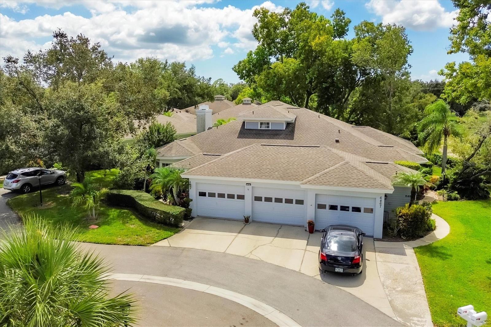 Welcome to 6465 Carrington Circle in Sarasota, a spacious villa in the sought-after 55+ community of Westwoods at Sunrise. Offering over 2,000 square feet, this home features three bedrooms and two bathrooms, highlighted by two primary suites--one upstairs with a private balcony for enjoying morning coffee or evening sunsets, and one downstairs for convenient single-level living--making it ideal for hosting guests or accommodating multi-generational needs. The flexible floor plan includes an enclosed lanai that can serve as a cozy TV room, office, or formal dining space, plus an eat-in kitchen, a bright living room with volume ceilings, and sliding glass doors that fill the home with natural light and open to a private patio. A screened lanai connects the residence to an oversized two-car garage, while mature plantings enhance the curb appeal and outdoor charm. Exceptional storage is found throughout with numerous closets, and the property has been well maintained with a new roof in 2019 and new AC in 2018. Offered partially furnished, the home is part of a community known for its charm, tree-lined streets, and amenities including two heated pools, pickleball, and a pet-friendly policy for one pet up to 25 pounds--all with no CDD fees. Conveniently located near I-75, shopping, restaurants, Detwilers, and just a short drive to Siesta Key, this villa offers comfort, versatility, and a fantastic Sarasota lifestyle--whether for year-round living or as a second home.