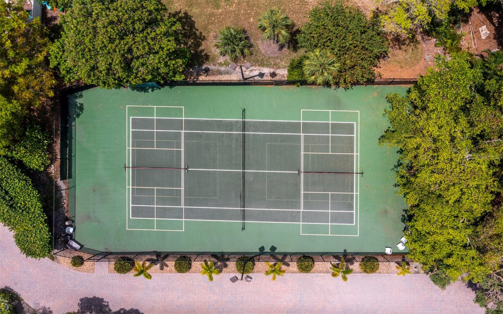 Exterior: Lighting, Sidewalk, Sliding Doors, Storage, Tennis Court(s)