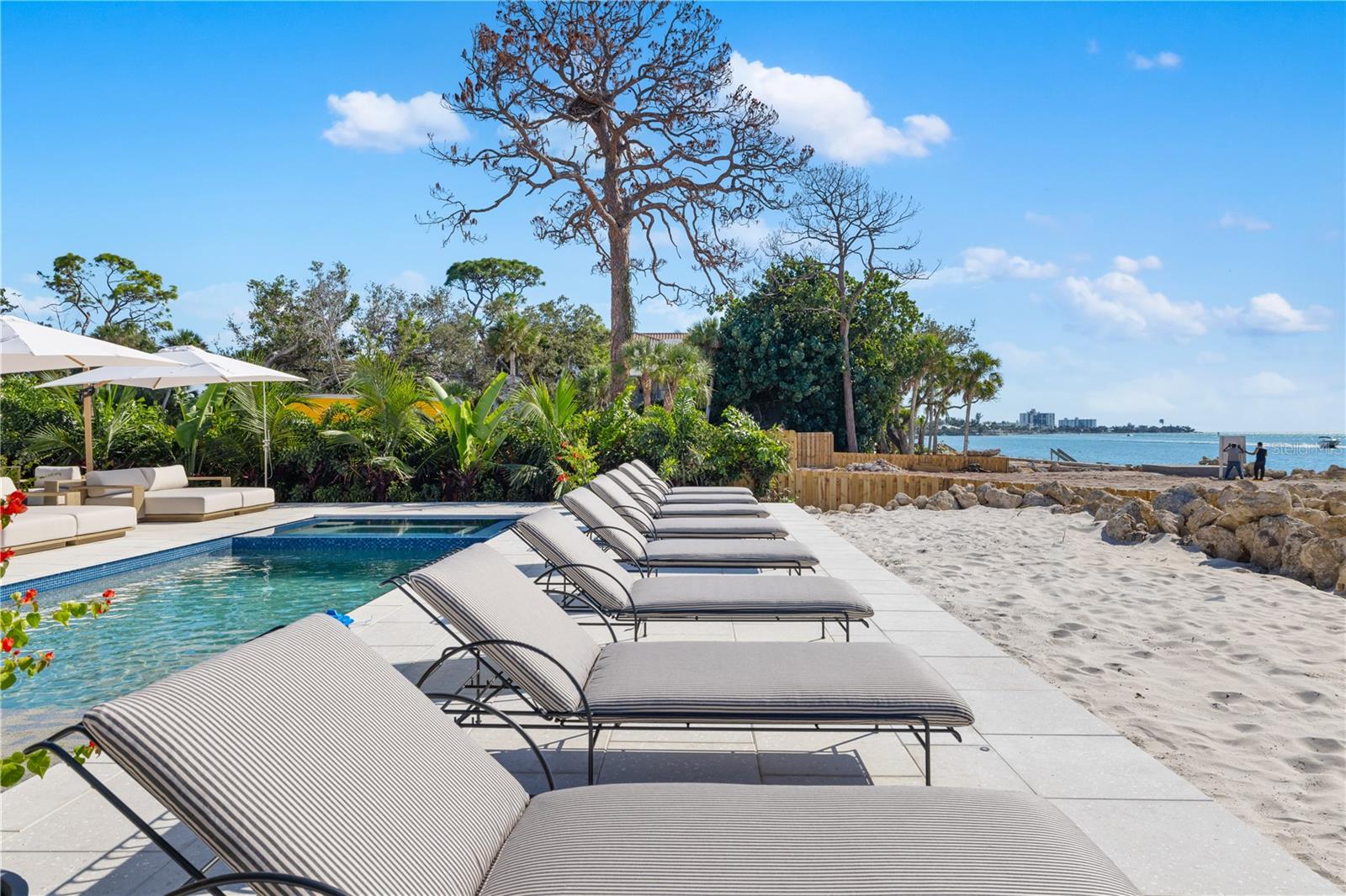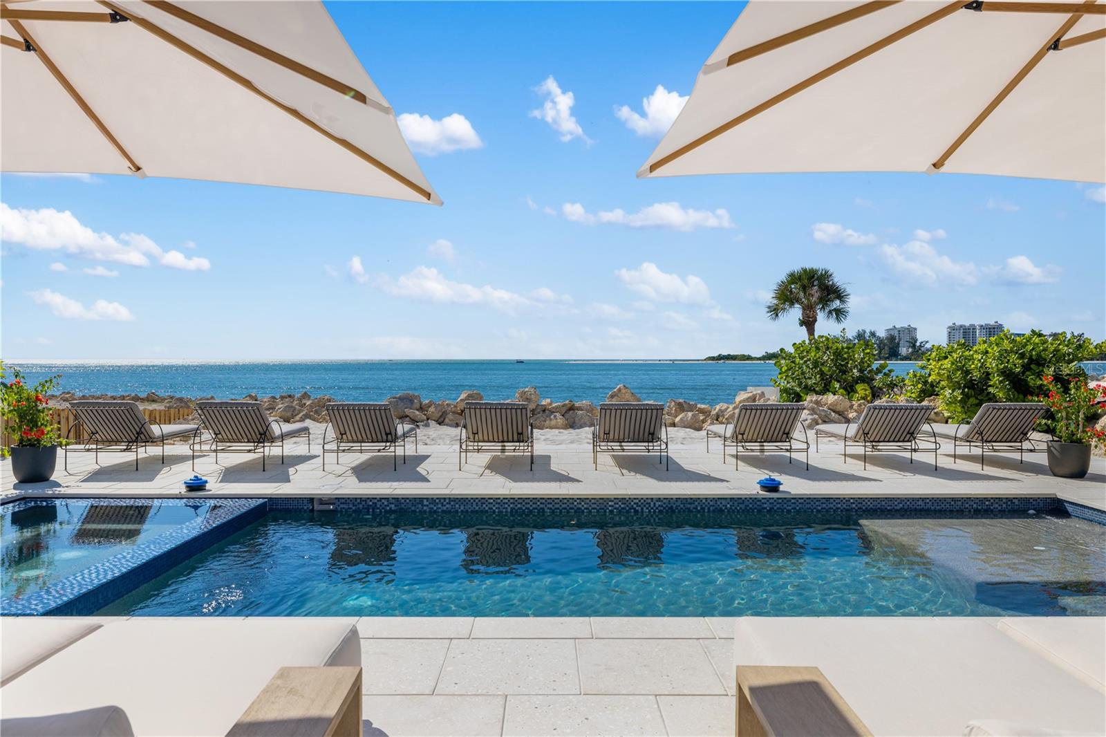 Experience private beachfront coastal luxury at this one-of-one Siesta Key home, thoughtfully curated for comfort, style, and entertainment - by Pham Development. Perfectly positioned off the Gulf, with gorgeous ocean views throughout the rooms - you can watch a world-class sunset view from your master bedroom. Spanning over 6,468 square feet under air and 9,080 total square feet, this exquisite residence captures the essence of resort-style waterfront living on more than half an acre of pristine Gulf-front land. Be at ease with a surrounding elevated riprap shoreline and the imported rocks, offering both protection and privacy.Pull into the property through the gated entry, with a paved driveway for ample parking. The ground level offers a 3-car garage, spacious private fitness studio with AC, large flex space/storage room, and huge game room that leads out to the truly special backyard - with premium turf, silica sand and a putting area. Host a sunset dinner with the full outdoor kitchen, including a freezer, wet bar, beverage center, ice machine, and 6-burner grill. Have a drink while sitting in the pool facing the ocean, relax in the champagne spa hot tub, or tan on the sun shelf. Put your toes in the sand area of the backyard, or take the paver steps down to the private beach and swim in the ocean - the ultimate paradise.Wake up to the panoramic views of the Gulf of America and Sarasota Bay, that create a daily masterpiece of color and light, and have a coffee on the master bedroom's private balcony. With 6 bedrooms, 5 full bathrooms, and 2 half baths, you can host more family and guests - along with the second living room/media room. All of the bedrooms have custom built-in closets, and the spacious ocean-view master bathroom leads to two spacious walk-in closets. The home features high-ceilings, beautiful hardwood flooring throughout, and cypress beams. The living and dining room area have a fireplace, and the open-floor plan leads out to another large balcony overlooking the ocean. Enjoy the gourmet custom kitchen with Thermador gas appliances, a walk-in pantry, and an extra large quartz island with seating. An elevator connects the 3-level home through the grand living spaces that flow seamlessly toward the water, blending indoor sophistication with the beauty of the coast. The lush tropical landscaping evokes the serenity of a private resort. Located just minutes from Siesta Beach, the Village, and the North Siesta Bridge, this rare coastal jewel offers the ultimate combination of elegance, exclusivity, and Gulf-front tranquility--a move-in ready residence truly without equal on Siesta Key.Please go to our Youtube link and see the video of this gorgeous property:https://youtu.be/qv5Iljf5d5U?si=dTNKY3LAuFQH6xBc