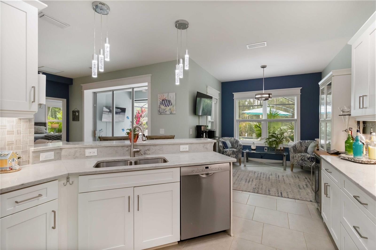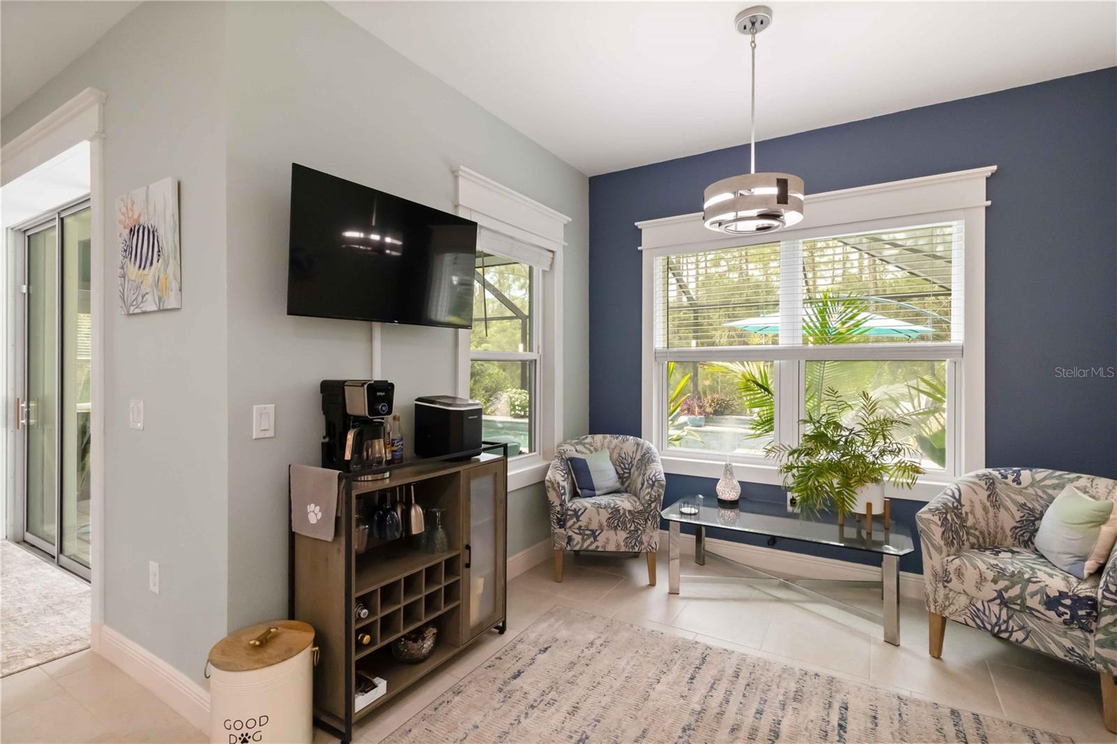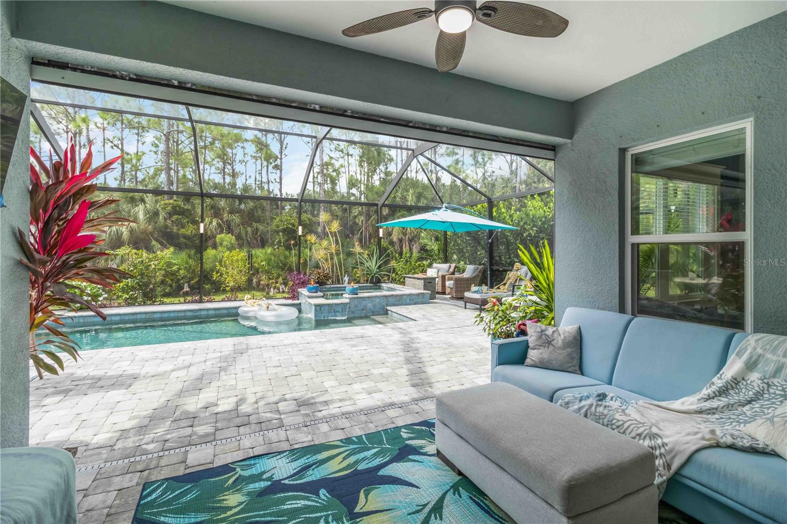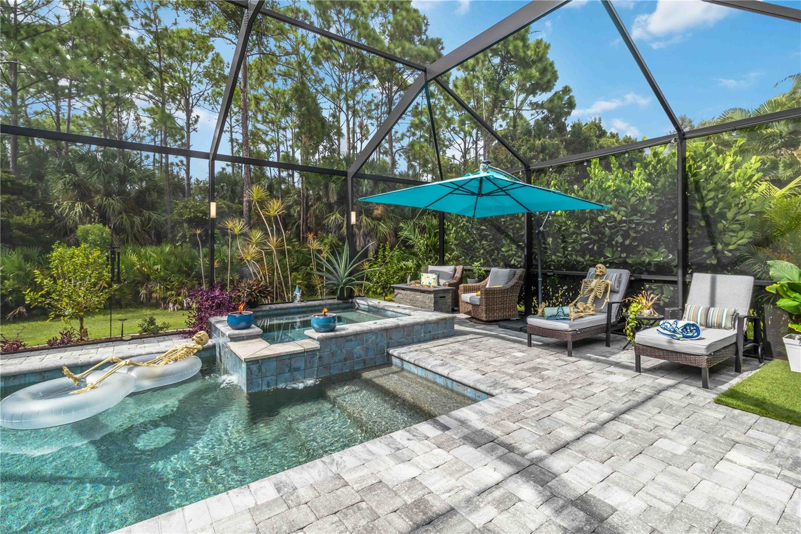 AMAZING POOL & SPA! Your own Tropical Escape awaits within Grand Palm, one of Venice's award-winning gated communities! Built in 2017, this 3-bedroom + den/office, 2-bathroom home has been freshly painted throughout the interior and features all new light fixtures--ready for you to move right in and enjoy. Step outside to your private oasis: a heated (gas), saltwater pool (26x12) and oversized spa (7x7), surrounded by NEW, lush tropical landscaping on a private conservation lot--no rear neighbors, just nature and tranquility. The spacious paver lanai offers plenty of room for lounging, dining, and TV watching, while a StormSmart remote-controlled hurricane shutter makes closing off the patio simple and secure. New remote-controlled lighting adds evening ambiance. Inside upgrades include: Custom glass insert in front door, New landscaping and fireplace wall feature, New closet systems in both primary bedroom closets, Brand new stainless refrigerator, Rain shower faucets in the primary bath, Shaker wood trim on all windows. The kitchen is a chef's dream with quartz countertops, tile backsplash, gas oven/range, Bosch dishwasher, wine fridge, New SS GE fridge, wood cabinetry with undermount lighting, and a pantry. The adjoining dining area showcases a tray ceiling with new lighting. The den/office with French doors is currently set up as a sports-viewing room--perfect for hobbies or work-from-home. A barn door adds privacy to the guest wing, which includes two spacious bedrooms and a full guest bath with tile tub/shower combo. The primary suite offers pool and nature views, tray ceiling, dual closets with custom systems (one walk-in), and a spa-inspired bath with dual sinks, tiled shower featuring rain and handheld fixtures, and plenty of natural light. Additional highlights: All new interior paint, All new light fixtures throughout, Remote-controlled lanai lighting, StormSmart lanai shutter. Located in Grand Palm, a resort-style, golf-cart-friendly community offering: 3 community pools, 2 spas, fitness center, and clubhouse, 26+ miles of walking and biking trails, Kayak launch and storage, Lookout Point Island on Adventure Lake, Pickleball, tennis, basketball, Bocce, sand volleyball, Playgrounds, picnic areas, Splash Pad, and weekly food trucks. Just minutes from Wellen Park, where you'll find dining, shopping, a weekly farmer's market, and CoolToday Park for Atlanta Braves spring training games. Historic Downtown Venice and Venice Beach are only 9 miles away! One of the few gated communities in unincorporated Sarasota County, offering significantly lower property taxes than nearby areas. Stay in and relax in your personal tropical haven--or head out to explore everything Venice has to offer. This home combines the best of modern upgrades, low-maintenance living, and resort-style amenities in one perfect package.