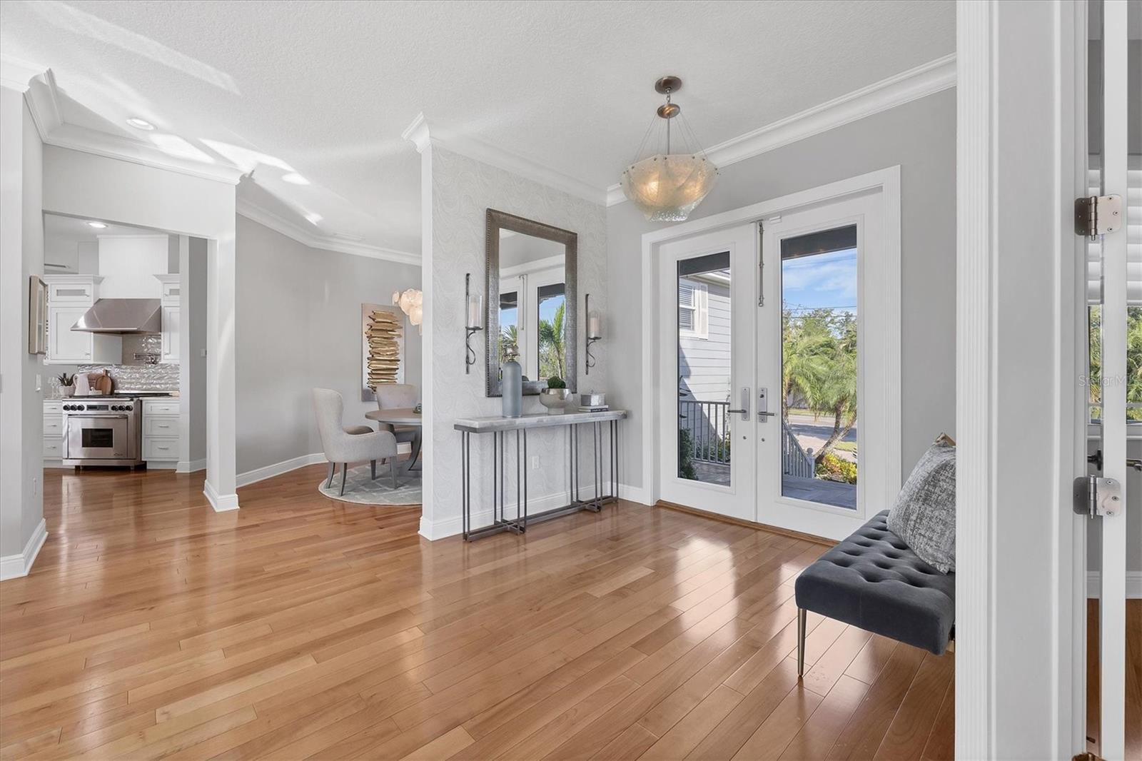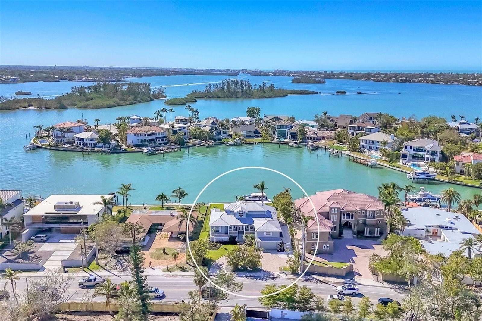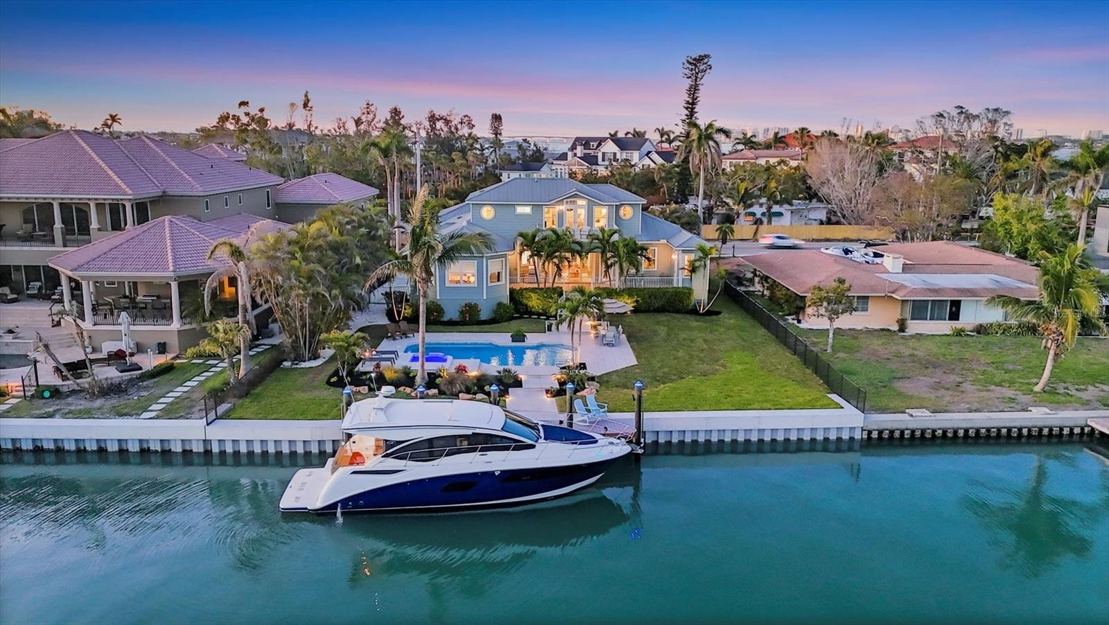 Look no further. Welcome home to your coastal Siesta Key waterfront retreat, a boater's dream come true. On the desired north end of Siesta Key, this four-bedroom, four-bath residence spans 4,622 square feet of meticulously designed living space. Elevated above flood plain, the residence blends architectural craftsmanship with a premier waterfront lifestyle. Directly on the Intracoastal Waterway with no fixed bridges, the property offers swift access to Big Pass and open Gulf waters. The dock presents panoramic bay views and a new 95-foot seawall with a 40-foot slip equipped with power, water and solar lit pilings, ideal for boating or serene sunrise and sunset viewing. The outdoor experience is elevated by a heated saltwater pool and spa, complete with smart controls, waterfall features and porcelain shellstone decking. Inside, a gourmet kitchen centers the home, featuring a Sub-Zero refrigerator, six-burner Dacor gas range with stainless vent hood, Advantium microwave-convection oven, wine refrigerator, wet bar, soft-close cabinetry with glass uppers, decorator granite surfaces, expansive island and illuminated custom cabinetry. The open-concept family room showcases a cathedral ceiling with sweeping bay vistas, creating a striking indoor-outdoor connection. The expansive primary suite features a private waterfront balcony, new carpet, custom walk-in closet and a spa-style en-suite with a deep soaking tub, frameless rain shower, and dual vanities. Two guest bedrooms are on the first floor, including a rear en-suite with a private entrance that also serves as a dedicated pool bath. A bonus room used as a game and fitness space offers flexible potential and can easily be converted into a fourth bedroom. This residence is within the city limits, allowing for potential short-term rental income, making it an attractive opportunity for personal enjoyment and investment. Additional highlights include hurricane-impact windows and doors, Hunter Douglas custom treatments, crown molding, Brazilian cherry wood flooring and refined interior finishes throughout. Professionally landscaped grounds with new sod, an irrigation system and hardscape pathways complete the setting. Minutes from Siesta Key Beach and Village and a short drive to Southside Village and downtown Sarasota, this residence merges waterfront access with design, privacy and location, offering a rare opportunity to own a premier property on Florida's Gulf Coast. Click on the fly-through video and Matterport walk-through for more images. Live where every day feels like a resort vacation, make it come true!