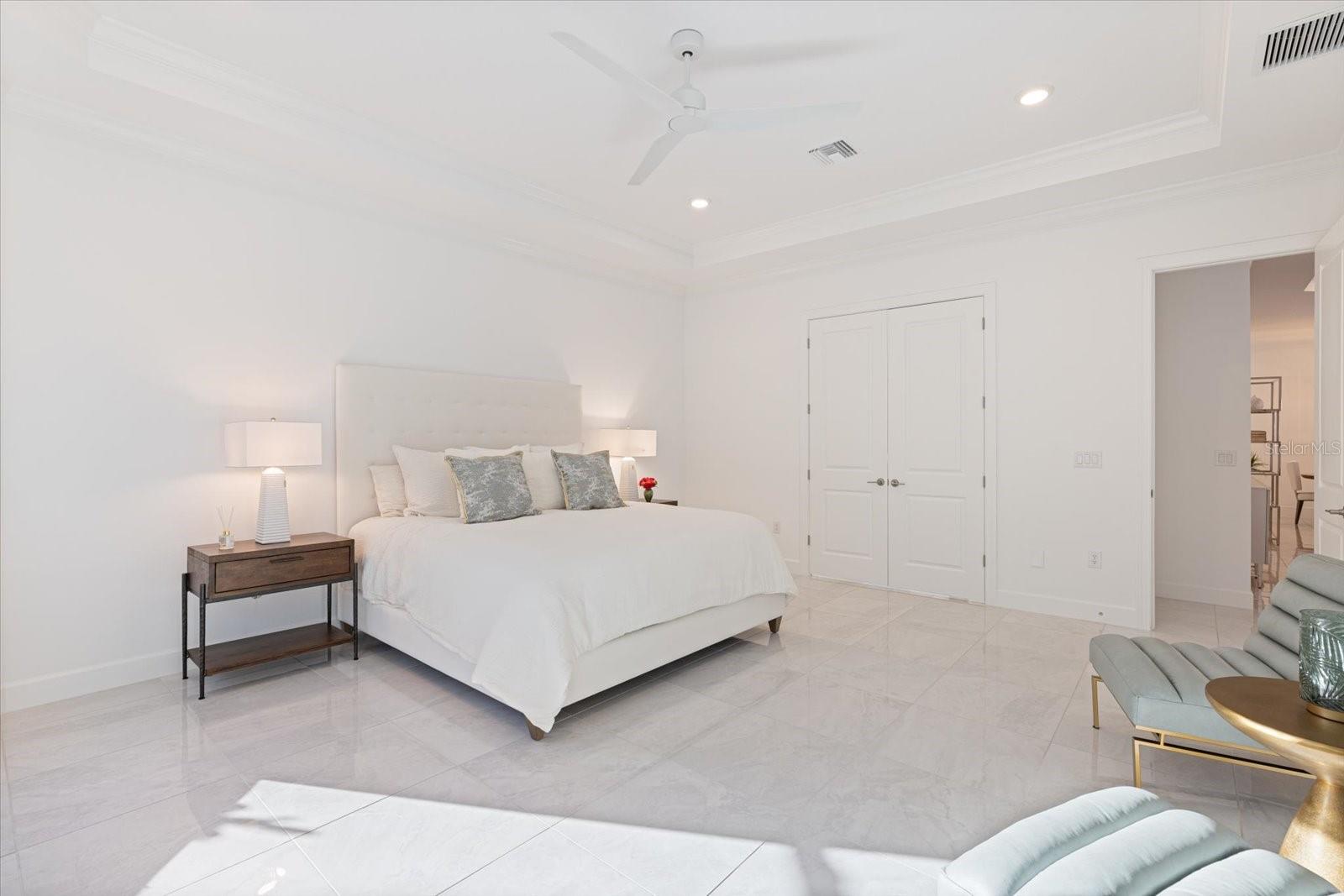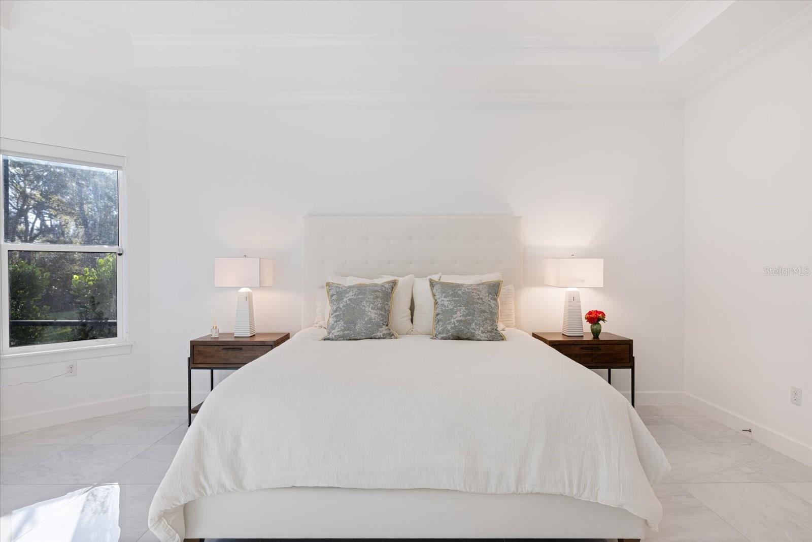 Discover the ideal blend of modern style and functionality at Esplanade at Azario with this NON GOLF DEEDED home. Situated in the MINIMAL RISK X FLOOD ZONE, this residence is equipped with IMPACT GLASS THROUGHOUT, STORM SMART SCREENS, and a FULL HOUSE GENERATOR for your peace of mind. This sleek 3-bedroom, 3-bathroom home with a den features nearly $300,000 in post-construction upgrades, offering 3,072 square feet of contemporary elegance. The thoughtfully designed landscaping includes underground piping on both sides to efficiently manage rainwater.Enter into a bright, open space where chic tile floors and recessed lighting establish a modern ambiance. The oversized great room effortlessly transitions into the dining area, providing an ideal environment for relaxation and entertaining. The kitchen is a culinary enthusiast's dream, boasting a spacious island with premium quartz countertops, a walk-in pantry, and an extended area with a 44-bottle wine cooler. Outfitted with stainless steel appliances, including a gas stove and range hood, this kitchen is equipped for everything from casual breakfasts to gourmet dinners. Pocket sliding doors and stylish pendant lights add an extra layer of sophistication.The primary bedroom serves as a luxurious retreat, complete with a bay area perfect for a cozy sitting space. The ensuite bath features an oversized walk-in shower with dual shower heads, dual sinks, and a vanity, while the master closet offers ample storage space.Step outside to your private oasis, featuring an oversized saltwater pool, clear view screening, and a travertine deck. The extended covered lanai provides a serene spot to enjoy tranquil preserve views with added privacy. This home also includes two additional bedrooms, one of which is ensuite, and an oversized laundry room with cabinets and a sink.Additional features include a Central Vac, Culligan water system, recirculating pump for reclaimed water, electric for a car charger in the garage, smart home technology, designer lighting and fans, crown molding, tray ceilings, gutters, and room-darkening shades.Living in Esplanade at Azario grants you access to top-notch amenities, including a clubhouse, pickleball and tennis courts, gym, and putting green. The state-of-the-art Culinary Center offers additional dining and entertainment options. Unwind at the spa, take a dip in the resort-style pool, or enjoy a drink at the bar. An activities director is available to help you make the most of the community's offerings. This home is not just a place to live; it's a lifestyle waiting to be embraced.