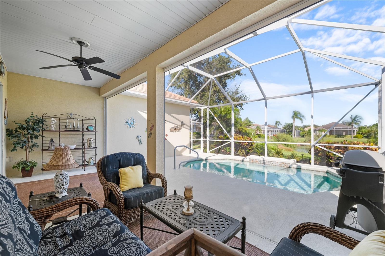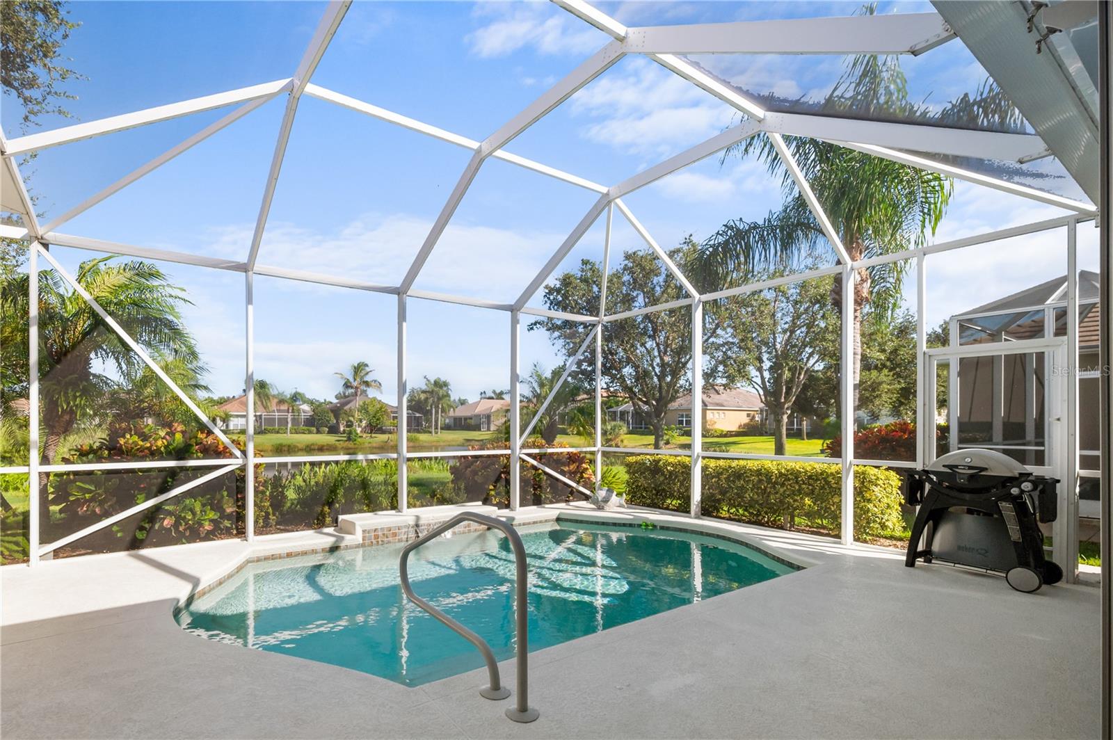 STUNNING POOL HOME IN WISTERIA PARK! Welcome home to this beautifully maintained former Neal "Endless Summer" model home located in one of Northwest Bradenton's most sought-after neighborhoods. Perfectly positioned just steps from the gorgeous community pool, this residence offers the ideal blend of luxury, comfort, and Florida lifestyle living.From the moment you arrive, you'll appreciate the impeccable curb appeal of this meticulously cared-for home. The neighborhood of Wisteria Park is known for its lush landscaping, stately palms, and peaceful atmosphere. In this section of the community, landscaping and irrigation are maintained by the HOA, allowing homeowners to enjoy a truly carefree lifestyle--leaving more time to relax and enjoy the beauty that surrounds you.Inside, the home's thoughtful floor plan and timeless details set it apart. This 3-bedroom, 2-bath home plus an oversized den/office has been lovingly maintained by its original owners since new. The open-concept layout features crown molding, tray ceilings, and custom plantation shutters throughout. The kitchen is the heart of the home, offering quartz countertops, a large center island, and stainless steel appliances including a GAS stove, seamlessly connecting to the breakfast nook and great room--perfect for entertaining or casual everyday living.The primary suite is privately situated at the rear of the home with serene pond views, two walk-in closets with custom built-ins, and a spacious bathroom featuring dual vanities and a large walk-in shower. Two additional bedrooms and a full guest bath provide comfort for family or guests, while the spacious den/office offers flexibility--ideal as a home office, reading retreat, or guest overflow space.Step outside to your own private oasis. The heated, screened-in pool and covered lanai create the perfect setting for alfresco dining, lounging, or enjoying quiet Florida evenings. With remote hurricane blinds across the lanai, this space can easily transition for all-weather use. The concrete tile roof has been recently inspected, providing added confidence in the home's excellent condition. Additional upgrades include impact windows (2022), a whole-house generator (2022), and a garage with painted floor and hanging storage system, combining practicality with pristine presentation.Beyond your doorstep, Wisteria Park offers a community pool, playground, and green spaces ideal for walking or gathering with neighbors. Just minutes away, you'll find Robinson Preserve, a local treasure known for its scenic walking and biking trails, kayak launches, and breathtaking coastal views. The nearby DeSoto National Memorial Park and world-famous beaches of Anna Maria Island offer endless opportunities for outdoor recreation and relaxation.This location also provides easy access to SRQ International Airport, downtown Bradenton, and vibrant Sarasota, where shopping, dining, arts, and entertainment abound.Combining modern upgrades, quality craftsmanship, and an unbeatable location, this exceptional home truly embodies the best of Florida living. Move in, unwind, and start enjoying your endless summer today.