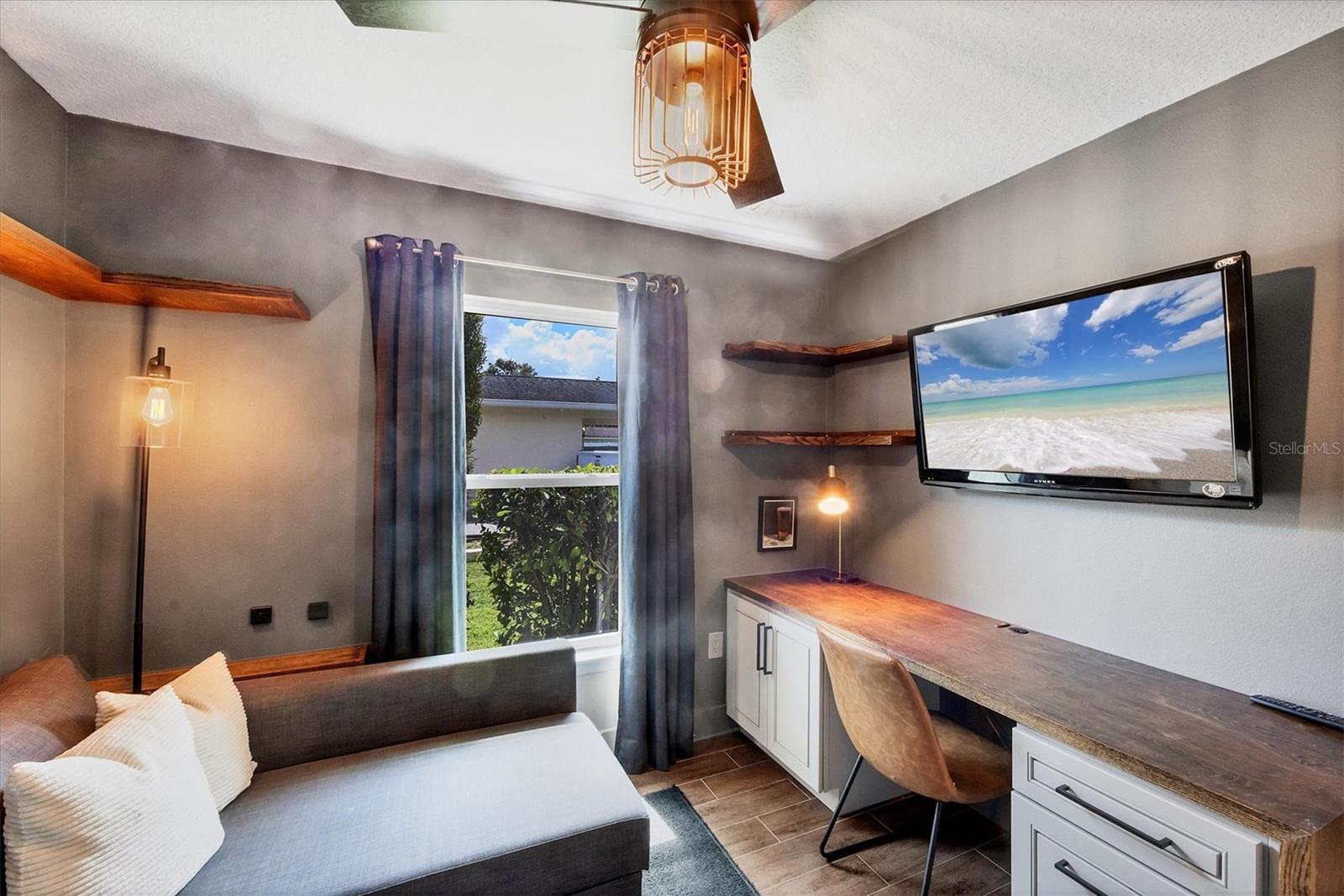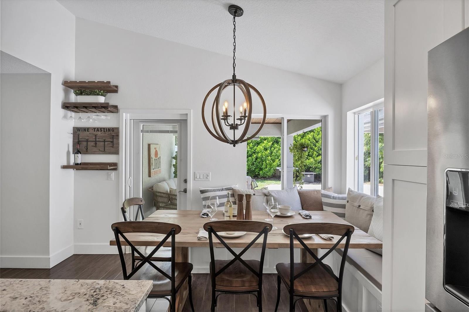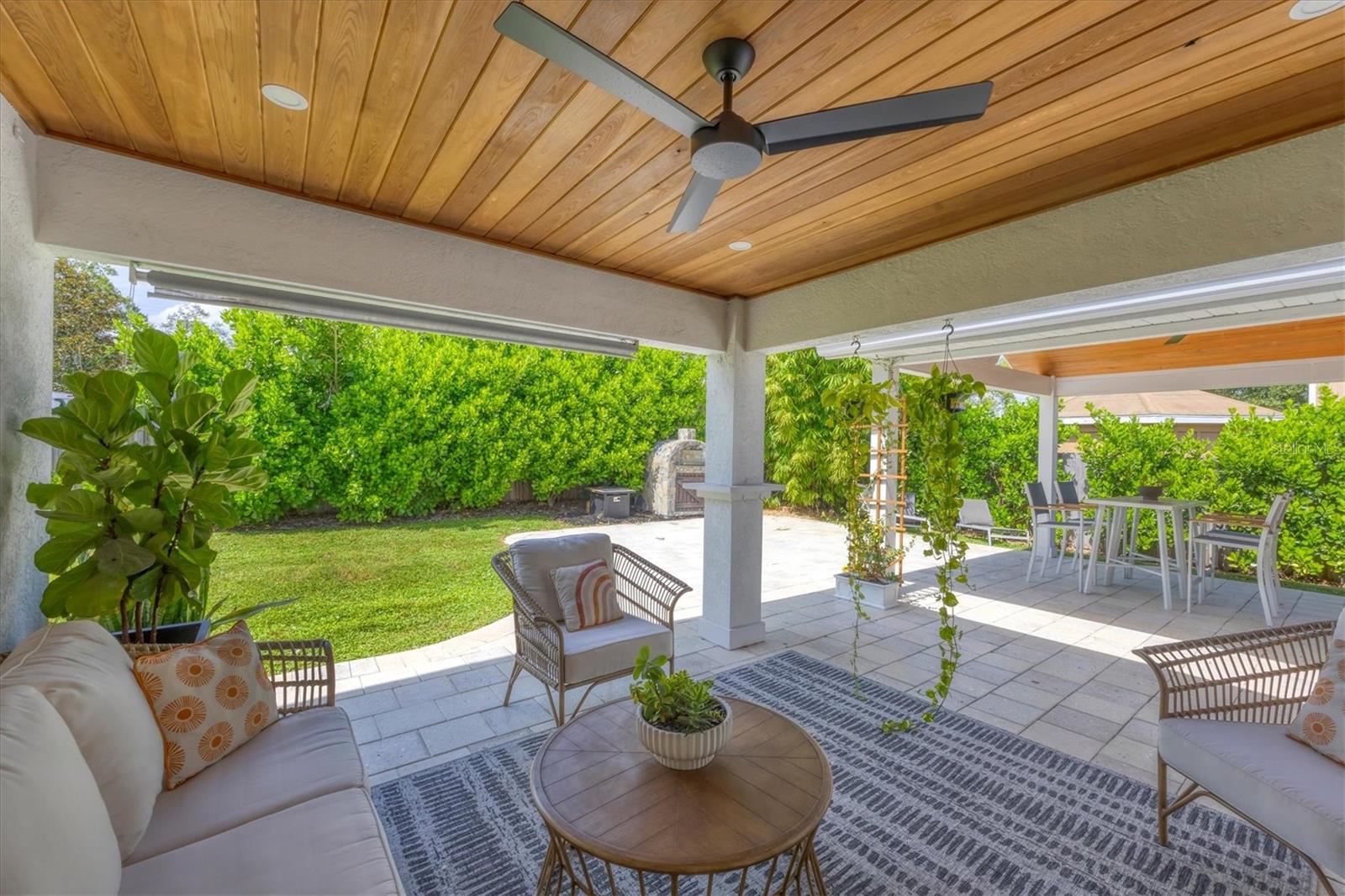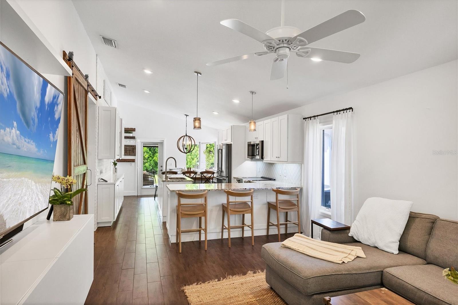 This Charming 3-Bedroom, 2-Bath Home with 2-car garage plus a detached shed/workshop combines High End Craftsmanship with Modern Farmhouse Style. Built by a local builder with meticulous attention to detail, every space in this home was thoughtfully designed for comfort, style, and function. Step inside to find custom touches throughout, including wood-inlaid ceilings on front porch and outdoor covered living areas, a sliding barn door separating the living area from the bedrooms, a built-in dining bench with storage, shiplap wall details in the Primary Suite, detailed trim in the second bedroom, and a built-in desk in the third bedroom, perfect for a home office or study space. The heart of the home is the spacious kitchen, featuring custom wood cabinetry, granite countertops, New Stainless Appliances, an island, a breakfast bar with seating, and an adjacent Dining Area with adorable and functional bench for family dinners or friendly gatherings. The Primary Suite is a retreat of its own with a stunning bathroom showcasing marble floors and marble tile shower, and custom dual vanity with marble tops. Two guest bedrooms share a stylish bath with marble top vanity and a tub/shower combination. Outdoor living is just as impressive. A covered entertainment area provides plenty of room for lounging and dining, complete with outdoor kitchen (grill and beverage cooler), while fenced backyard offers a wood-fired pizza oven-a dream for entertaining. Energy efficiency is built with solar panels that power appliances, New Tankless hot water heater, AC, and lighting, making this home as smart as it is beautiful, with extremely low energy costs. Also, Hurricane Impact Windows throughout the home provides peace of mind! The fenced yard also features an outdoor private shower, irrigation system, and a large lot providing privacy and function for pets, gardening, or family play. Located in the heart of Sarasota, this home is just minutes from top-rated schools, downtown Sarasota, I-75, University Town Center, award winning restaurants, shopping, and the world-renowned Lido Key and Siesta Key Beaches. This One-of-a-Kind property blends thoughtful design, modern efficiency, and timeless style. Don't miss your chance to call it Yours!