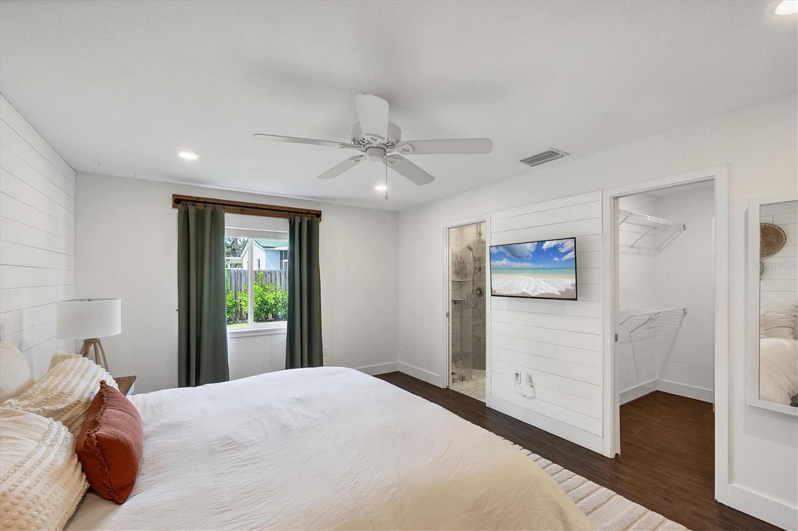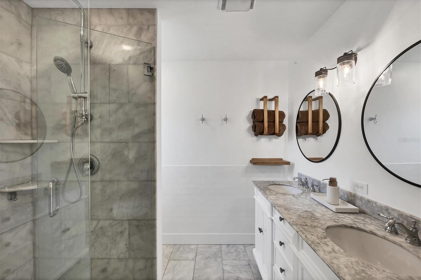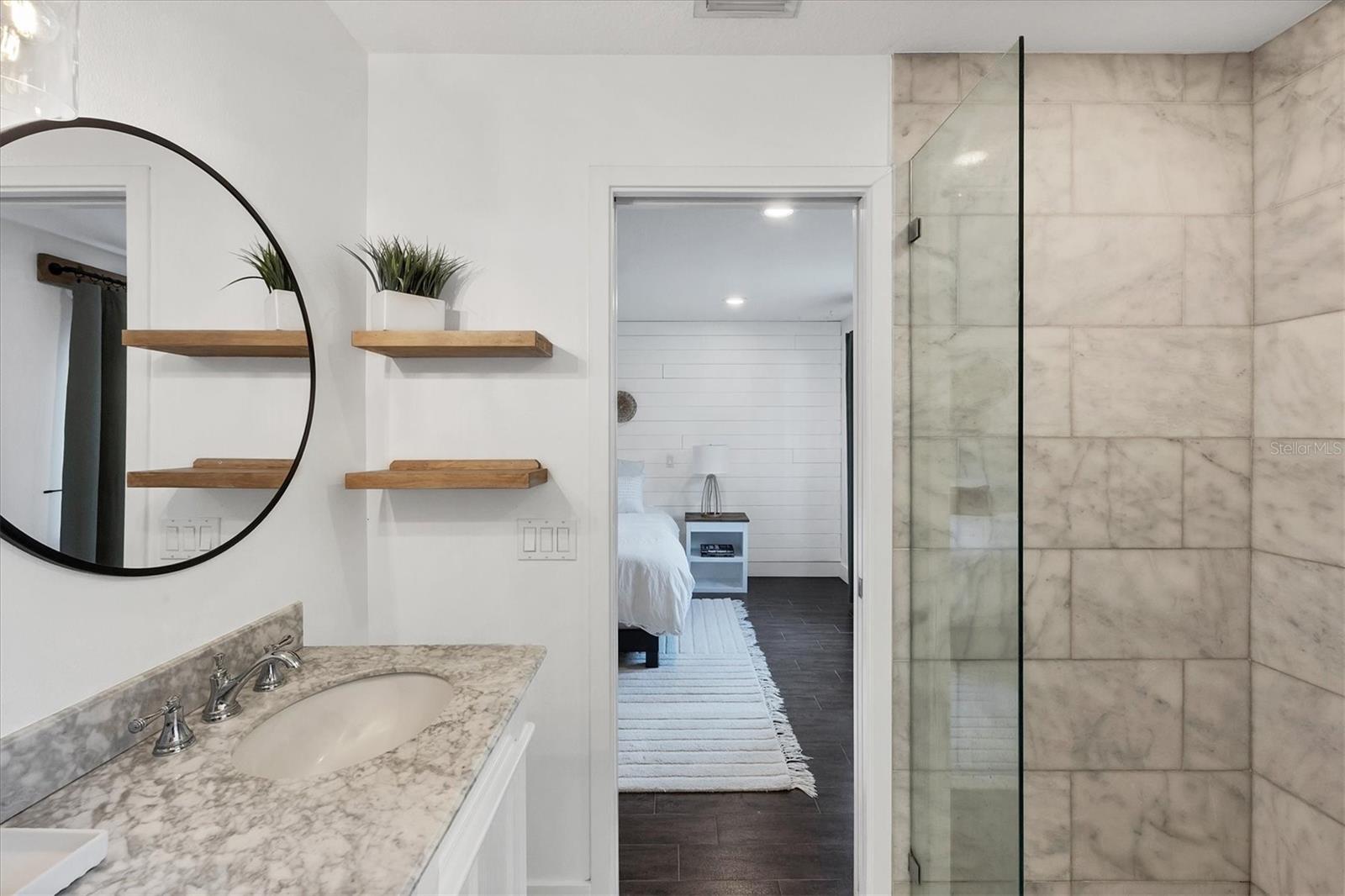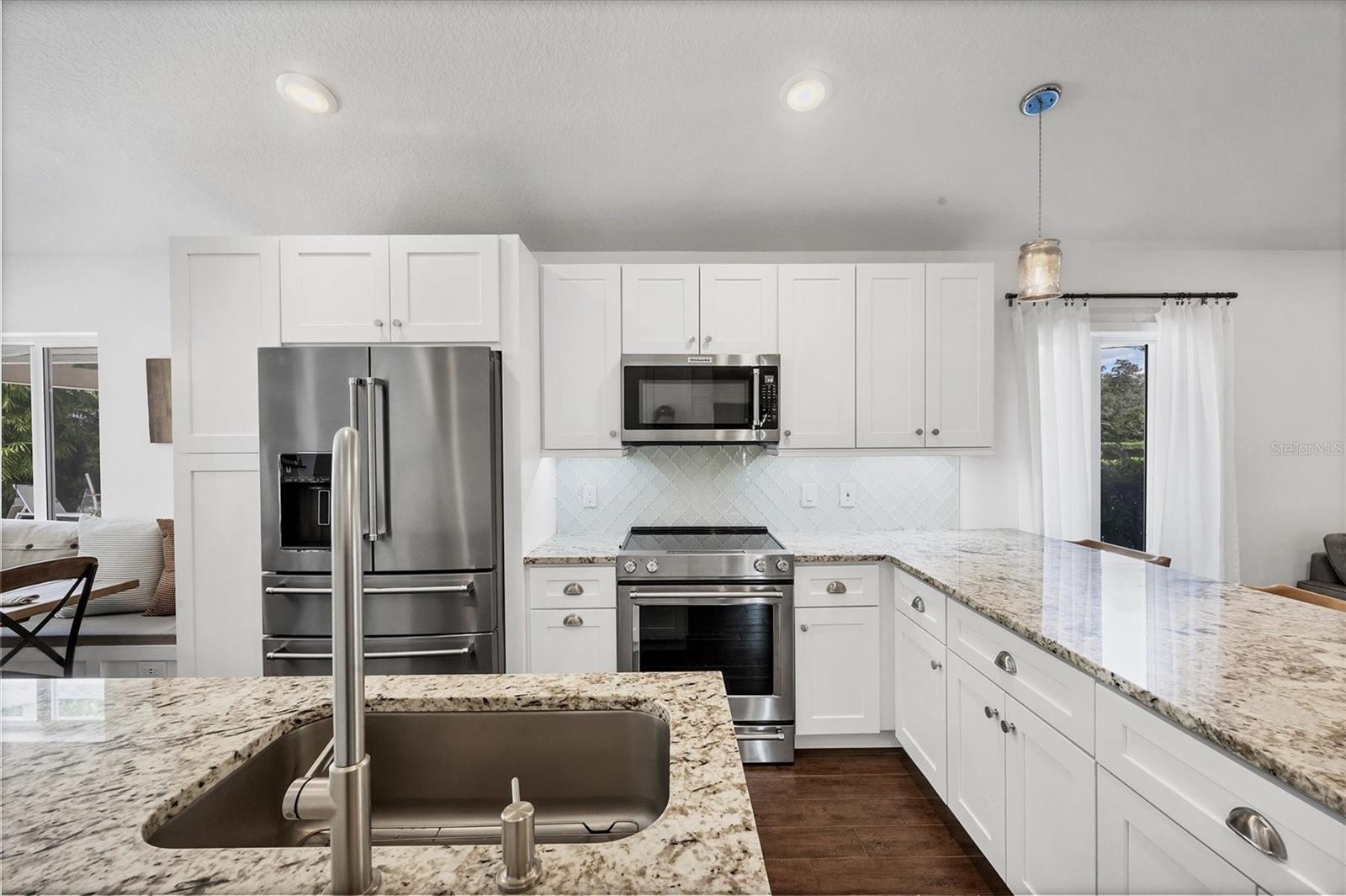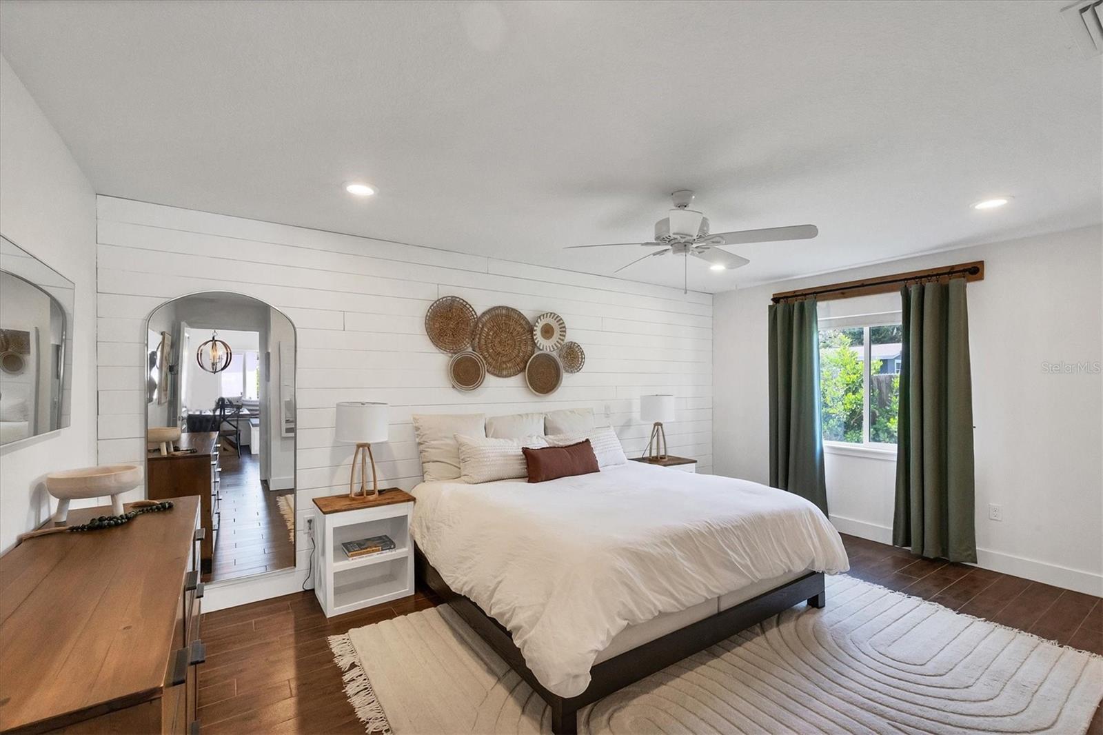 This Charming 3-Bedroom, 2-Bath Home with 2-car garage plus a detached shed/workshop combines High End Craftsmanship with Modern Farmhouse Style. Built by a local builder with meticulous attention to detail, every space in this home was thoughtfully designed for comfort, style, and function. Step inside to find custom touches throughout, including wood-inlaid ceilings on front porch and outdoor covered living areas, a sliding barn door separating the living area from the bedrooms, a built-in dining bench with storage, shiplap wall details in the Primary Suite, detailed trim in the second bedroom, and a built-in desk in the third bedroom, perfect for a home office or study space. The heart of the home is the spacious kitchen, featuring custom wood cabinetry, granite countertops, New Stainless Appliances, an island, a breakfast bar with seating, and an adjacent Dining Area with adorable and functional bench for family dinners or friendly gatherings. The Primary Suite is a retreat of its own with a stunning bathroom showcasing marble floors and marble tile shower, and custom dual vanity with marble tops. Two guest bedrooms share a stylish bath with marble top vanity and a tub/shower combination. Outdoor living is just as impressive. A covered entertainment area provides plenty of room for lounging and dining, complete with outdoor kitchen (grill and beverage cooler), while fenced backyard offers a wood-fired pizza oven-a dream for entertaining. Energy efficiency is built with solar panels that power appliances, New Tankless hot water heater, AC, and lighting, making this home as smart as it is beautiful, with extremely low energy costs. Also, Hurricane Impact Windows throughout the home provides peace of mind! The fenced yard also features an outdoor private shower, irrigation system, and a large lot providing privacy and function for pets, gardening, or family play. Located in the heart of Sarasota, this home is just minutes from top-rated schools, downtown Sarasota, I-75, University Town Center, award winning restaurants, shopping, and the world-renowned Lido Key and Siesta Key Beaches. This One-of-a-Kind property blends thoughtful design, modern efficiency, and timeless style. Don't miss your chance to call it Yours!