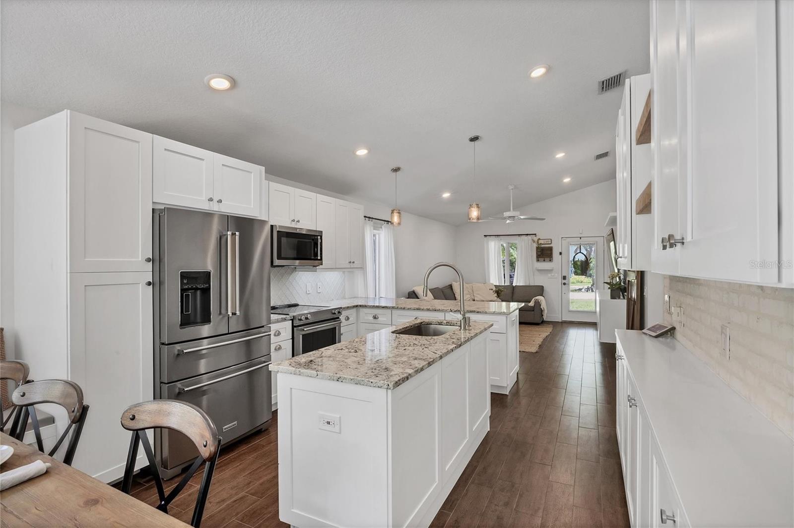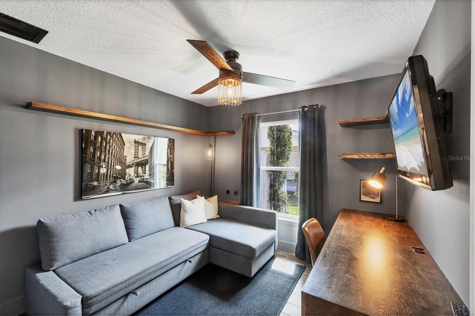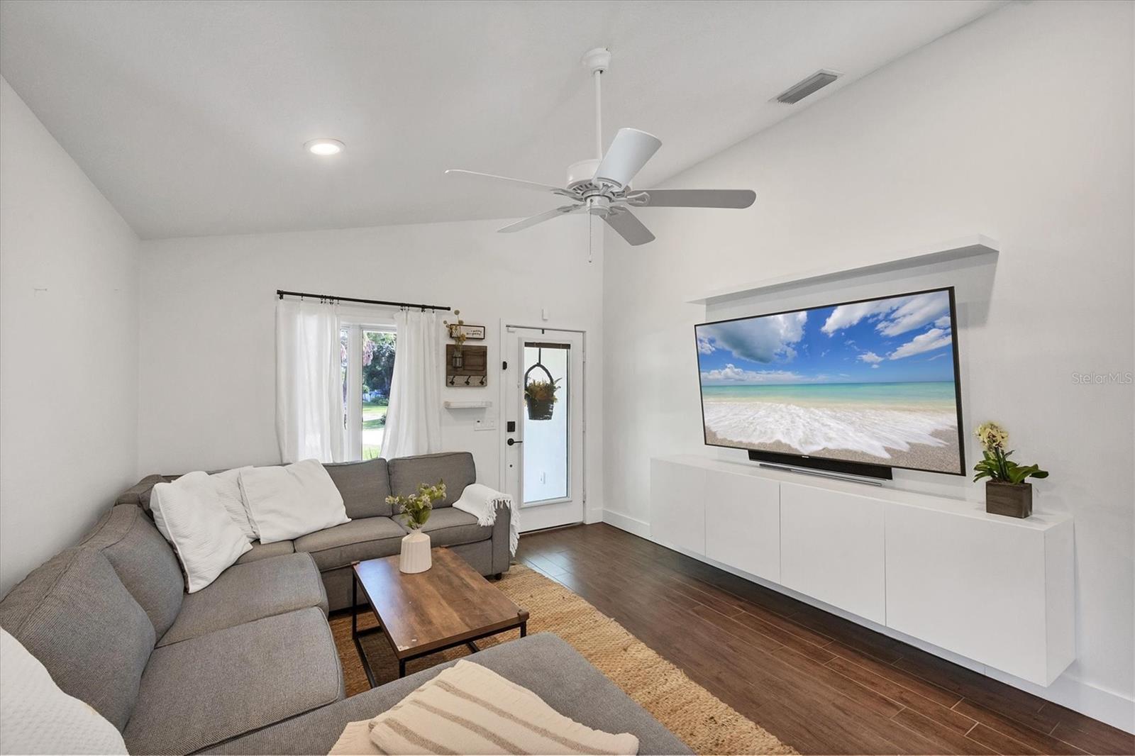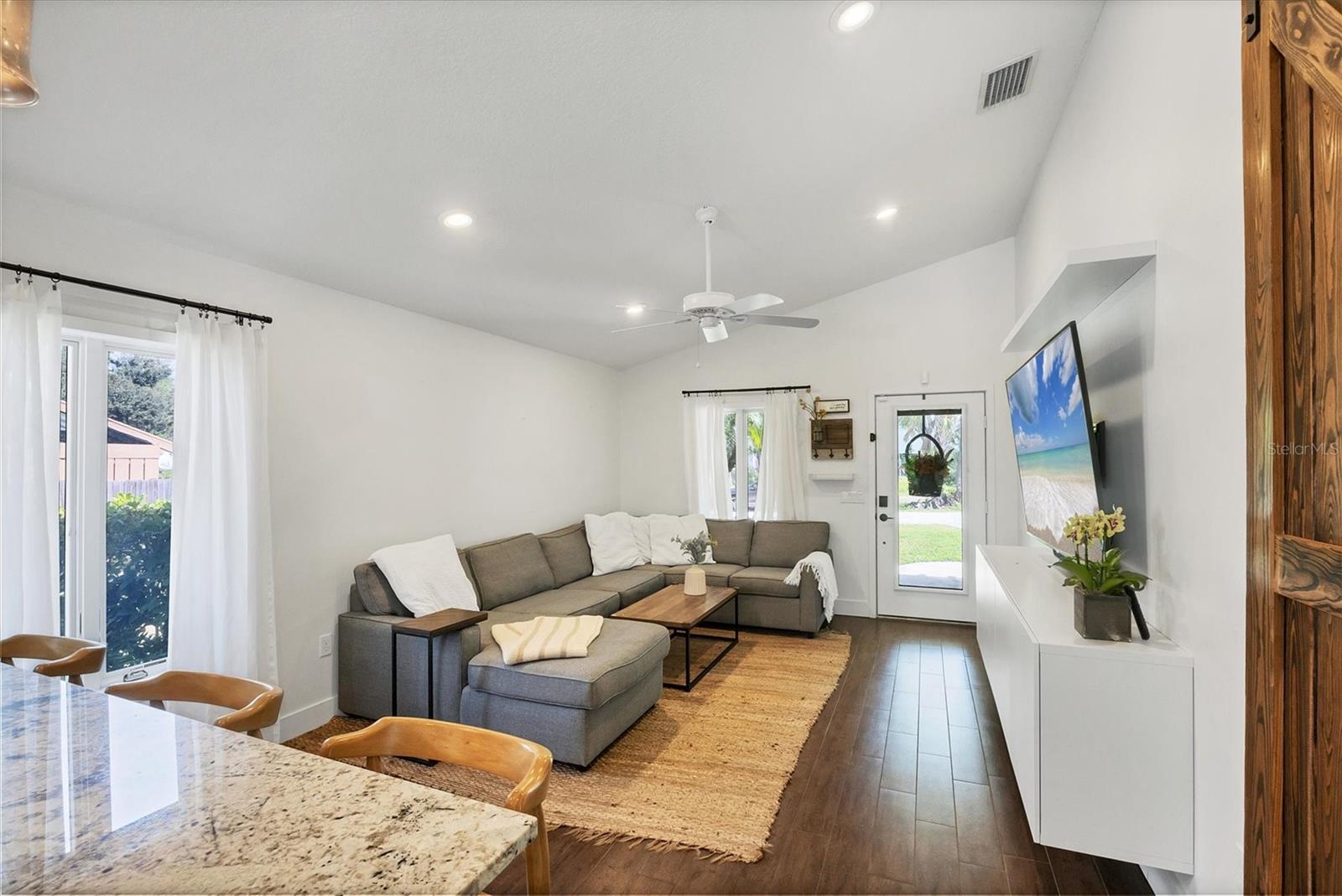 This Charming 3-Bedroom, 2-Bath Home with 2-car garage plus a detached shed/workshop combines High End Craftsmanship with Modern Farmhouse Style. Built by a local builder with meticulous attention to detail, every space in this home was thoughtfully designed for comfort, style, and function. Step inside to find custom touches throughout, including wood-inlaid ceilings on front porch and outdoor covered living areas, a sliding barn door separating the living area from the bedrooms, a built-in dining bench with storage, shiplap wall details in the Primary Suite, detailed trim in the second bedroom, and a built-in desk in the third bedroom, perfect for a home office or study space. The heart of the home is the spacious kitchen, featuring custom wood cabinetry, granite countertops, New Stainless Appliances, an island, a breakfast bar with seating, and an adjacent Dining Area with adorable and functional bench for family dinners or friendly gatherings. The Primary Suite is a retreat of its own with a stunning bathroom showcasing marble floors and marble tile shower, and custom dual vanity with marble tops. Two guest bedrooms share a stylish bath with marble top vanity and a tub/shower combination. Outdoor living is just as impressive. A covered entertainment area provides plenty of room for lounging and dining, complete with outdoor kitchen (grill and beverage cooler), while fenced backyard offers a wood-fired pizza oven-a dream for entertaining. Energy efficiency is built with solar panels that power appliances, New Tankless hot water heater, AC, and lighting, making this home as smart as it is beautiful, with extremely low energy costs. Also, Hurricane Impact Windows throughout the home provides peace of mind! The fenced yard also features an outdoor private shower, irrigation system, and a large lot providing privacy and function for pets, gardening, or family play. Located in the heart of Sarasota, this home is just minutes from top-rated schools, downtown Sarasota, I-75, University Town Center, award winning restaurants, shopping, and the world-renowned Lido Key and Siesta Key Beaches. This One-of-a-Kind property blends thoughtful design, modern efficiency, and timeless style. Don't miss your chance to call it Yours!