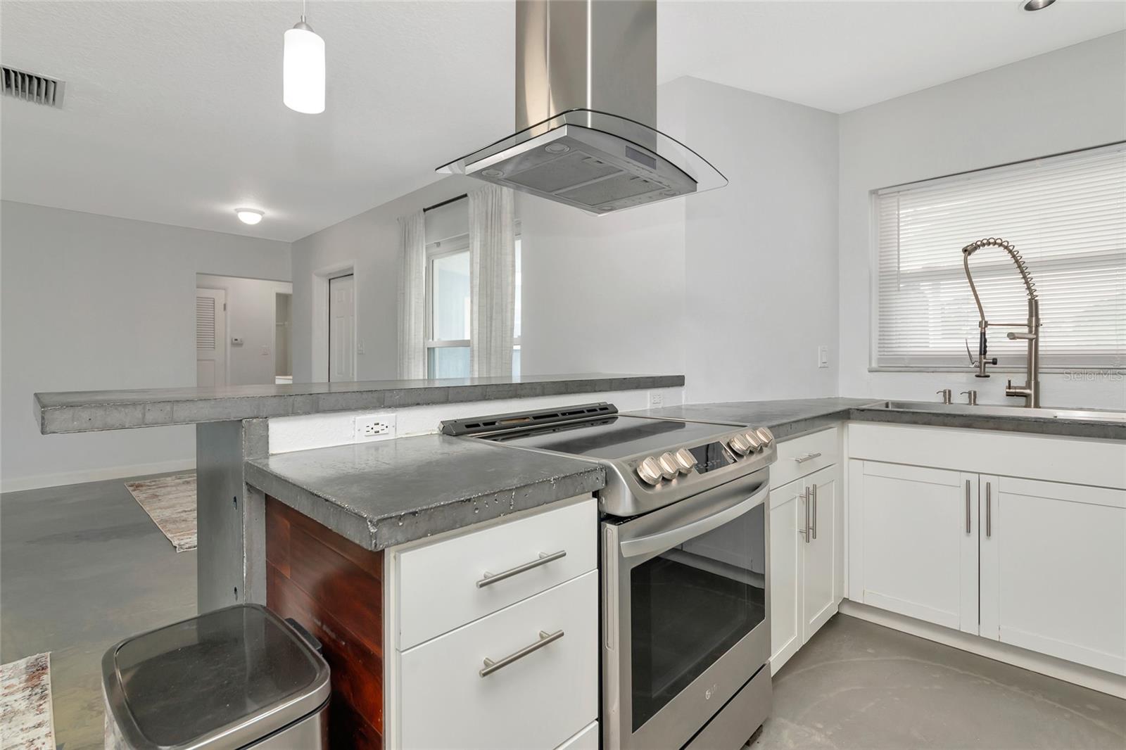 Modern and sleek, this completely remodeled 3 Bedroom, 2 Bathroom home is spacious! Perfect for entertaining or having the family over, it is sure to impress anyone you have over! Centrally located between Sarasota and Bradenton, everything is near by! Shopping, beaches, UTC, Ringling Museum, and more! Enjoy the clean edges and elegant design throughout this gem! Special design features include, custom concrete "floating bar" and countertops with rich wood accents, newer kitchen cabinets, modern "low corner radius" sink with industrial style faucet, commercial style convection oven, and a beautiful glass range hood. The kitchen and bar are thoughtfully arranged to encourage conversation and gathering while meals are being prepared. Ultra contemporary epoxy floors sprawl throughout the home and are perfectly complemented by gorgeous recessed lighting. Enjoy the master suite with its own freshly remodeled bathroom and a walk in closet. And with two additional full size bedrooms, this home is perfect for the whole family, or having your friends over on the weekend! And they're going to love the chic new guest bathroom too! With fresh paint inside & out, and all these fantastic updates, this property is move-in ready, ALL FENCED WITH BIG BACK YARD NO HOA and will go FAST! So make an appointment today!