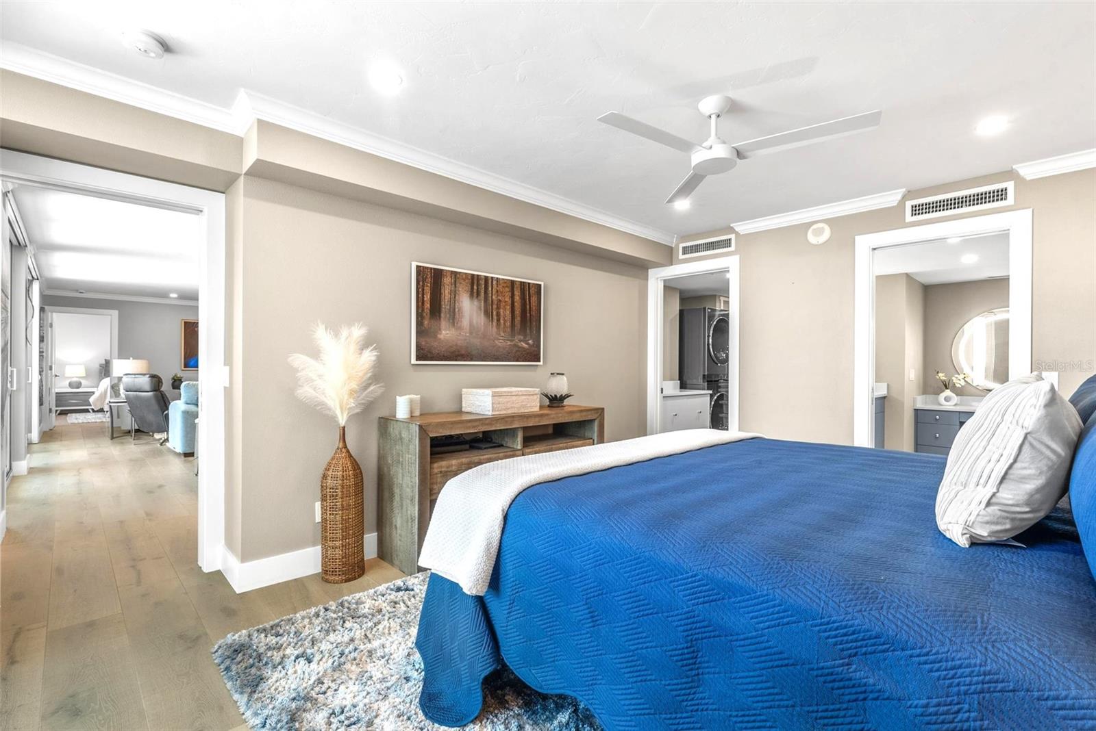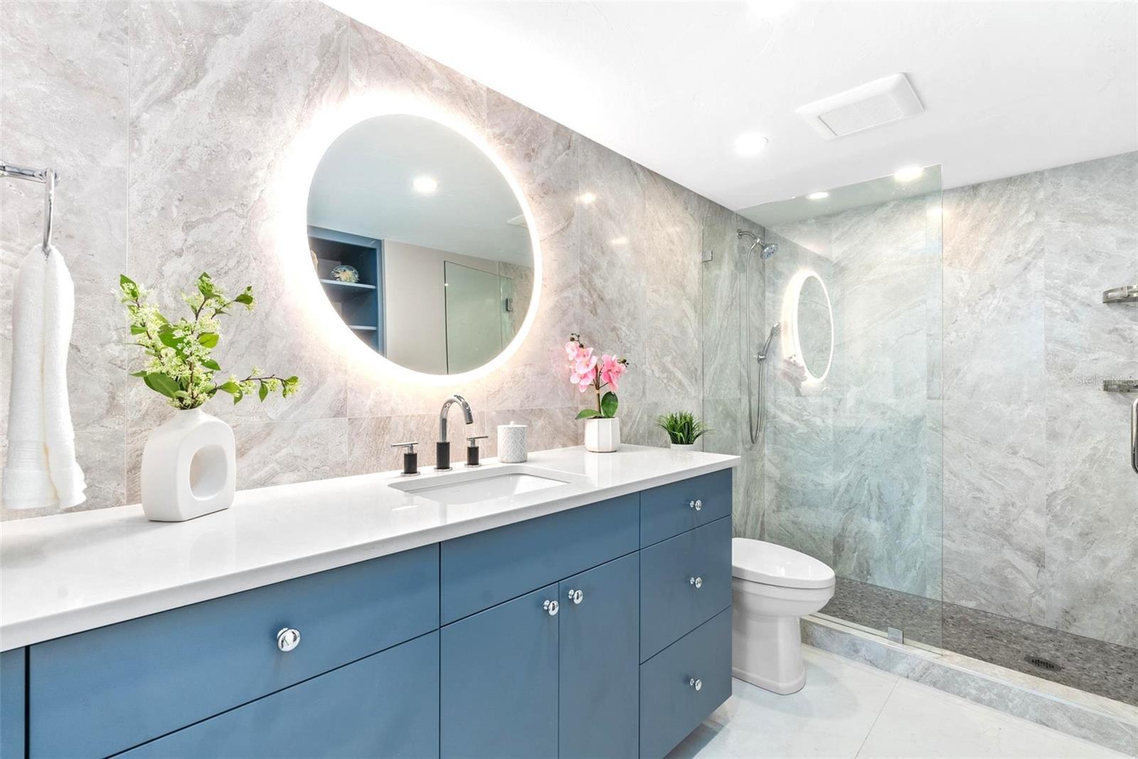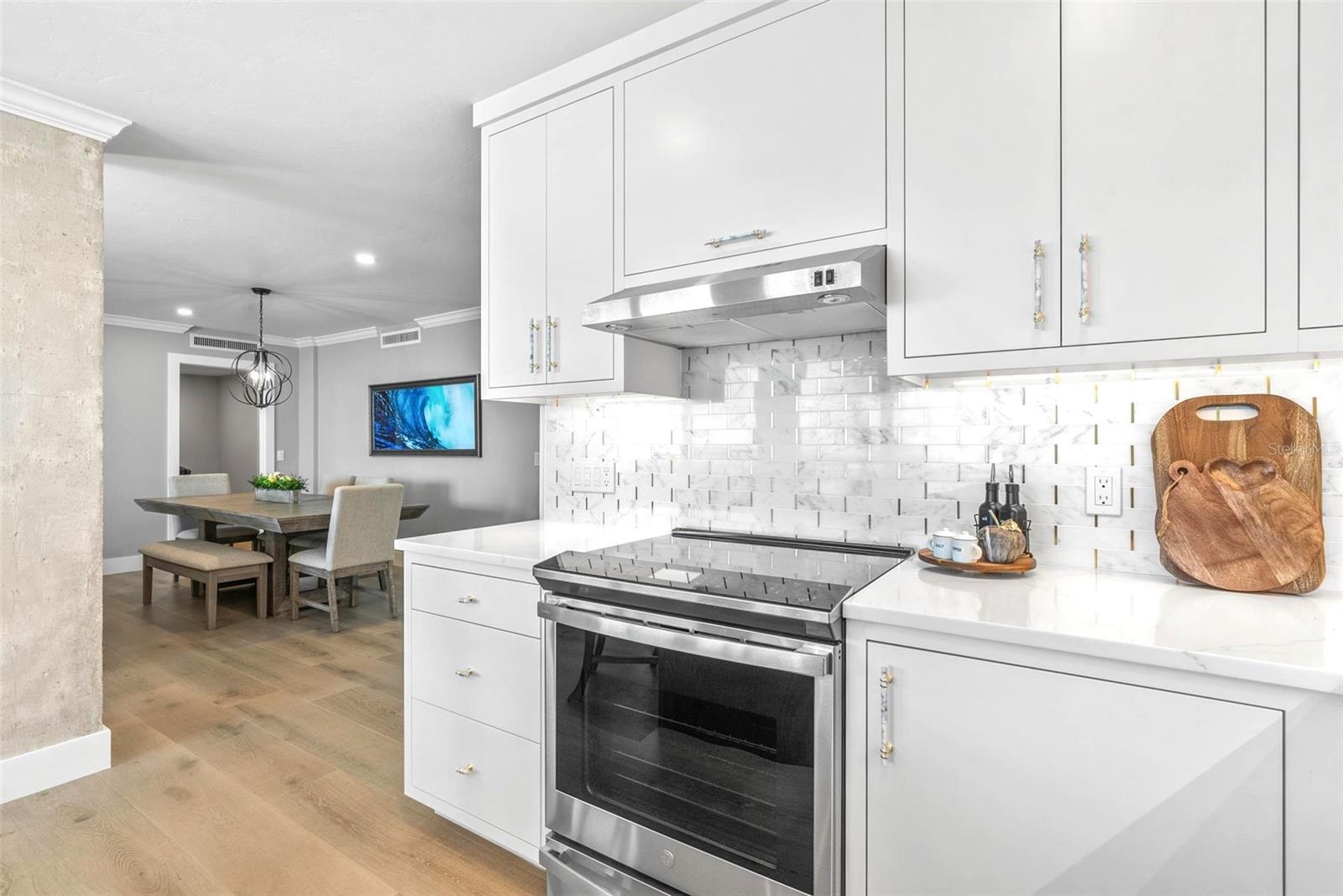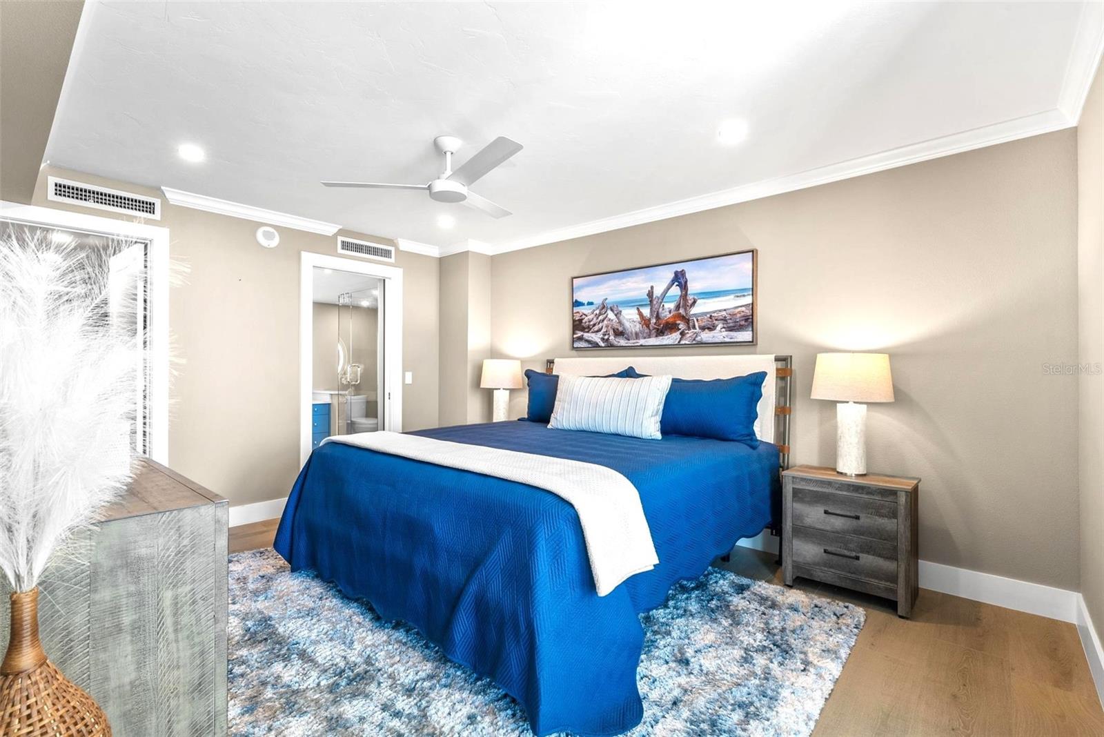 Welcome to Siesta Towers on Siesta Key, where breathtaking Gulf views meet luxurious modern living. Positioned high above on the 9th floor, this stunning 2-bedroom, 2-bath residence showcases sweeping vistas of the Gulf waters, Big Sarasota Pass, and Downtown Sarasota from its expansive private lanai. Completely remodeled with no expense speared, from the studs out in 2024. This 1,440 sq. ft. condo is brand new in every sense of the way. Updates include all new drywall, texture and paint, new plumbing, new electrical, new electrical panel, new hurricane-rated impact windows and sliding glass doors, new air conditioner, and a new hot water heater. Inside new high-end interior finishes, with no expense spared. The chef's inspired kitchen is equipped with custom cabinetry with soft close doors and drawers, beautiful quartz countertops, large island, undermount single bowl kitchen sink, designer tile backsplash, top-of-the-line GE stainless steel appliances, built-in island microwave, and a wine/beverage refrigerator. All new interior doors, closet doors, all new interior millwork to include crown molding, all new lighting and fixtures, new luxury vinyl flooring throughout. Beautifully re-designed bathrooms to include high-end porcelain tile, custom cabinetry with soft close doors and drawers, lighted mirrors, and glass enclosure showers, create a sophisticated yet inviting coastal ambiance. Also, a new in-unit full size washer & dryer with folding table, for ultimate convenience. This beautiful residence comes completely turnkey-furnished with designer-quality furnishings and carefully curated dcor, kitchenware, bedding, bathroom linens, and even high-end "Art Frame" TVs making it move-in ready for you to enjoy the Siesta Key lifestyle immediately. Siesta Towers itself has been thoughtfully updated throughout the building and grounds, offering resort-style amenities, including a state-of-the-art club room, fitness center, heated waterfront swimming pool, fishing pier, and a social pier perfect for sunset cocktails. Additional conveniences include storage room for beach equipment, bike storage and a very secure building environment. Whether you're seeking a full-time residence or a perfect beachside retreat, this pristine condo delivers the best of island living. Modern luxury, panoramic views, and resort-style amenities, all just minutes from the world-famous white sands of Siesta Beach. And with Siesta Key Village dining, shopping, and entertainment just a short walk away, this condo truly offers it all.