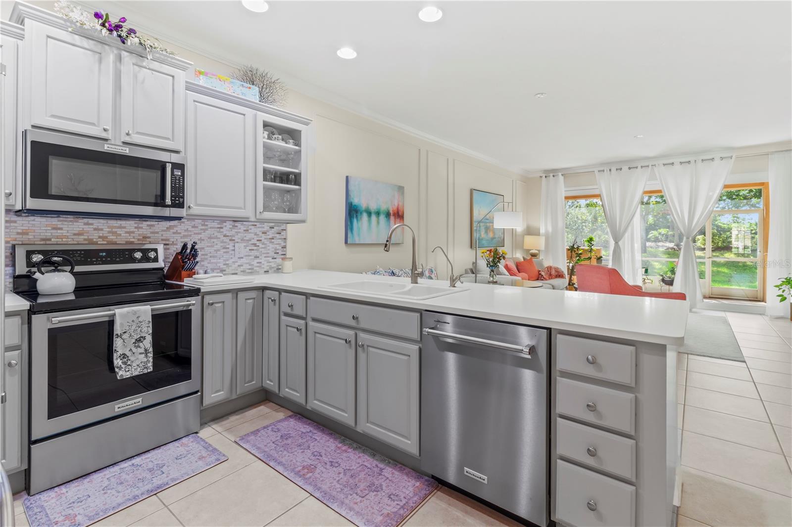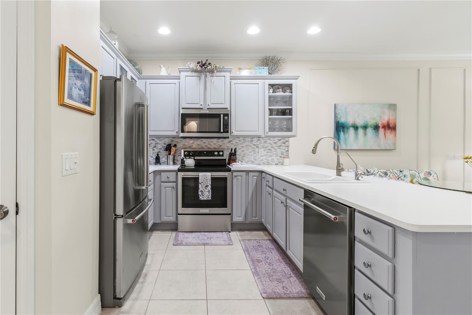 This beautifully updated modern villa is located in the highly sought-after Lexington Community in the rapidly growing Parrish area. This 2-bedroom, 2-bath villa offers a perfect blend of style and functionality.The kitchen has been thoughtfully updated with 2022 improvements, including sleek quartz countertops, a new backsplash, freshly painted wood cabinets with three glass-front panels, and brand-new KitchenAid appliances installed in July 2024.Additional standout features include custom hurricane-impact windows and sliding doors, installed in 2022, offering peace of mind, sound proofing and a transferable warranty.The spacious primary bedroom suite is a true retreat, with sliders leading to the private backyard lanai. The en-suite bathroom has a new shower enclosure, new dual sinks, faucets, and a quartz countertop. Other updates include the freshly painted primary bedroom & bath with a private toilet closet & whisper-quiet exhaust fan.The floor plan also includes a 2nd bedroom with a full-size closet and a hall bath with a tub/shower combo & an exhaust fan. The inviting living area features tile flooring, elegant crown molding, and a tall triple slider that fills the space with natural light. It opens to a newly painted double-screened lanai, complete with a knee wall and ready for grilling and entertaining.The well-maintained HVAC system, retractable front door screen, and newer water heater (2021) provide year-round comfort and efficiency. The interior laundry room includes a utility sink and ample space for a full-size washer and dryer.The epoxy-coated one-car garage offers plenty of storage space, along with electric garage door access.Included HOA Amenities: Come Splash, Play & Game On! - Community Pool, Playground & Sports Courts. All Conveniently located near Shopping, Ellenton Outlet Mall, Dining & Medical with easy access to St. Petersburg, Tampa, and Major highways I-75, I-275, and 301. Schedule your Appointment Today!!!! Buyer Bonus, the Seller has fully paid the CDD assessment.