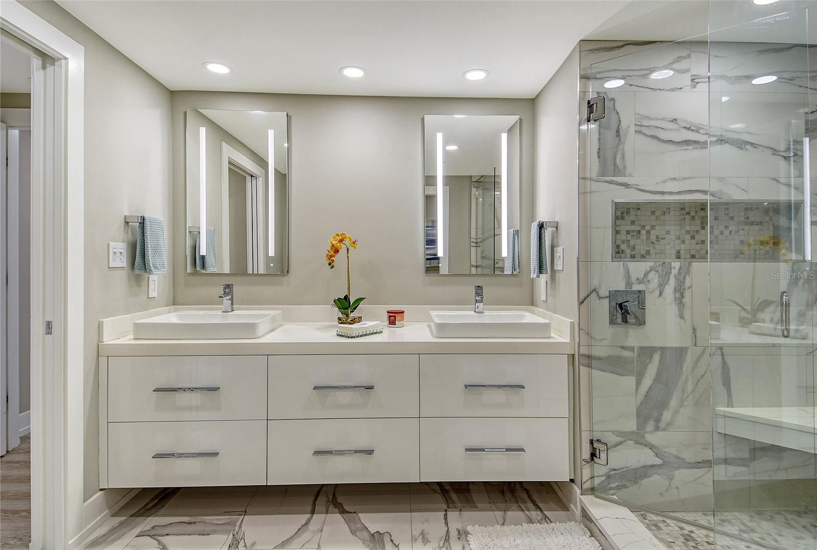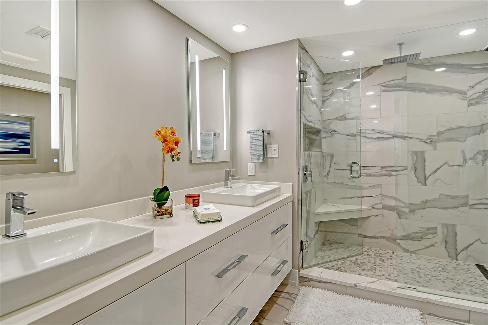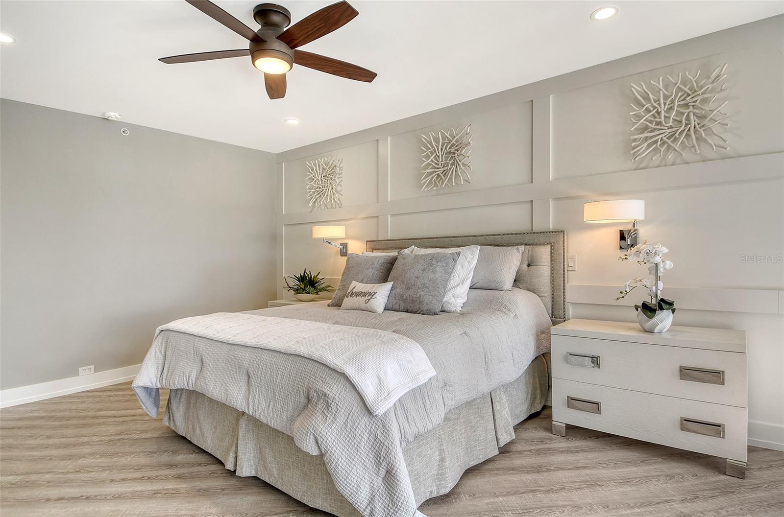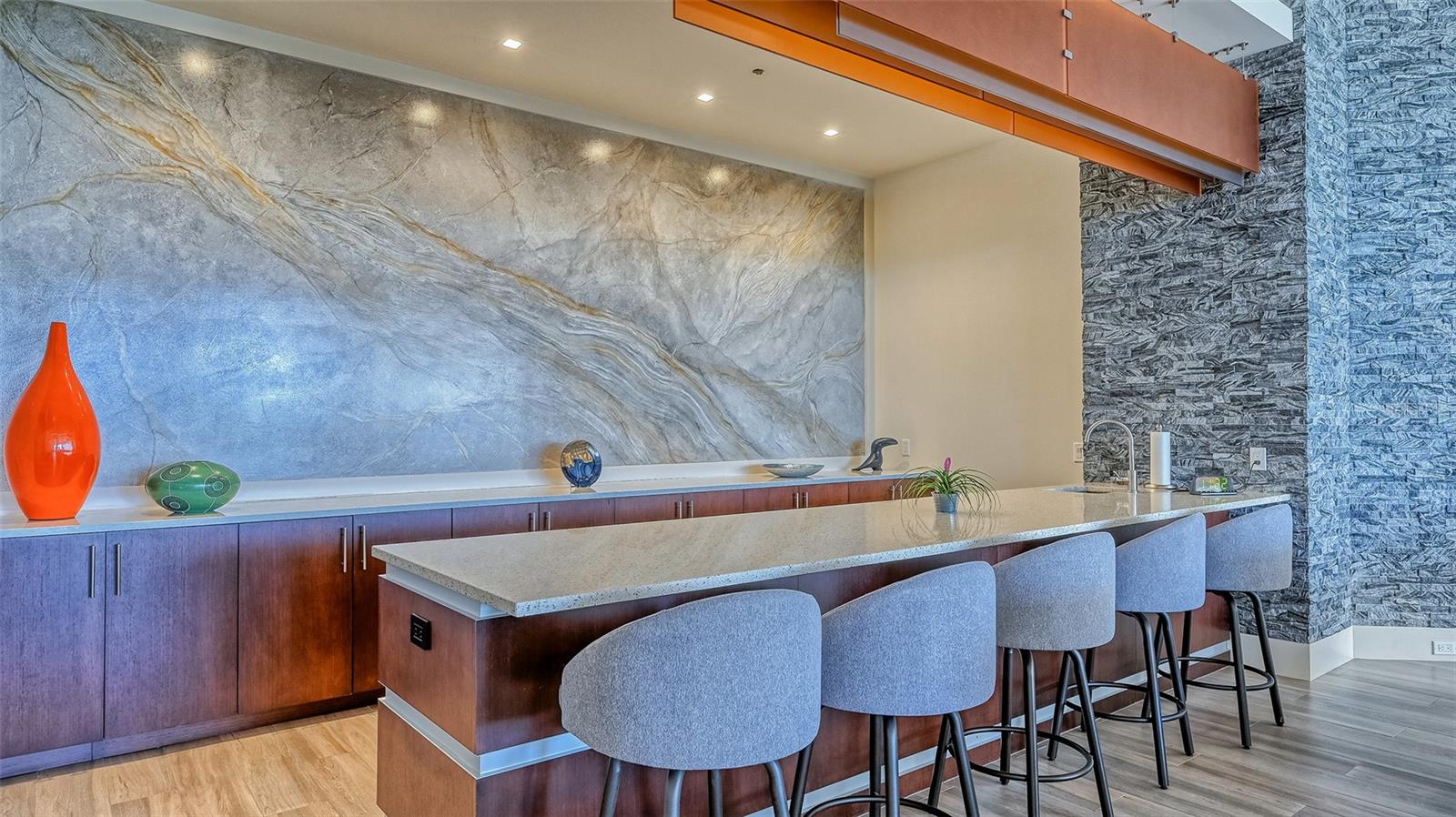 Experience the ultimate in Gulf-front living from this meticulously updated 1827 sq. ft. beach retreat located on the sunny southern side and offering peaceful Gulf and courtyard vistas. The open floor plan is perfectly suited for entertaining, seamlessly connecting the living and dining areas. A modern wet bar with sleek finishes and electric fireplace complements the cozy ambiance of the great room. Floor-to-ceiling glass sliders line the gorgeous interior, opening to a wraparound terrace that offers ocean views and extends to the kitchen and primary suite, creating seamless indoor-outdoor flow. The kitchen, renovated with quartz countertops and chic shaker-style cabinetry, offers plenty of storage, tile backsplash, and stainless-steel Bosch appliances, making it as functional as it is stylish. Overnight guests will appreciate the privacy afforded by the split-bedroom layout. Situated for optimal Gulf views, the primary suite is a peaceful retreat with direct terrace access, dual walk-in closets, and a built-in makeup vanity. The en-suite bathroom has been beautifully modernized with quartz countertops, a glass-enclosed shower with multiple shower heads, and a private water closet. The guest bedroom includes a walk-in closet and an updated bathroom with a floating vanity. Additional conveniences include one secure under-building parking space and a storage locker. The Promenade delivers unparalleled luxury with amenities designed to elevate everyday living. On-site management, a full-service concierge team, and secure lobby with a manned guard gate offer peace of mind and effortless convenience. Residents enjoy exclusive access to beautifully updated social rooms, and a fully equipped fitness center with sauna. Outdoor amenities include four Har-Tru tennis courts, a Gulfside sundeck, and an oversized heated swimming pool and spa. A private boardwalk leads directly to the sugar sand beach and azure waters of the Gulf of Mexico and complete this exceptional coastal experience.