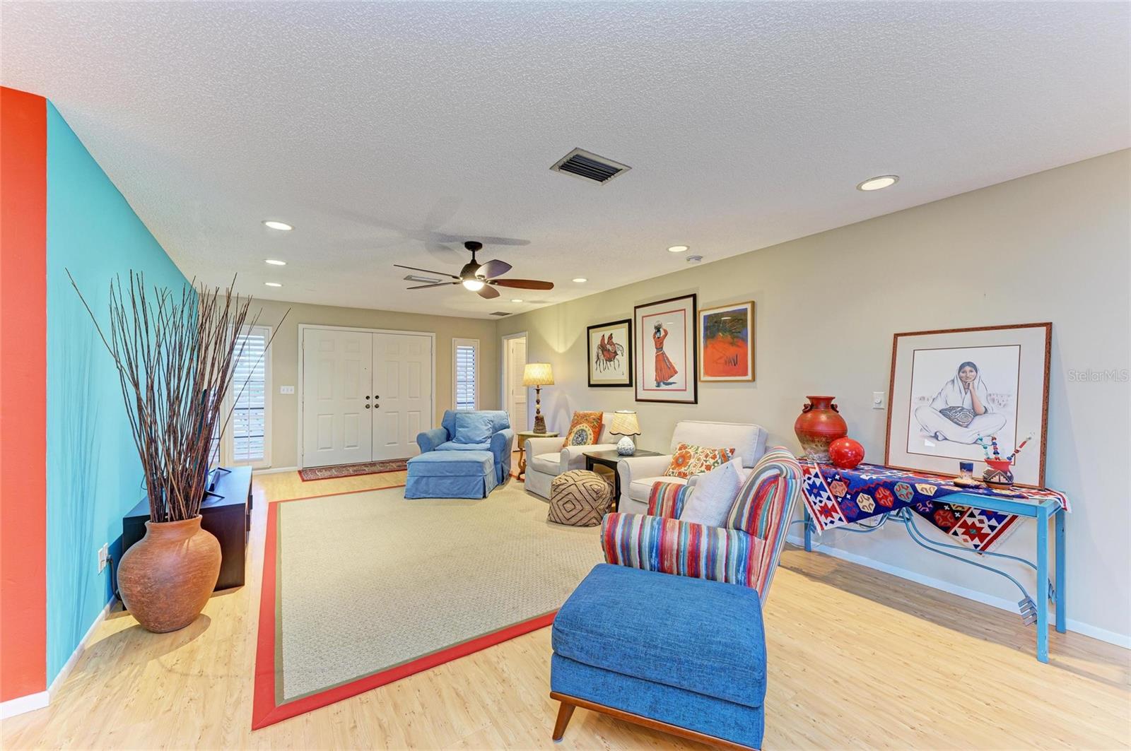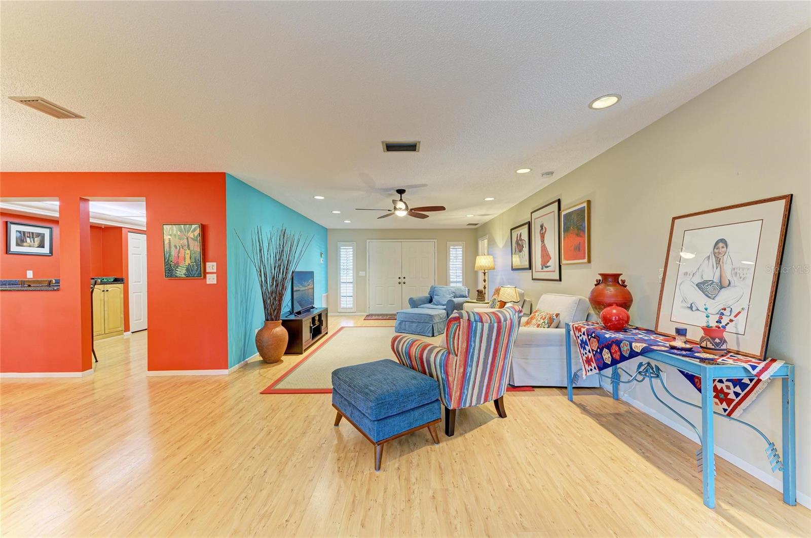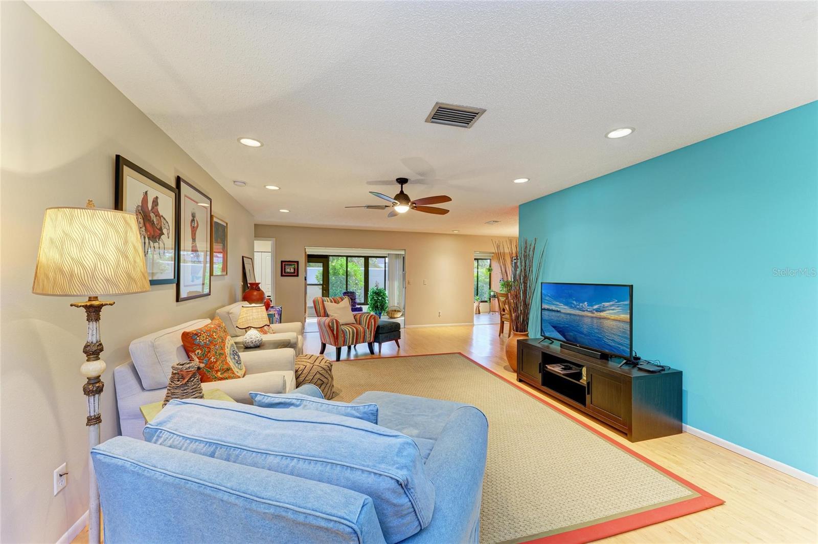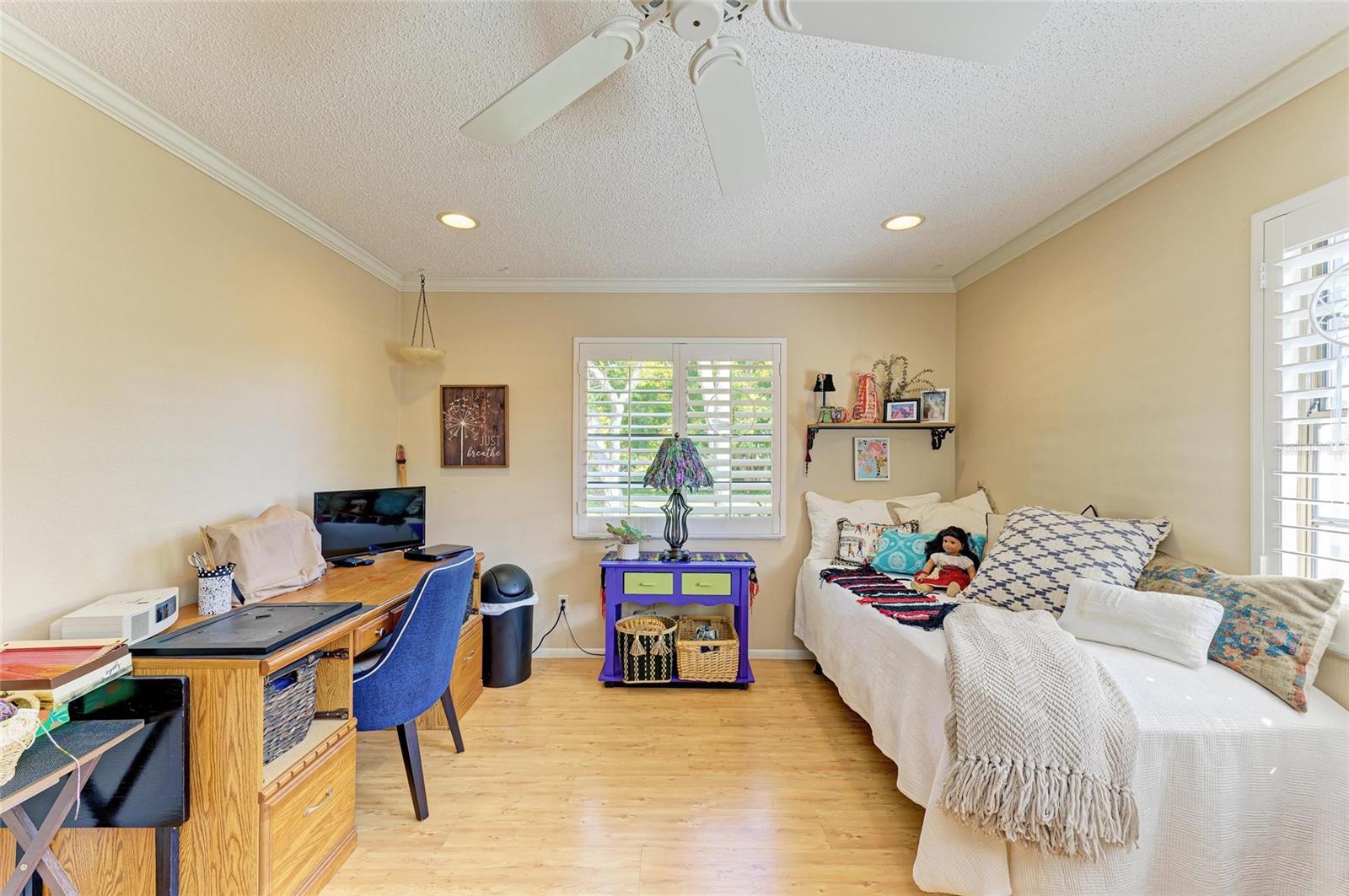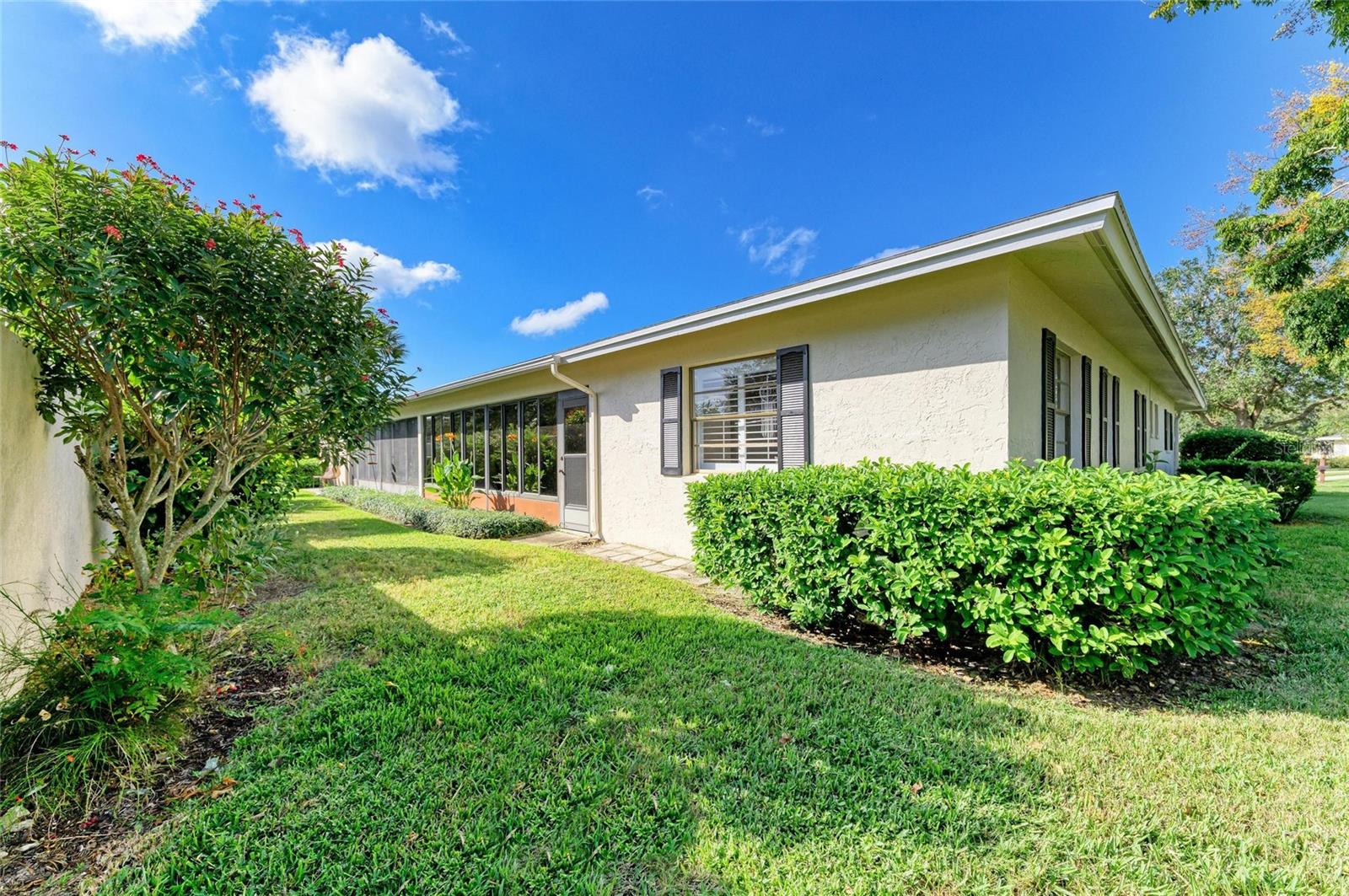 Welcome to maintenance-free living in the heart of Palm Aire! This beautifully turn-key furnished, updated 3-bedroom, 2-bath villa at 7087 Fairway Bend Circle is move-in ready and filled with natural light. The open floor plan features laminate flooring throughout, plantation shutters, and an inviting living space that flows seamlessly into the kitchen with solid surface counters and ample cabinetry. Both bathrooms have been tastefully updated, creating a clean, modern feel. Enjoy peaceful mornings on your private patio or take a short stroll to the community pool. Palm Aire Villas offers a relaxed Florida lifestyle with maintenance-free living, cable TV, and exterior upkeep included in the quarterly dues. Conveniently located near golf, shopping, dining, and just minutes to University Town Center and area beaches, this villa is the perfect blend of comfort and convenience!