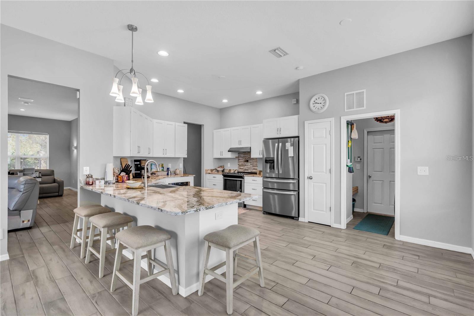 Beautifully Updated 3-Bedroom Pool Home in Kingsfield Lakes, Parrish, FLThis 3-bedroom, 2.5-bath pool home is located in the highly desirable Kingsfield Lakes community of Parrish. The home was freshly painted inside and out in April 2023 and received $5,000 in landscaping upgrades.Over $100,000 in updates completed within the last three years, including:Farbuwood solid wood kitchen cabinets with designer granite countertops, upgraded, chef-grade appliances, redesigned kitchen for wheelchair accessibility. Wood-look designer ceramic tile flooring throughout. New roof and HVAC system (less than 3 years old). Remodeled, wheelchair-accessible primary bath. New electric pool heater and all new screening. Interior features include high ceilings, a split floor plan, formal living and dining rooms, family room, and a den/office. The true 3-car garage offers ample space for storage. The Jack and Jill bath connects the guest bedrooms for convenience. The eat-in kitchen and breakfast bar provide an inviting space for casual dining. The home also features a central vacuum system, tinted windows, recessed lighting, glass front entry door, sliding doors to the lanai, grand foyer, and a large walk-in closet in the primary suite. Enjoy outdoor living in the screened-in heated pool with wheelchair ramp, vinyl privacy fence, half bath off the lanai, and spacious side yard, creating the perfect private oasis.Kingsfield Lakes offers excellent community amenities, including a heated pool, park, and playground. Conveniently located less than one mile to Publix, close to restaurants, 3 miles to the new Lowe's shopping center, and under 3 miles to the Ft. Hamer boat ramp and park.Furniture and electronics (under 2 years old) available separately.Prime Parrish location: less than an hour to Gulf beaches, boating and fishing, national sports venues, over 500 holes of golf, UTC Mall, Ellenton Premium Outlets, and top-rated schools and entertainment.Don't miss this opportunity to own one of the best-upgraded homes in Kingsfield Lakes!