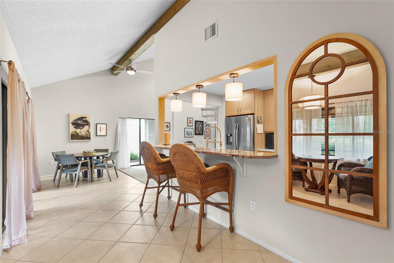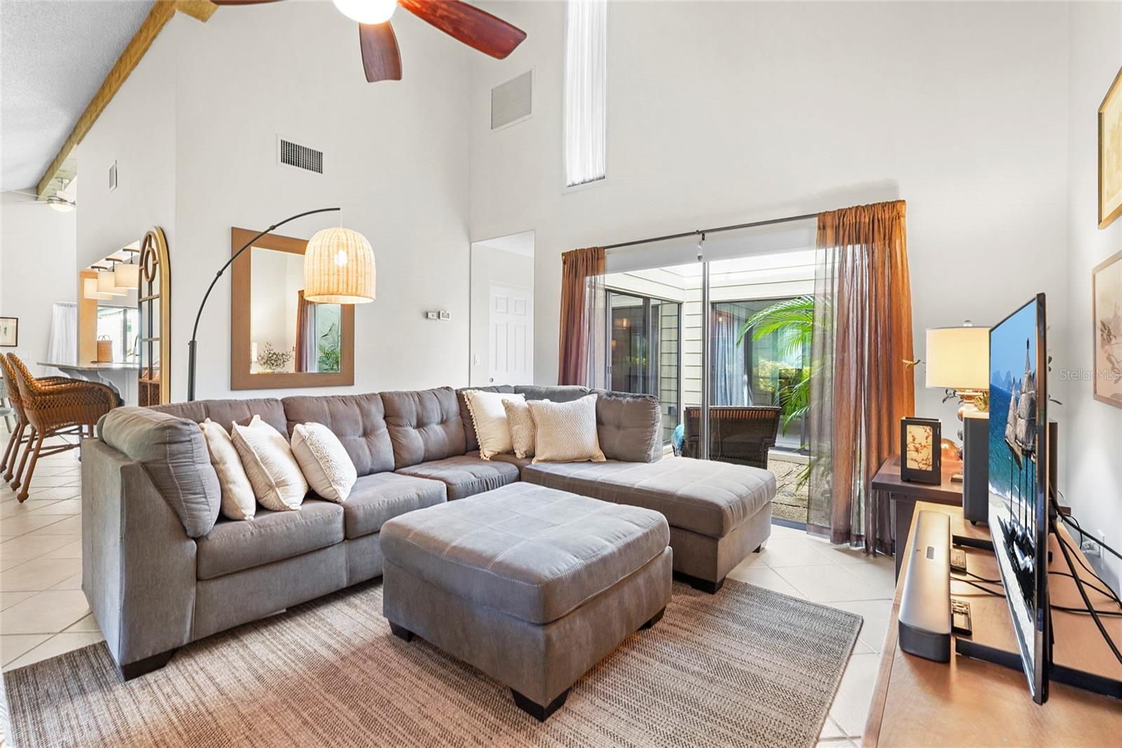 UPGRADED Villa in the HEART of Sarasota! Discover a villa that lives like a single-family home, located in the desirable Woodman's Chart enclave within The Meadows. Maintenance Free, NEW Roof 2024, Newer HVAC 2021, New Electrical Panel, New Kitchen Appliances and Washer/Dryer, updated bathrooms and light fixtures and Freshly Painted Interior and Exterior! This villa has no shared walls with the neighbors, and has an oversized 2 Car Garage. The open and airy living space boasts a beautiful wood accent wall as you enter the home, tile flooring throughout, a fabulous galley style kitchen with a large island featuring Quartz countertops, stainless steel appliances and a beautiful green tile backsplash bringing the beautiful Florida landscape inside! The space flows freely from the large living room with built-ins to the dining area, kitchen and family room - all with fabulous views of the lush landscape surrounding the home. Move right into this home and begin enjoying ample space with 1675 sf, 2 bedrooms, 2 baths, and a spiral staircase leading to a spacious loft, perfect for an office, den or additional sleeping quarters! The home has a modern feel with soaring vaulted ceilings, abundant skylights, plenty of natural light, landscaped atrium and four distinct outdoor living areas providing you with that true Florida charm! A split floor plan gives privacy to each bedroom. The primary bedroom features an ensuite bathroom, sliding glass doors to the atrium and high ceilings! Offering an exceptional blend of light, space, privacy, and comfort, this home has been meticulously maintained, loved and cared for. The oversized 2 Car Garage provides ample space for your vehicles, golf carts or motorcycle. Enjoy coffee or a cocktail on your large enclosed patio overlooking mature, tropical trees & foliage, while a lovely heated POOL awaits, just steps from your lanai. Living here merges resort-style amenities with Florida's outdoor lifestyle, homeowners can enjoy 14 miles of walking and biking trails winding through lush landscapes and lakes, over 85 lakes and waterways, bird watching with many species present, 3 golf courses, 15 tennis courts, pickleball, dog parks, a community pool & spa and the Meadows Country Club! HOA includes 24 Hour Security, Exterior Building Maintenance, 2 pools, tennis courts, irrigation, exterior insurance and more! The location truly cannot be beat as you are minutes from premiere shopping and dining at UTC Mall and the University Ave Corridor, a short drive to Lakewood Ranch, Waterside, SRQ Airport and of course some of the most stunning white sand beaches that make this place a true paradise!