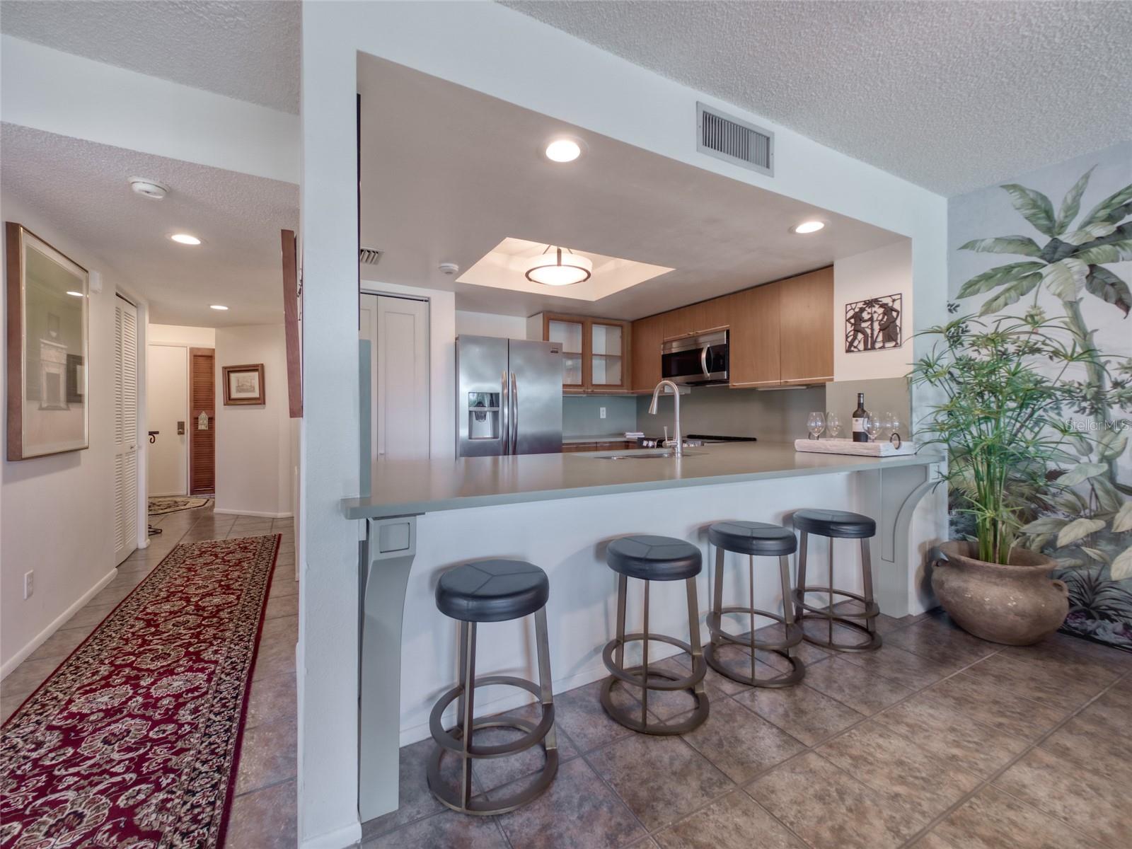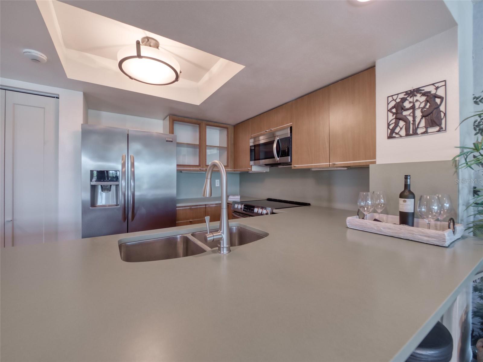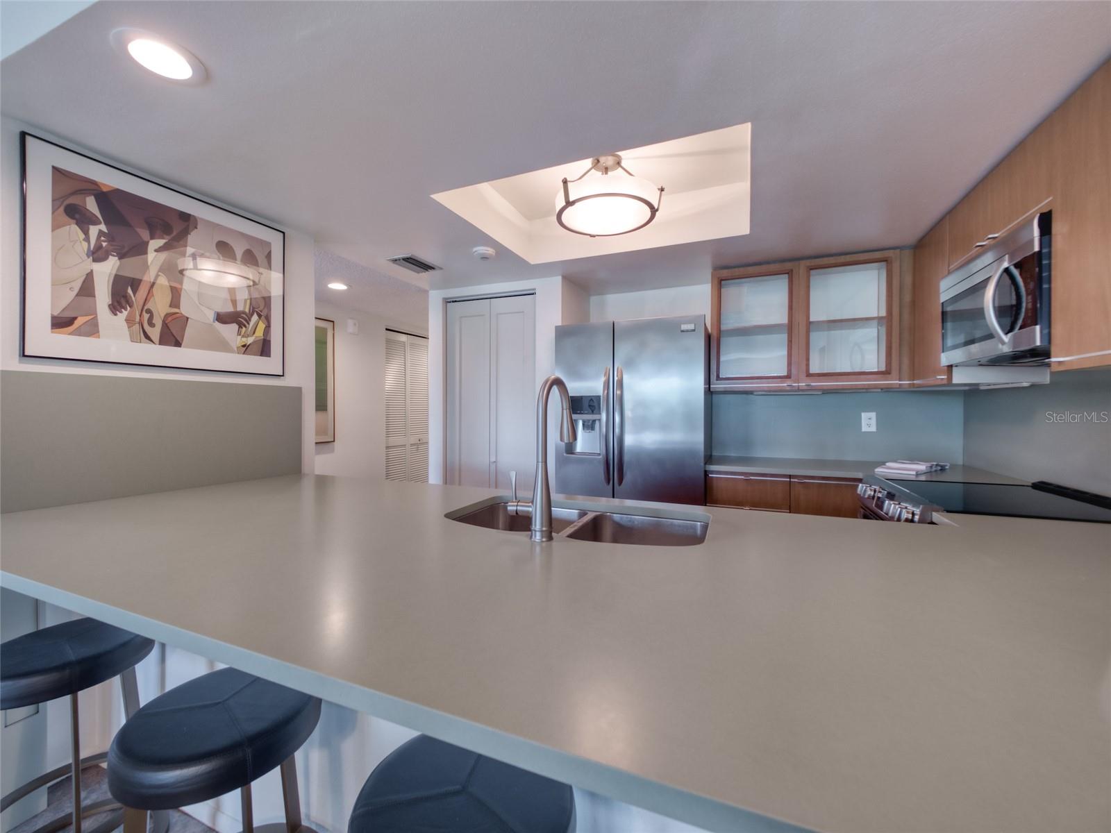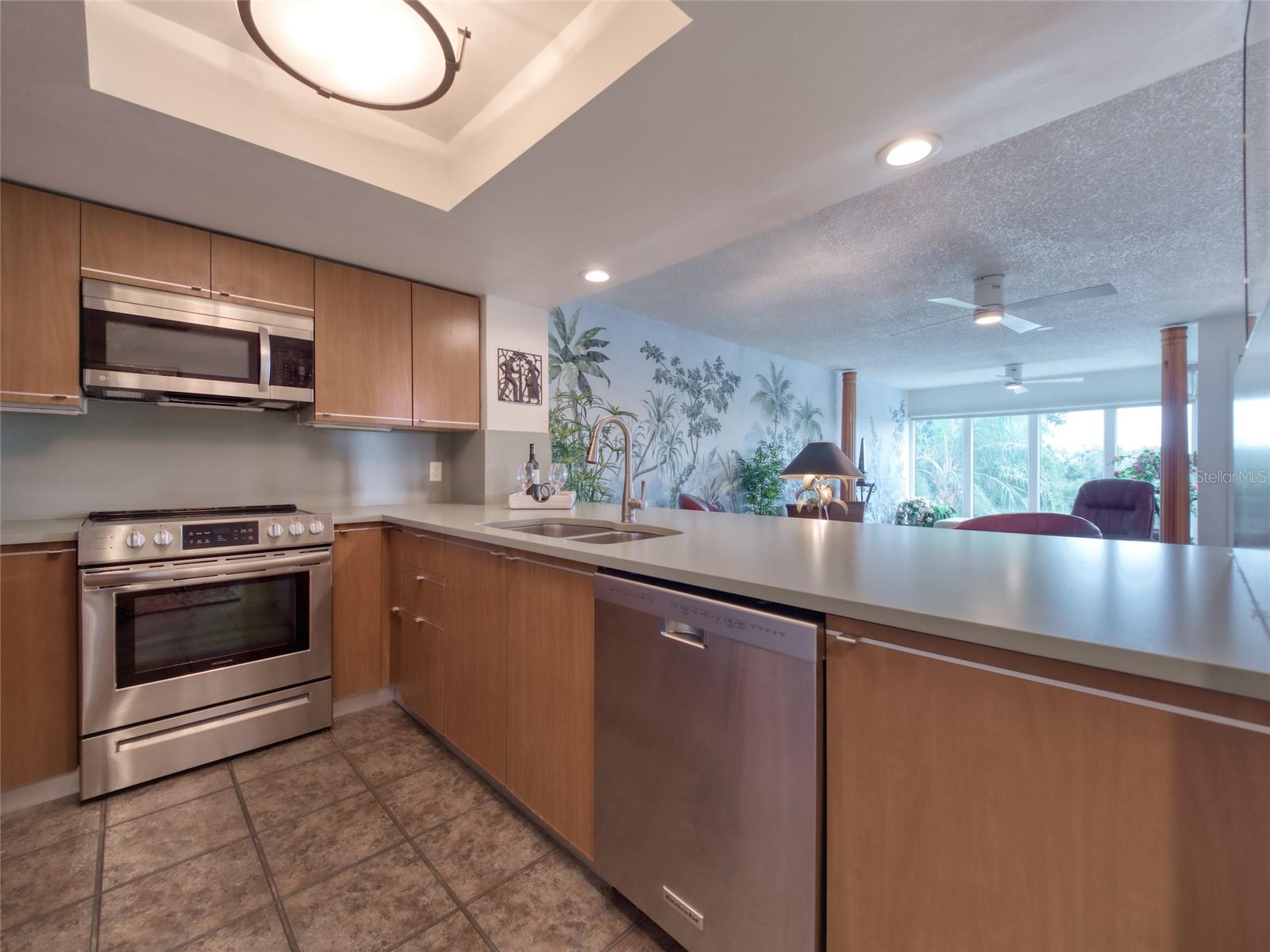 Welcome to Paradise! Central Park is a unique condominium community - conveniently located on 6 acres of beautifully landscaped grounds in the center of Sarasota. Residents have access to the waters of Hudson Bayou & Sarasota Bay. Exceptional Value! This Condo features 2 bedrooms & 2 bathrooms in 1,260sf. This exquisite residence has been METICULOUSLY REMODELED, stylishly well-appointed to provide a modern environment with classic charm. Enjoy a myriad of delightful upgrades - New Hurricane Rated Windows, Remodeled Kitchen, New HVAC System & Water Heater, remodeled Master Bathroom & Guest Bathroom, New Ceiling Fans, New Microwave, Stove & Washer/Dryer. Natural LIGHT!! Delight in an abundance of daily SUNLIGHT through LARGE WINDOWS & FRENCH DOORS! Two Private BALCONIES provide outdoor dining or relaxing options. Located on the 3rd Floor, just steps from the Elevator, you will enjoy EXPANSIVE VIEWS of lush trees, gardens, waterways & fountain. Main Living Room is Magnificent! A comfortable Living Area openly flows into a bright Sunroom (which can be used as a Dining Room). This room is surrounded by windows & offers access to the main Private Balcony. The modern Kitchen has been re-designed to feature a single-level Breakfast Bar, Quartz Countertops & Backsplash. Relax in the spacious & luxurious Primary Bedroom Suite, with sunny walls of French Doors & access to the private Balconies. The Primary Bathroom features a new step-in Shower, Double Sinks & Water Closet. The Laundry Closet is conveniently located in the hallway, leading to the Walk-In Closet. A private second Bedroom in the front of the unit provides sleeping space for your guests - or an office or TV room for your own use. A second Bathroom is accessible from the front hallway area. This unit conveys with a Designated Parking Space in the Garage & a Private Storage Space on the 1st Floor Level. The Central Park community features a private Boat Dock & Kayak Launch area for water sports enthusiasts & an Outdoor Pool to accommodate a daily swim. The PERFECT LOCATION! A short walk to Main Street Sarasota's fine dining restaurants, upscale shops and diverse cultural attractions - arts, music, theatre, museums & dance. Just minutes from Selby Gardens, St. Armands Circle as well as the extraordinary, nationally-acclaimed Gulf Beaches of Siesta Key, Lido Key & Longboat Key. A Dynamic & Rejuvenating Florida Lifestyle awaits - Experience the satisfaction of residing in a Prime Sarasota Location - featuring Refined Living Enhancements, Sunshine, Water Views & Daily Convenience.