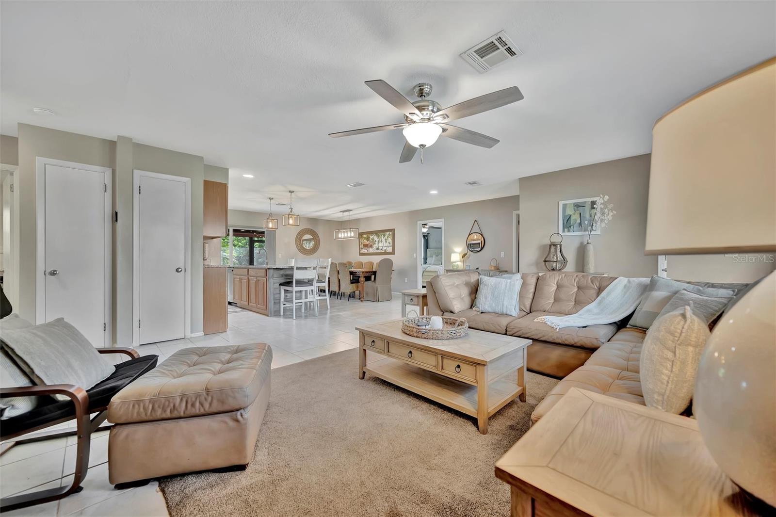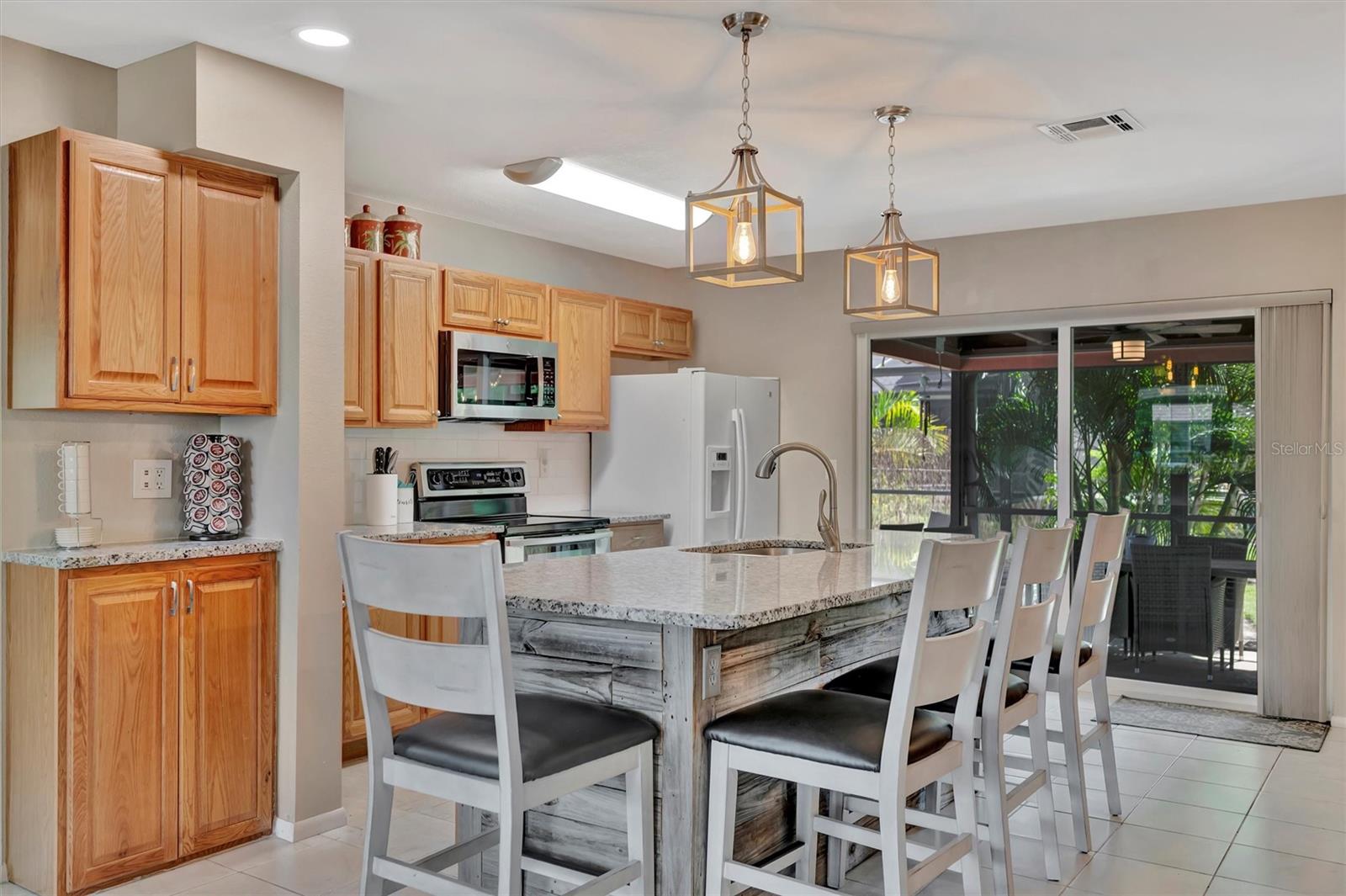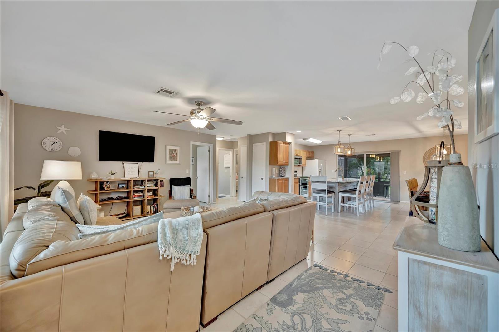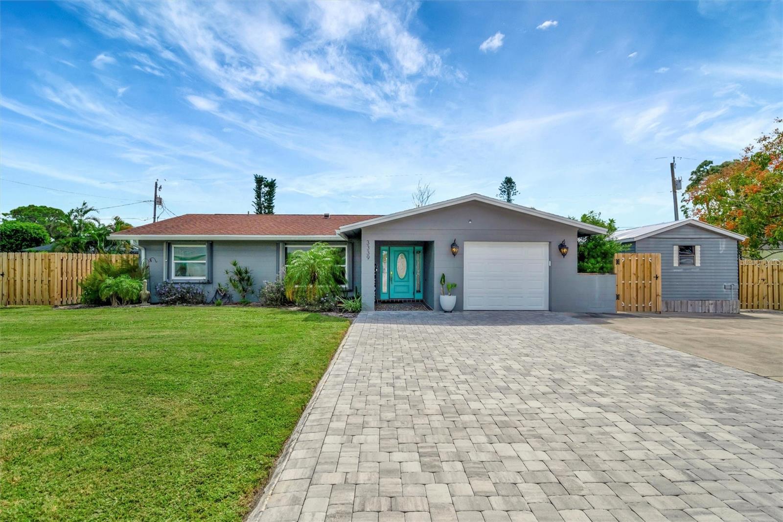 Enjoy the laid-back Florida lifestyle in this turnkey furnished South Venice POOL home on a rare triple lot! With plenty of room for your RV, boat, or extra vehicles, this 3-bedroom, 2-bathroom retreat has no HOA and sits in an X flood zone, so no flood insurance is required.Step inside this coastal-inspired home and discover a bright, open floor plan designed for entertaining. The spacious living room flows effortlessly into the dining area and updated kitchen, featuring wood cabinetry, granite countertops, and newer appliances. Just beyond the hurricane-impact sliding doors, you'll find your private oasis -- a huge screened-in, heated saltwater pool with a covered lanai perfect for outdoor dining and relaxation.The split floor plan offers privacy and comfort, with two guest bedrooms and a full bath on one side, and the primary suite on the other -- complete with a walk-in closet, en-suite bath with walk-in shower, and direct access to the pool area.Enjoy peace of mind with impact windows and doors, accordion shutters, a 2020 AC and ductwork replacement, newer pool heater, and a fully fenced backyard. A detached workshop with power adds even more versatility -- ideal for storage, hobbies, or your tools and toys.Ideally located within walking distance to Shamrock Park & Nature Center and just minutes from Downtown Venice, Gulf beaches, and the South Venice Boat Ramp & Ferry, where residents can access a private beach through an optional membership -- this home truly captures the best of coastal Florida living.Sold turnkey furnished -- just bring your suitcase and start enjoying paradise!