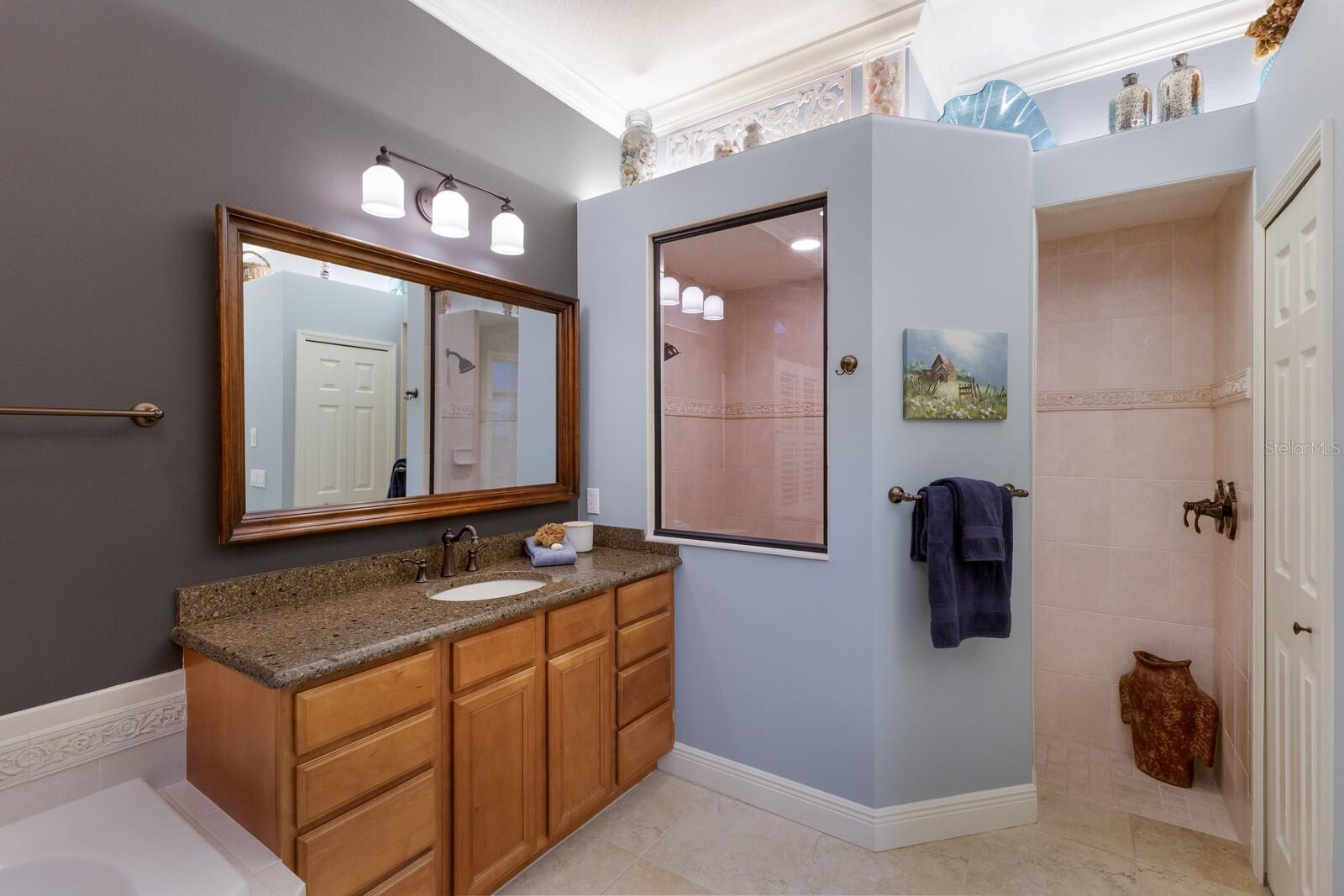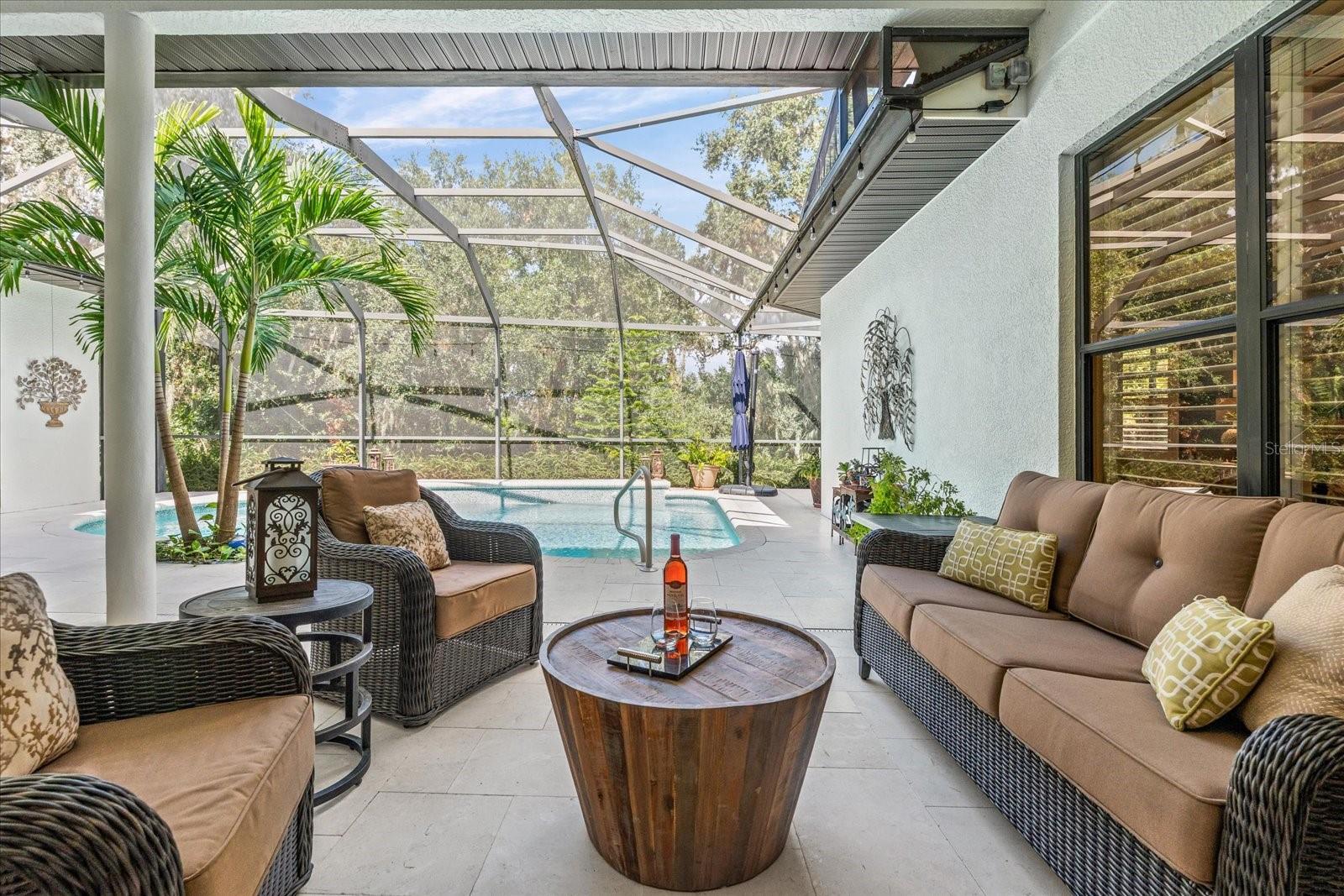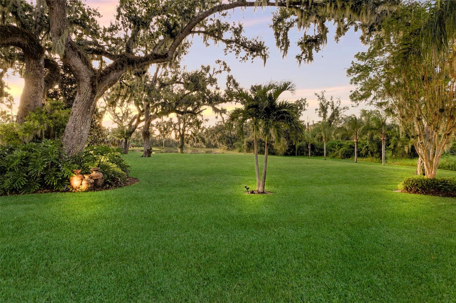 Highly sought-after Twin Rivers is where you'll find this stunning, custom-built Mark Cahill home -- perfectly positioned in a serene, park-like setting surrounded by majestic oaks, swaying palms, and lush lawns. This immaculately maintained residence blends timeless craftsmanship with thoughtful recent upgrades and incredible 'Old Florida' curb appeal.Step through the beautiful glass double doors into the inviting foyer and take in the open, well-designed floor plan. Beyond the wall of disappearing sliders, the private lanai and refreshed pool and decking create a true outdoor oasis framed by the tranquil natural preserve.Boasting 3,235 sq. ft. of living space, the home includes three bedrooms, three full baths, a spacious great room that flows effortlessly into the kitchen and pool areas, a formal living and dining room, and a dedicated office/den with French doors and built-in shelving -- ideal for working from home or nursery. The chef's kitchen is a showstopper -- complete with double ovens, two prep sinks with disposals, granite counters, abundant 42" solid wood cabinetry with crown molding, a separate pantry, and a butler's pantry with glass-front display cabinets. Ample natural light pours in from solar tubes, while under- and over-cabinet lighting enhances both style and function.The split bedroom floor plan ensures privacy for everyone. The luxurious primary suite offers his-and-her walk-in closets, plantation shutters, dual vanities, an oversized jetted soaking tub, and a fully tiled walk-in shower "room" with dual shower heads. The en-suite guest bedroom features its own large tiled shower and walk-in closet -- perfect for extended stays.Throughout the home, you'll find 6" crown molding and baseboards, upgraded lighting and ceiling fans, complete interior painting including ceilings, and updated fixtures that give the entire home a fresh, sophisticated feel.Outdoor living shines on the private, screened lanai -- perfect for lounging by the sparkling pool, entertaining, or relaxing under the caf lighting that adds a touch of evening magic.A new (2023) 5V painted metal roof crowns the home for years of beauty and durability.Garages & Storage-Main home: Oversized 612 sq. ft. two-car garage with tall ceilings and built-in storage.Detached garage: Additional 550 sq. ft. air-conditioned two-car garage ideal for hobby space, vehicles, or workshop use -- both with pull-down attic storage. And a wide, paver driveway provides ample parking for guests.Additional Opportunity-An adjacent premium lakeside lot is also available under separate contract -- ideal for additional privacy or future investment.Community Highlights-Residents enjoy a fishing dock, kayak/canoe launch, playground, basketball and volleyball courts, soccer field, and scenic walk/bike/golf cart-friendly streets throughout this beautiful Twin Rivers community.