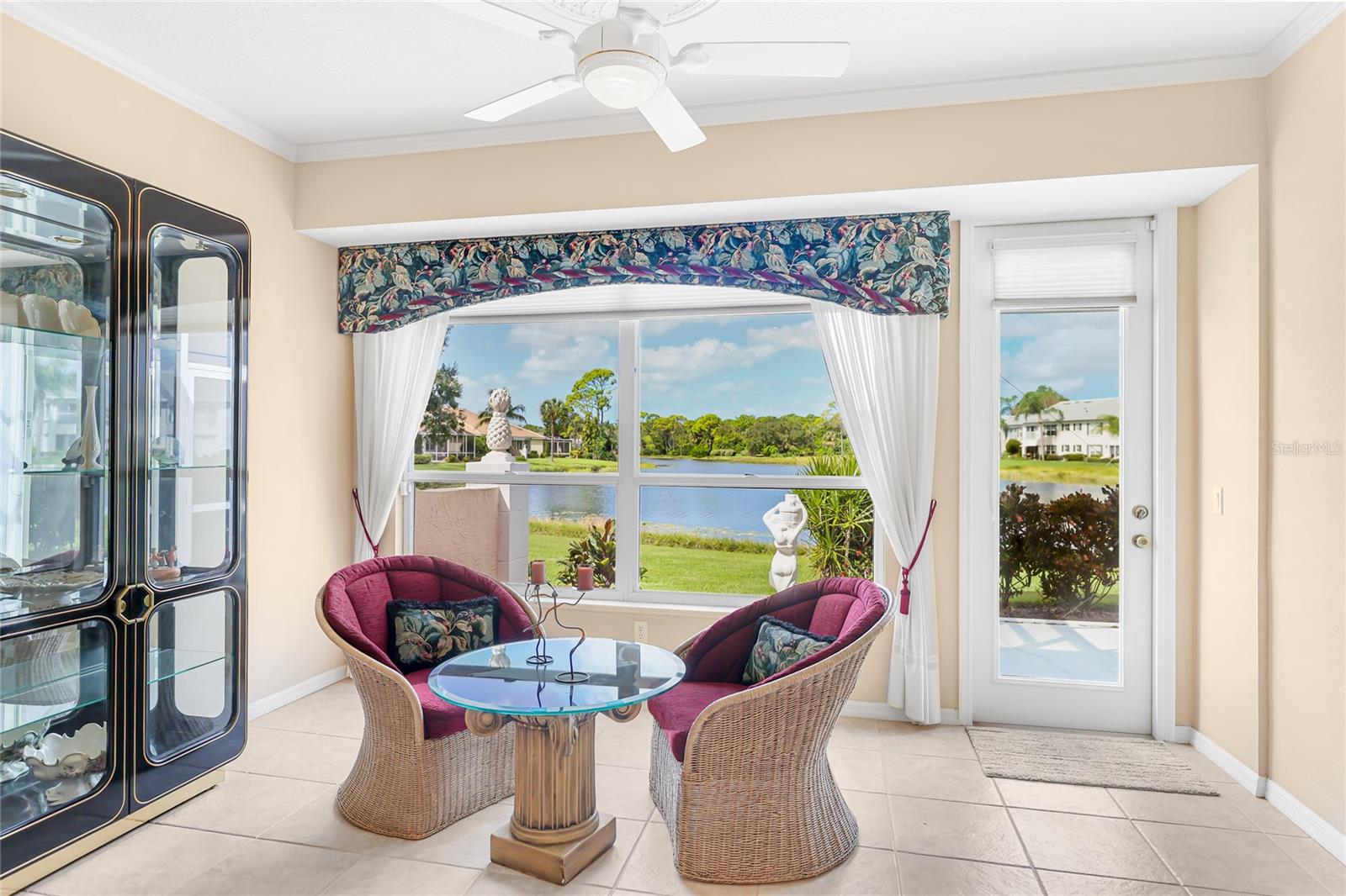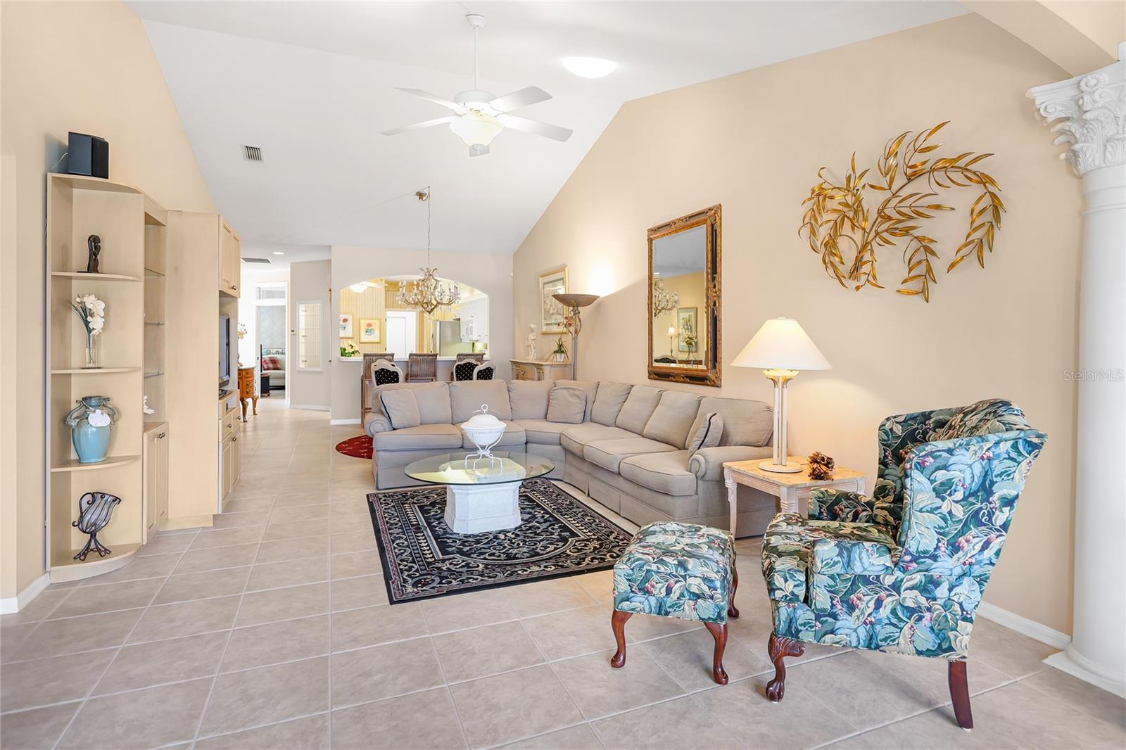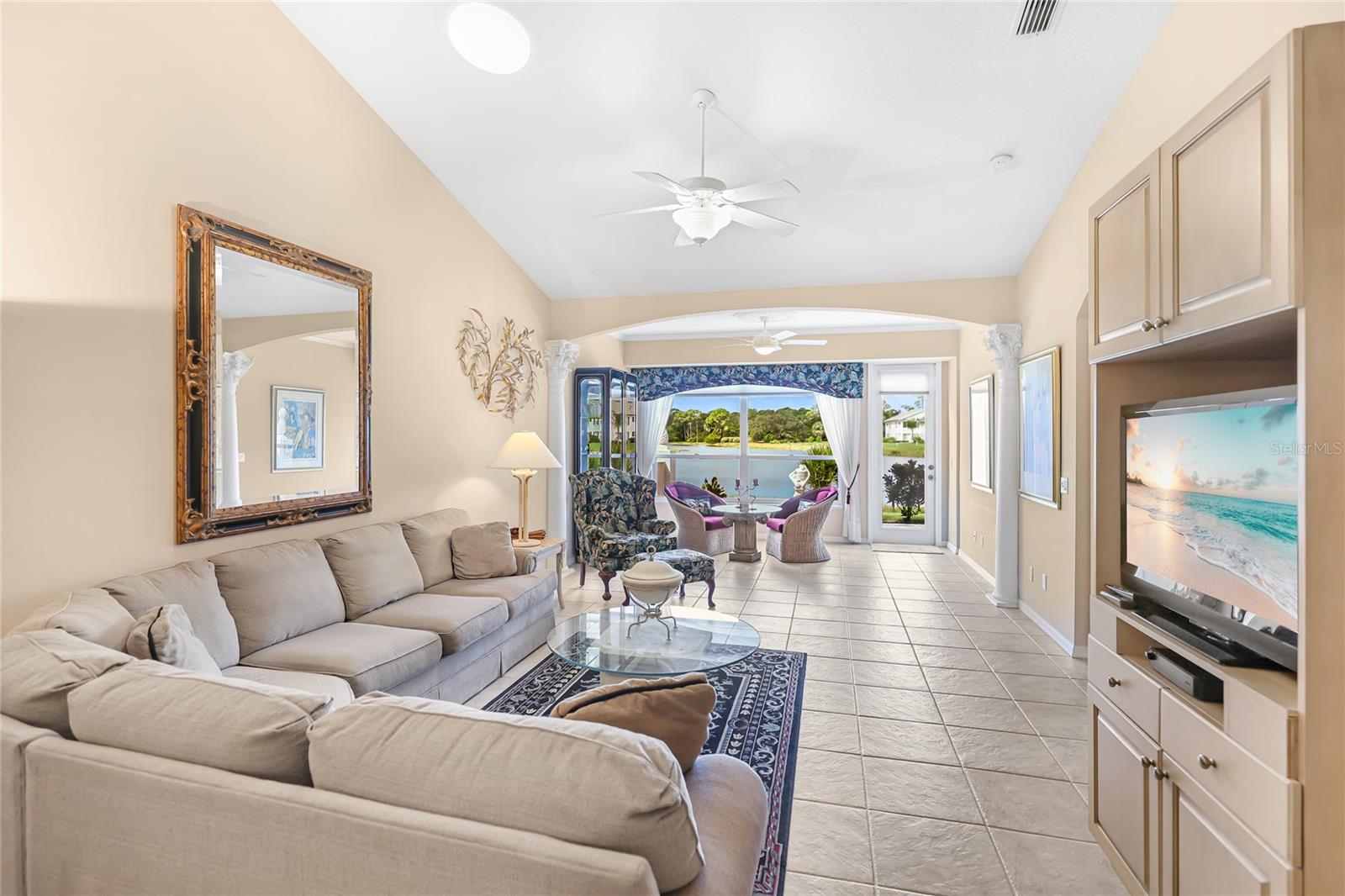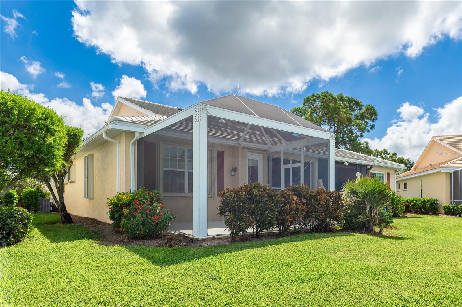 Live the relaxed Southwest Florida lifestyle in this impeccably maintained villa tucked within the sought-after St. Andrews Park at Plantation Golf & Country Club. Offered furnished for a complete move-in-ready experience, it's ideal for seasonal escapes or year-round comfort. Set on a peaceful lakefront lot, this two-bedroom, two-bath home with a versatile den and two-car garage offers an inviting blend of space, style, and serenity. The open layout flows easily from the kitchen to the living and dining areas, perfect for entertaining or quiet evenings at home. The kitchen features crisp white cabinetry, under-cabinet lighting, and a breakfast bar, while architectural details such as arched openings, glass block accents, and built-in display niches add character throughout. Natural light streams in through two skylights and large windows overlooking the lake, filling the villa with a soft, welcoming glow. The primary suite includes a walk-in shower, soaking tub, and generous vanity. Updates provide added peace of mind with a 2023 roof, HVAC system, washer, dryer, and refrigerator, along with hurricane protection on all windows and doors. Unwind on the screened lanai and take in tranquil water views, or enjoy one of three community pools, with one just steps away. Optional membership at Plantation Golf & Country Club opens the door to golf, tennis, pickleball, bocce, fitness, and social activities. Located just minutes from Gulf beaches, shopping, dining, and CoolToday Park, this villa combines comfort, convenience, and classic Florida charm in one inviting package. **THIS PROPERTY QUALIFIES FOR A 1% LENDER INCENTIVE IF USING PREFERRED LENDER. INQUIRE FOR MORE DETAILS.**