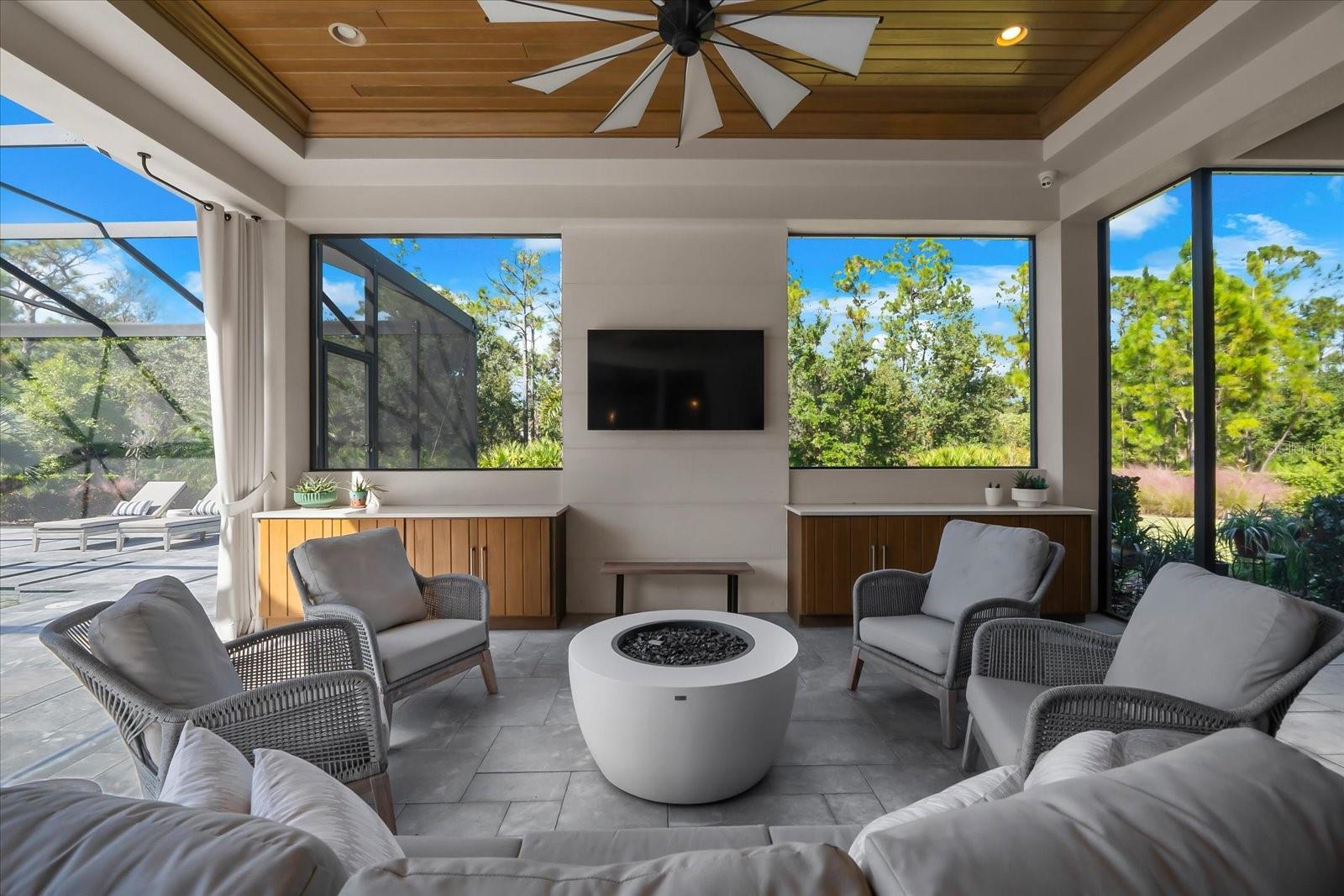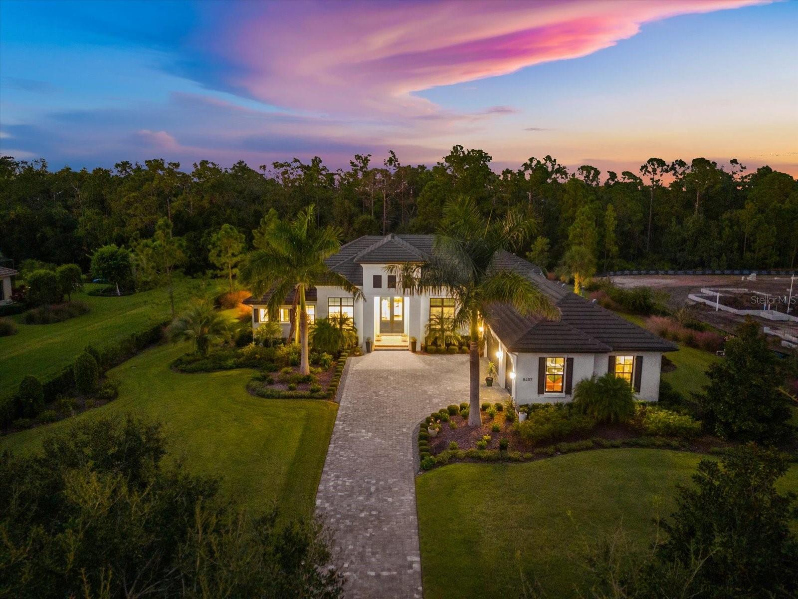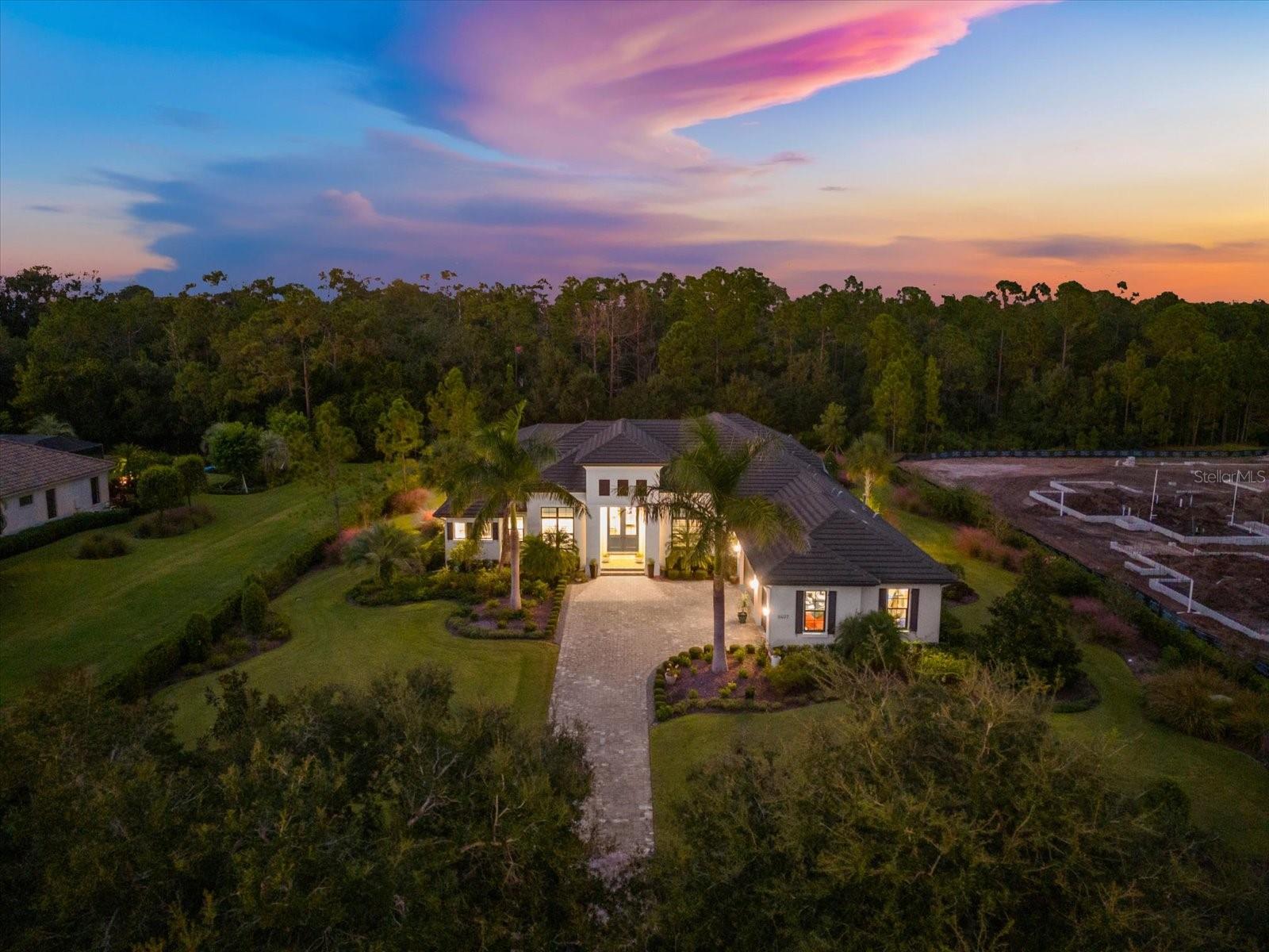 A Rare Opportunity in The Concession - Former Anchor Builders Model. Why wait to build when you can move right into this award-winning, professionally decorated and fully furnished former model home? Winner of the 2021 Parade of Homes for Best Overall Home and Certified Green Home, this Anchor Builders' masterpiece blends the highest level of quality and timeless craftsmanship with modern luxury, all set on a private one-acre homesite in the prestigious Concession. From the moment you arrive, the grand driveway and stone-columned entry create an unforgettable first impression. Step inside to soaring ceilings, walls of impact glass, oak floors, and architectural details that showcase the extraordinary level of finish. At the heart of the home, an open great room with a dramatic stone fireplace flows seamlessly into the chef's kitchen equipped with Sub-Zero, Wolf, and Cove appliances, quartz counters, a large center island, raised panel custom cabinetry, and butler's pantry. Every detail is designed for entertaining and effortless living. Relax in the primary suite, a spa-like retreat featuring a stand-alone tub, oversized shower, dual vanities with custom cabinetry, two walk-in closets with built-ins, and serene pool views. Three additional en-suite bedrooms each offer their own private sanctuary, complete with designer bathrooms and walk-in closets with custom shelving. Work from home in the office/den, complete with custom built-in shelves and a desk, offering both functionality and elegance. A versatile bonus room serves as a favorite gathering spot, with corner sliding doors that open to the outdoor lanai, perfect for entertainment, media, or play. But the true showstopper is outside. The expansive lanai is a resort all its own, complete with outdoor kitchen, fire pit, cypress wood ceilings, custom cypress cabinetry, leathered marble pavers, saltwater pool with sun shelf, and spa. Imagine evenings by the fire, weekend gatherings around the grill, and quiet mornings overlooking your private, wooded view. Smart home technology, energy-efficient insulation, custom window treatments, plantation shutters, and even a climate-controlled interior storage room ensure this residence is as functional as it is beautiful. Exquisite and meticulously maintained, this home enjoys an ideal location within The Concession, a gated community known for its privacy, serene natural beauty, and spacious estate homesites. Meticulously maintained and elegantly furnished, this is more than a home, it's a statement of style, comfort, and luxury. Few properties offer this level of design, privacy, and lifestyle. Opportunities of this caliber within The Concession are exceedingly rare; experience a residence that truly stands apart.