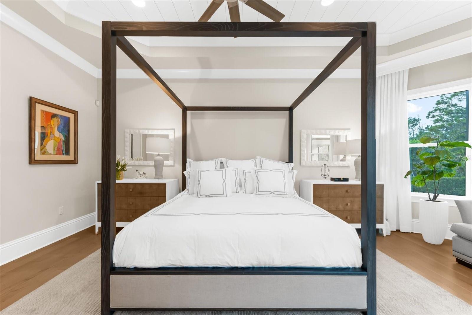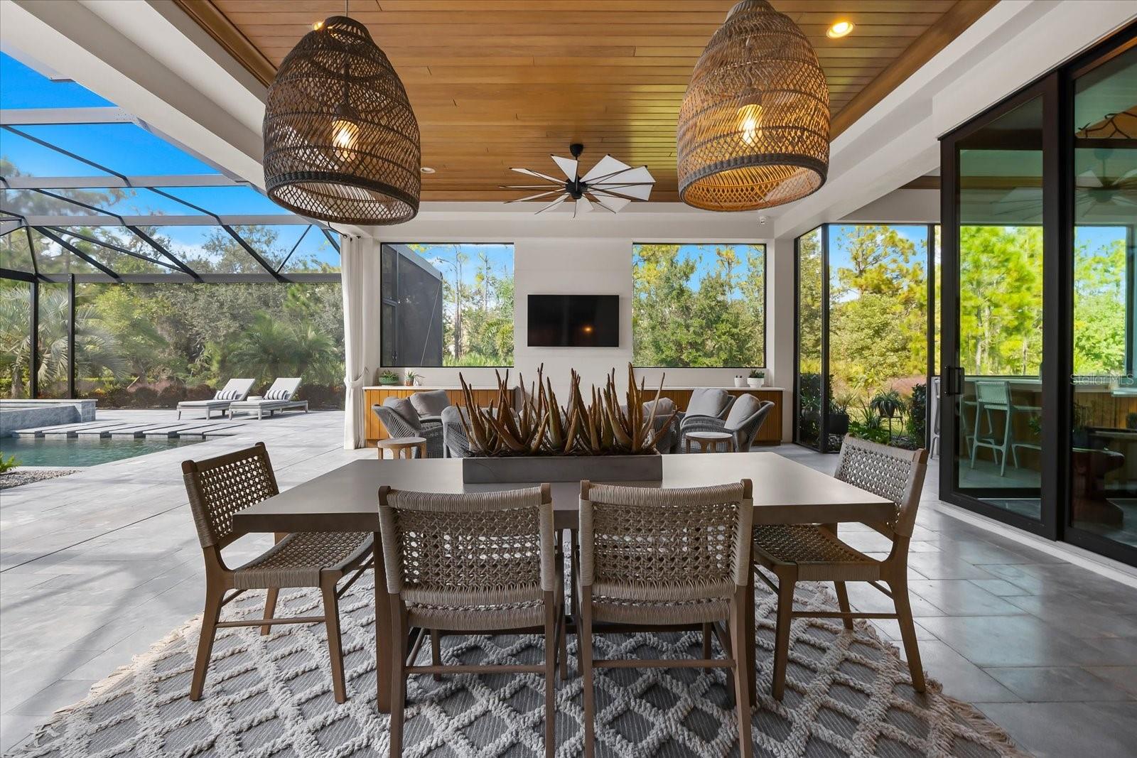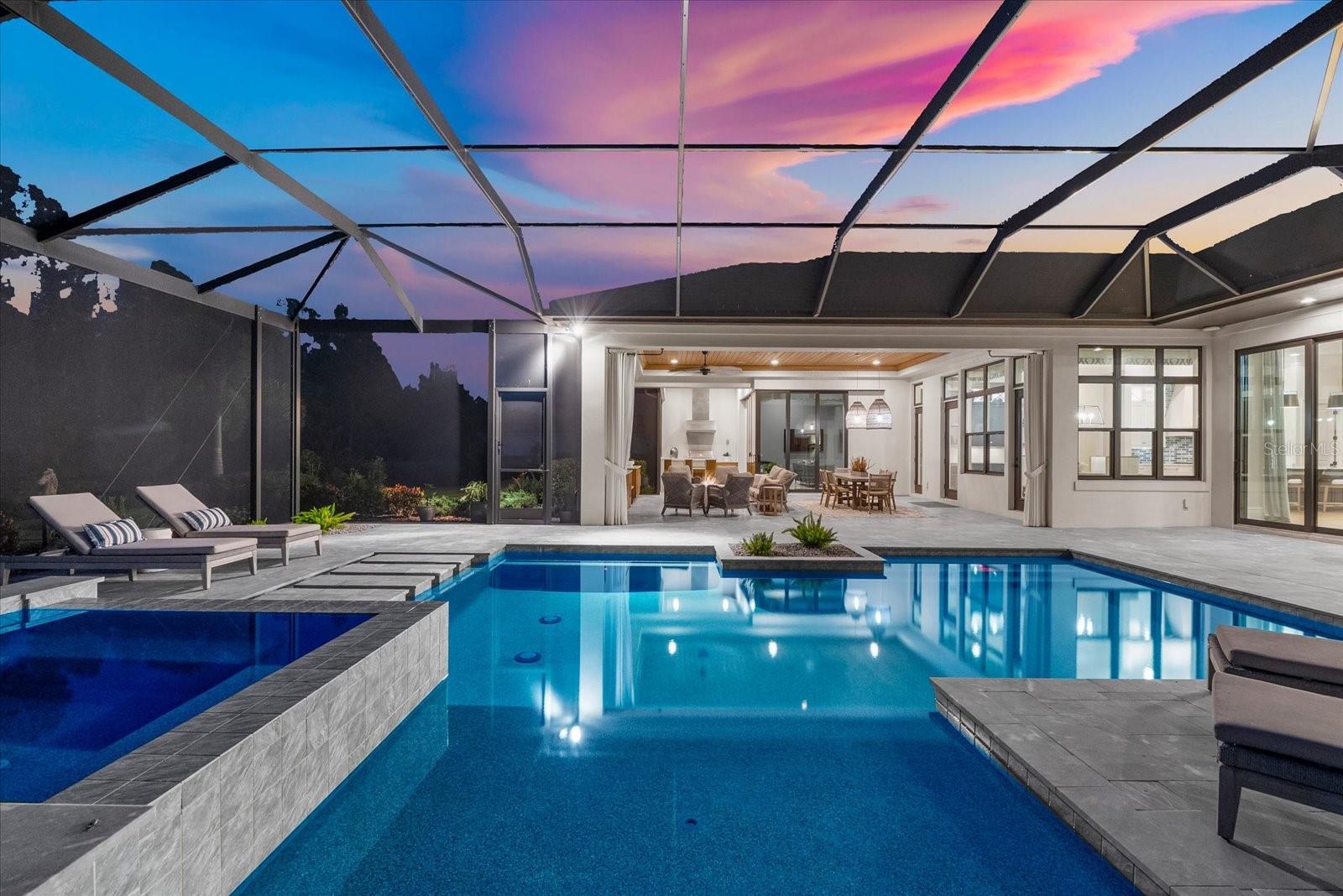A Rare Opportunity in The Concession - Former Anchor Builders Model. Why wait to build when you can move right into this award-winning, professionally decorated and fully furnished former model home? Winner of the 2021 Parade of Homes for Best Overall Home and Certified Green Home, this Anchor Builders' masterpiece blends the highest level of quality and timeless craftsmanship with modern luxury, all set on a private one-acre homesite in the prestigious Concession. From the moment you arrive, the grand driveway and stone-columned entry create an unforgettable first impression. Step inside to soaring ceilings, walls of impact glass, oak floors, and architectural details that showcase the extraordinary level of finish. At the heart of the home, an open great room with a dramatic stone fireplace flows seamlessly into the chef's kitchen equipped with Sub-Zero, Wolf, and Cove appliances, quartz counters, a large center island, raised panel custom cabinetry, and butler's pantry. Every detail is designed for entertaining and effortless living. Relax in the primary suite, a spa-like retreat featuring a stand-alone tub, oversized shower, dual vanities with custom cabinetry, two walk-in closets with built-ins, and serene pool views. Three additional en-suite bedrooms each offer their own private sanctuary, complete with designer bathrooms and walk-in closets with custom shelving. Work from home in the office/den, complete with custom built-in shelves and a desk, offering both functionality and elegance. A versatile bonus room serves as a favorite gathering spot, with corner sliding doors that open to the outdoor lanai, perfect for entertainment, media, or play. But the true showstopper is outside. The expansive lanai is a resort all its own, complete with outdoor kitchen, fire pit, cypress wood ceilings, custom cypress cabinetry, leathered marble pavers, saltwater pool with sun shelf, and spa. Imagine evenings by the fire, weekend gatherings around the grill, and quiet mornings overlooking your private, wooded view. Smart home technology, energy-efficient insulation, custom window treatments, plantation shutters, and even a climate-controlled interior storage room ensure this residence is as functional as it is beautiful. Exquisite and meticulously maintained, this home enjoys an ideal location within The Concession, a gated community known for its privacy, serene natural beauty, and spacious estate homesites. Meticulously maintained and elegantly furnished, this is more than a home, it's a statement of style, comfort, and luxury. Few properties offer this level of design, privacy, and lifestyle. Opportunities of this caliber within The Concession are exceedingly rare; experience a residence that truly stands apart.