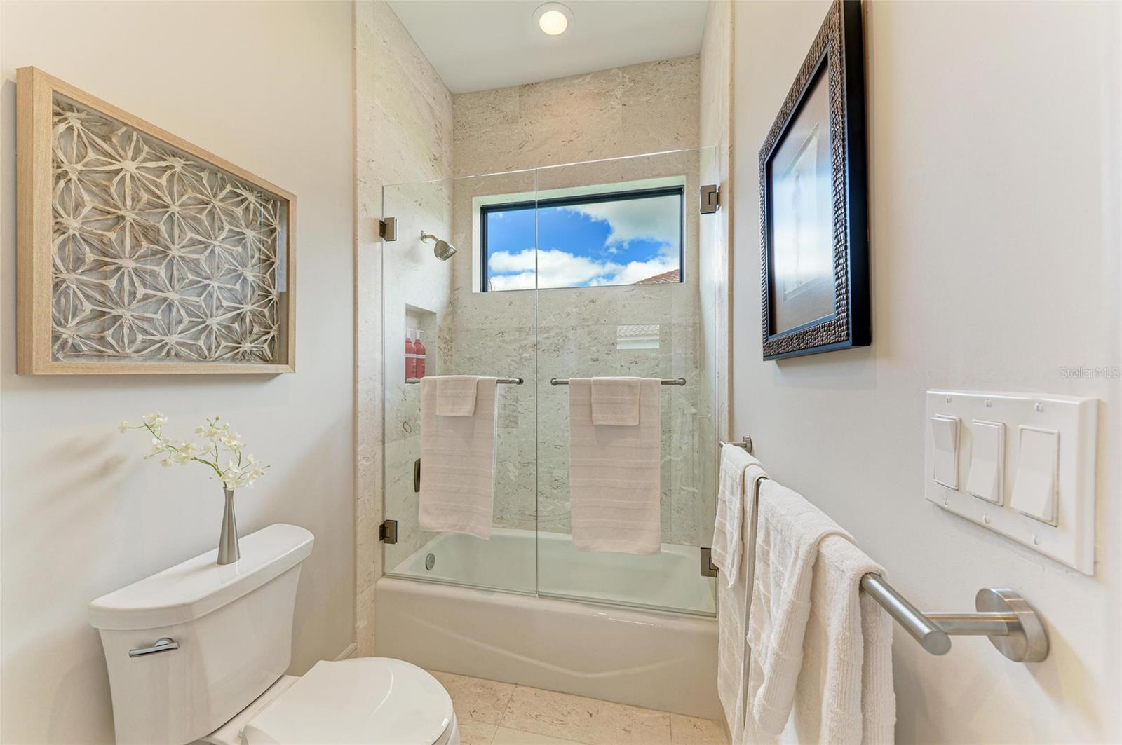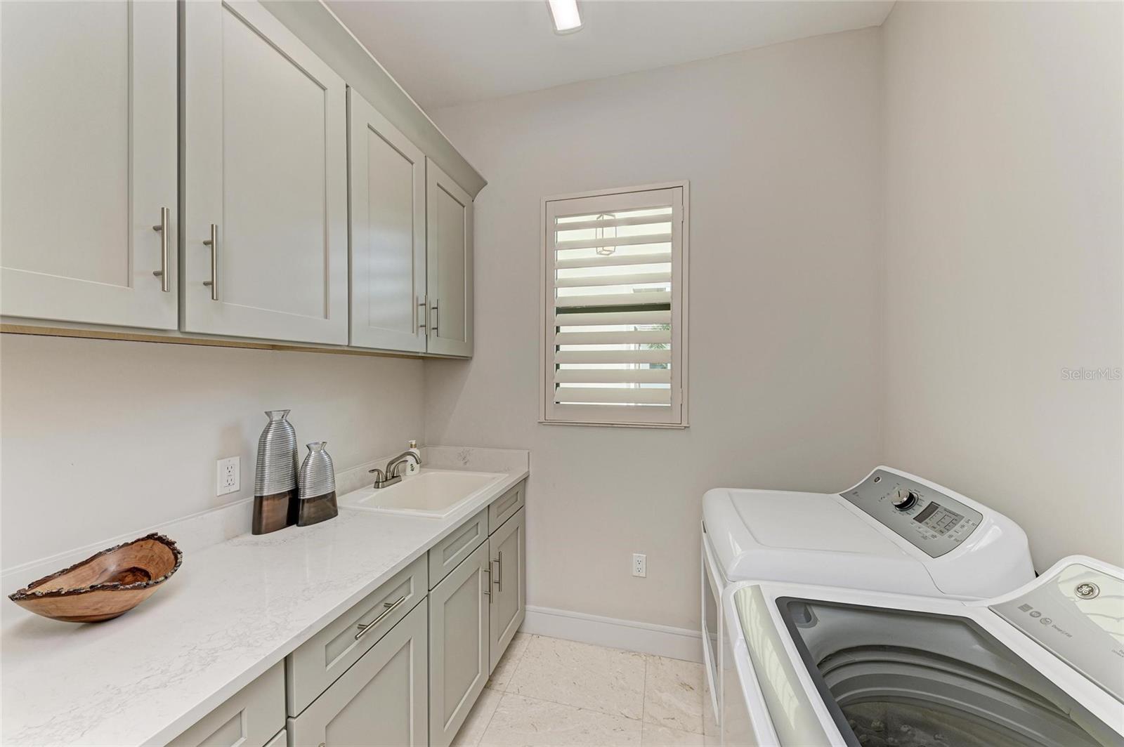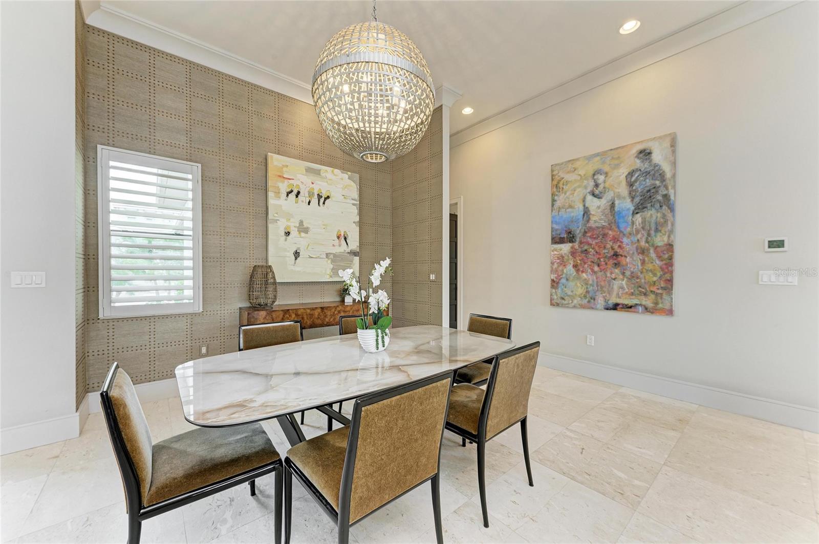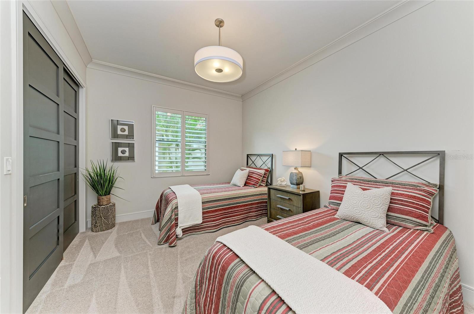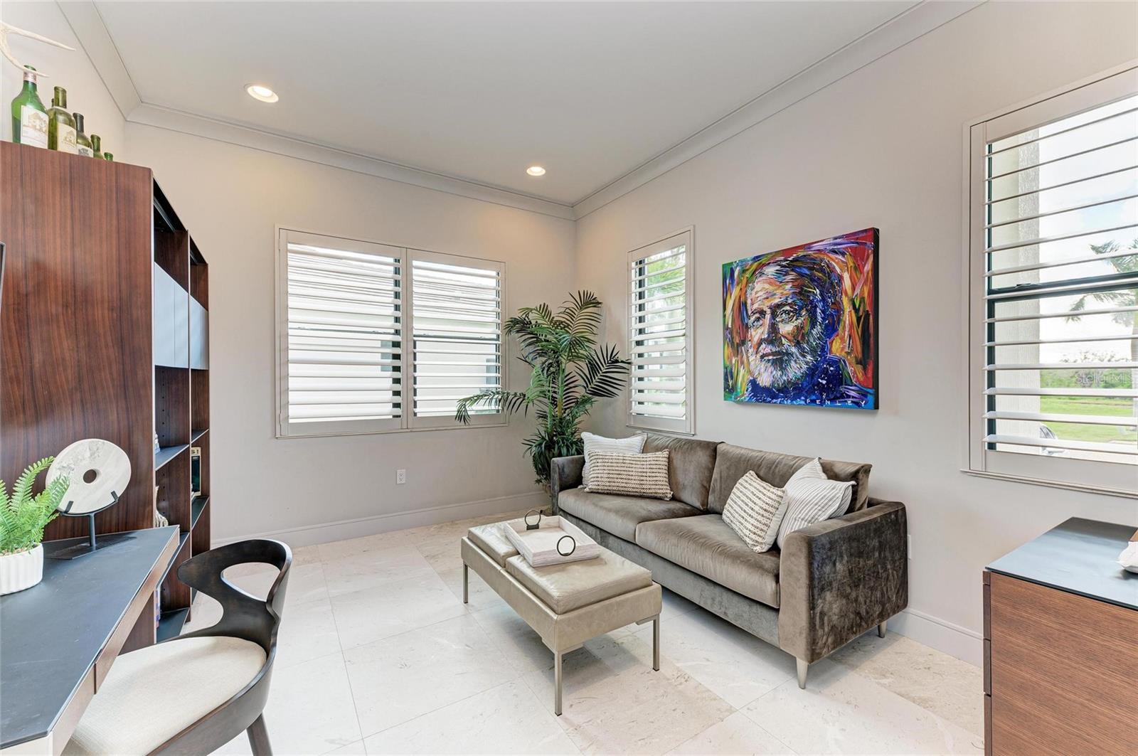 Exceptional custom home in the beautiful, gated enclave of Legends Bay. This home is immaculately maintained and offers remarkable construction quality, sophisticated design, and outstanding functionality. A prime water view location provides a serene backdrop to daily life. Lush tropical landscaping, a paver driveway, and a timeless exterior welcome you home. Built by a highly respected custom home builder, with meticulous attention to detail, you'll enjoy open sight lines, elegant designer features, symmetrical architecture, and abundant natural light. This 3-bedroom plus den home offers open space for gathering and split bedrooms for privacy. Soaring 12' ceilings and tall impact stacked sliding glass doors and transom windows contribute to an airy ambiance. Seamless indoor and outdoor living spaces showcase tranquil lake and fountain views. Special features include enhanced landscaping, designer lighting, timeless wall treatments, exquisite stone flooring and counters, crown molding, solid-core doors, plantation shutters, and state-of the-art appliances.The stunning showcase kitchen is a chef's dream with a natural gas Wolf range, tall wine refrigerator, double ovens, and quality dovetail soft close wood cabinets. The gleaming quartz countertops and large island are ideal for entertaining and everyday convenience. The well-appointed owner's retreat offers peaceful views, a walk-in shower, and expansive custom closet cabinetry for organization. Two guest bedrooms share a "Jack and Jill bath" on a private wing. The flexible den space is ready for remote work or extra space for relaxation. The fabulous outdoor living is an oasis that blends seamlessly with the indoor living area. Luxurious travertine and an extended screened in lanai surround the heated pool. The panoramic screen frames beautiful year-round views. The pool bath is accessible from the lanai for added convenience. Residents appreciate Legends Bay's welcoming atmosphere and charming tree-lined streets. Amenities include a lakeside pool, clubhouse, walking path to the pier, and social activities. The association fee covers yard maintenance and cable/internet for ease of living. Quick access to IMG Golf & Country Club and IMG Academy (golf-cart accessible), and just minutes from Anna Maria Island and Longboat Key. This energy-efficient and elevated home was quality built for the utmost peace of mind and reasonable insurance. Legends Bay's vibrant community and amenities make it easy to settle in and enjoy the Florida lifestyle. Experience the joy of living close enough to the bay that you can feel the coastal breeze yet sheltered away enough to avoid the stress of storms. This home was built with exceptional construction quality for very discerning clients. Come see if this incredible home is the opportunity for you. Virtual tours by drone and 3D Matterport available.