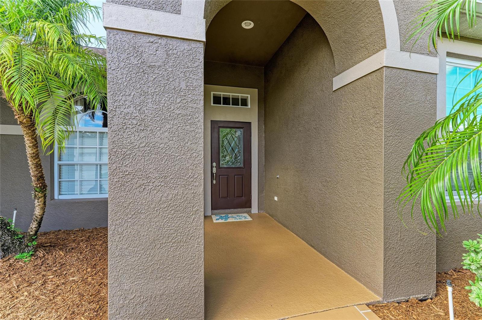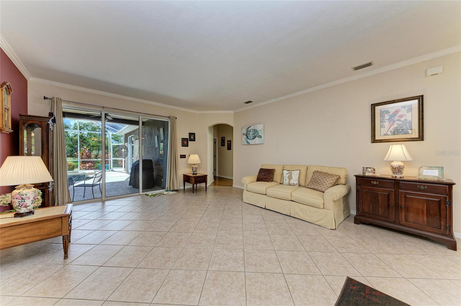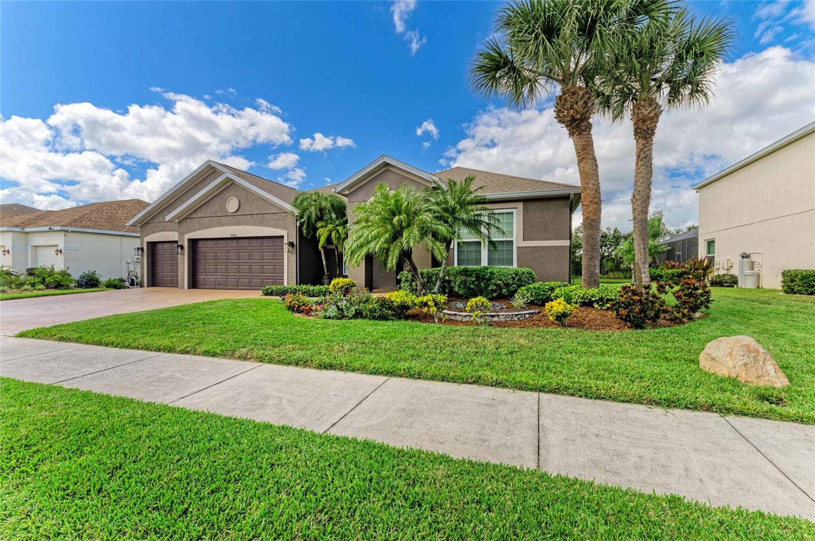 One or more photo(s) has been virtually staged. Welcome to this beautifully maintained 3-bedroom, 2.5-bath home with a bonus room in the highly sought-after community of Kingsfield Lakes. From the moment you arrive, you'll notice the meticulous landscaping, decorative sealed driveway, and spacious 3-car garage that set the tone for the beauty inside. Step through the front door to find a formal living and dining area, perfect for gatherings or quiet evenings in. The kitchen is sure to impress with granite countertops, tile backsplash, stainless steel appliances, double oven, and an inviting eat-in space. The kitchen opens seamlessly to the great room, creating the ideal setup for entertaining. Crown molding adds a touch of sophistication throughout the main living areas. The large master suite offers direct access to the pool and features his and her closets along with a ensuite bathroom boasting dual vanities, granite countertops, a garden tub, and a walk-in tiled shower. Step outside to your own private oasis -- a sparkling pool and hot tub overlooking a serene pond and preserve view. The extended patio provides plenty of space for outdoor dining and relaxation. Additional highlights include a bonus room perfect for a home office, playroom, or personal gym, a laundry room with cabinets, hurricane impact windows, gutters, and an irrigation system for easy maintenance. Located in a friendly community offering a resort-style pool, park, and playground, this home combines comfort, style, and convenience. Just minutes from top-rated schools, shopping, and major highways, you'll have easy access to Tampa, St. Pete, and Sarasota. Don't miss your chance to own this fully updated gem in one of Parrish's most desirable neighborhoods!