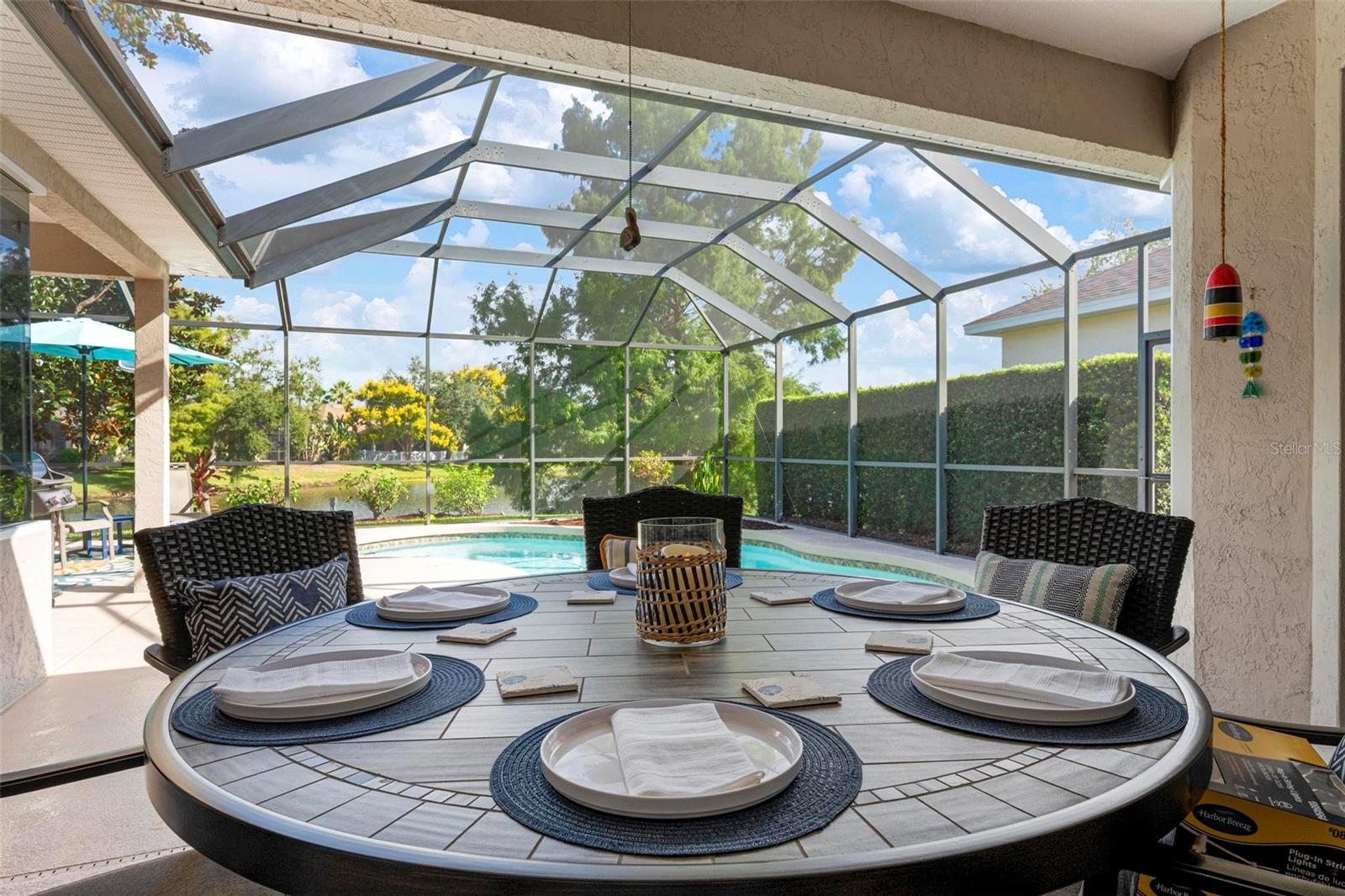 Welcome to this stunning four-bedroom, three-bath home with an additional flex room in the highly sought-after neighborhood of Greenbrook Village. From the moment you walk in, you'll be captivated by the open floor plan offering gorgeous views of the outdoor caged, heated pool and the sparkling lake just beyond. Surrounded by mature landscaping, an irrigation system, and a lush privacy hedge, this home provides complete peace and seclusion from neighbors--your own private paradise.Inside, you'll find plantation shutters in most rooms, a new roof added in 2024, and a spacious great room that opens to a covered lanai--perfect for entertaining or simply relaxing as Florida breezes drift in. The large kitchen features rich wood cabinets, gleaming granite countertops, and plenty of room to cook and gather. Enjoy casual meals in the breakfast nook or host special occasions in the elegant formal dining room.The luxurious primary suite is a tranquil retreat, complete with a sitting area, large bath, and direct access to the heated pool. With a split-bedroom layout, you have the perfect floorplan ideal for guests, teens, or a mother-in-law suite.This beautiful community is located near top-rated elementary and middle schools, and just down the road from Greenbrook Adventure Park with trails, sports courts, and a dog park, this home is perfectly positioned near everything you need! Light, airy, and beautifully designed, this home truly feels like paradise--you'll never want to leave!