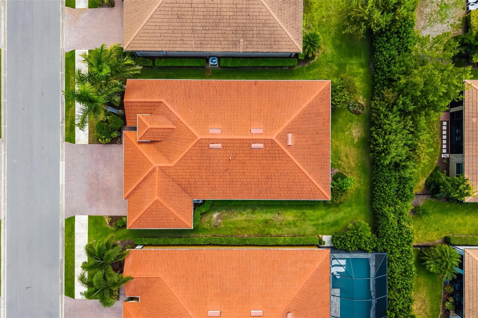 Exterior: Hurricane Shutters, Lighting, Rain Gutters, Sidewalk, Sliding Doors