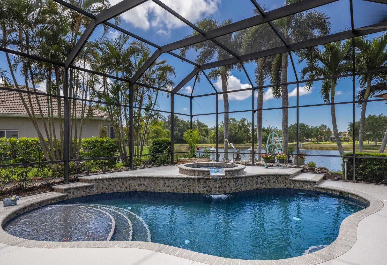 Serenity, sophistication, and sweeping lakefront views converge in this exceptional estate, located within the prestigious gated community of Red Hawk Reserve. Set on a premium homesite and thoughtfully crafted for both elegant living and effortless entertaining, this 3,586 sq. ft. residence offers four bedrooms, three bathrooms, a dedicated office, a flexible studio or fifth bedroom, and an expansive 400+ sq. ft. bonus room. From the moment you step inside, you're welcomed by soaring ceilings, abundant natural light, and timeless architectural details that create a sense of openness and grandeur. At the heart of the home lies a gourmet kitchen, beautifully appointed with designer cabinetry, a custom wood range hood, granite countertops, under-cabinet lighting, a center island with breakfast bar, and high-end stainless steel appliances. Adjacent to the kitchen, a cozy dinette framed by a sweeping aquarium window offers the perfect setting to enjoy your morning coffee while overlooking the pool and tranquil lake. The primary suite is a private retreat, complete with serene views, dual custom walk-in closets with upgraded built-ins, and a spa-inspired en-suite bath featuring a Roman shower, soaking tub, and separate vanities. Step outside to your resort-style oasis--an expansive wrap-around lanai with brick pavers, a heated pool and spa, and lush tropical landscaping, all set against the backdrop of shimmering lake views. An oversized three-car garage offers generous built-in storage and overhead racks. At the same time, the community provides added peace of mind with a virtual guard gate, high-resolution security, and reclaimed water irrigation. Located within an A-rated school district and just minutes from the world-renowned Siesta Key Beach, this remarkable residence embodies the essence of Florida luxury living.