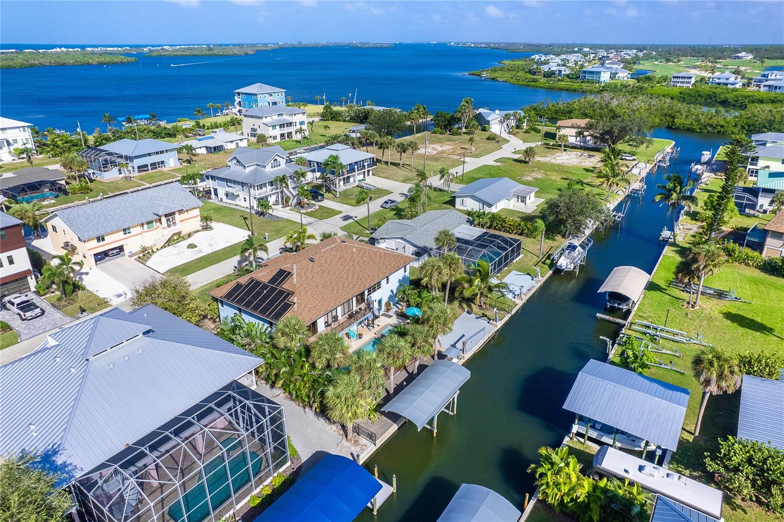 Don't miss this exceptional opportunity to own a spacious, move-in-ready, and meticulously maintained coastal home with direct, no-bridge access to the Intracoastal Waterway and stunning Stump Pass! This beautifully designed 3-bedroom, 3.5-bath residence offers the ultimate Florida lifestyle. Enjoy your own private swimming pool and hot tub, surrounded by a serene backyard oasis filled with swaying palm trees and natural beauty. Boating and fishing enthusiasts will love the covered boat lift, making it easy to hit the water anytime. Each bedroom features its own en-suite full bathroom, providing privacy and comfort for family and guests alike. The open-concept floor plan creates a bright, inviting atmosphere, the kitchen layout is perfect for cooking while entertaining your guests and everyday living. Car lovers and entertainers will appreciate the two-car garage plus an additional two-car carport, ideal for extra vehicles, a boat trailer, or hosting gatherings. The lower-level bonus area offers flexible space for hobbies, storage, or recreational use. Located just minutes from pristine beaches, turquoise waters, and endless island-hopping adventures, this home offers a rare blend of comfort, convenience, and coastal charm. Schedule your private tour today and start living the waterfront lifestyle you've always dreamed of!