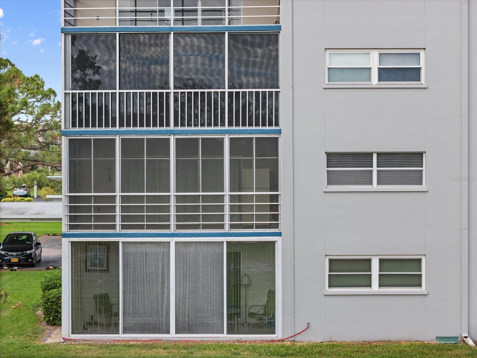 Exterior: Balcony, Lighting, Sidewalk, Sliding Doors, Storage