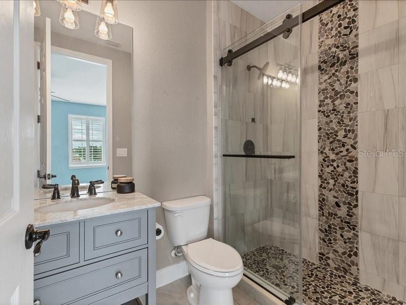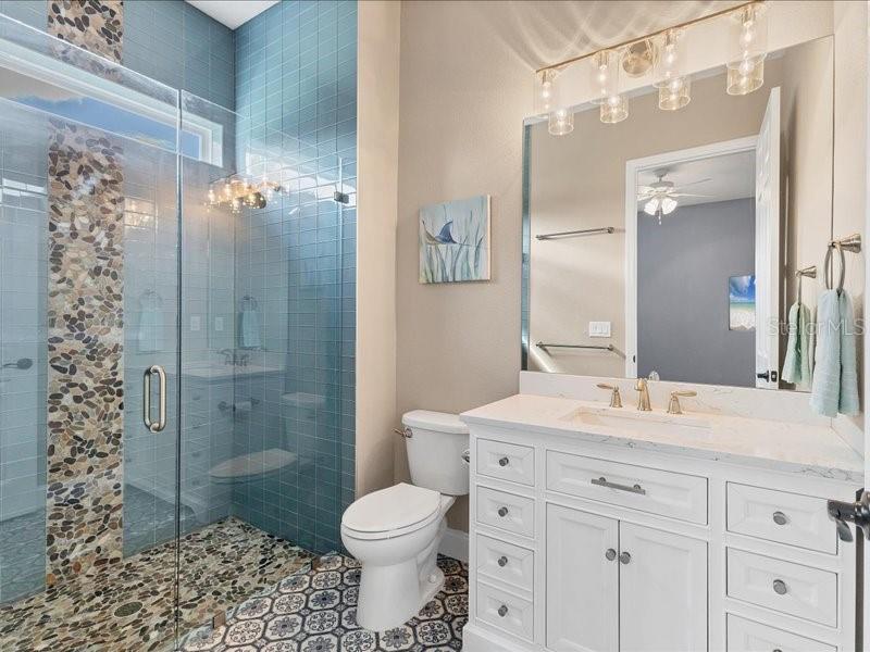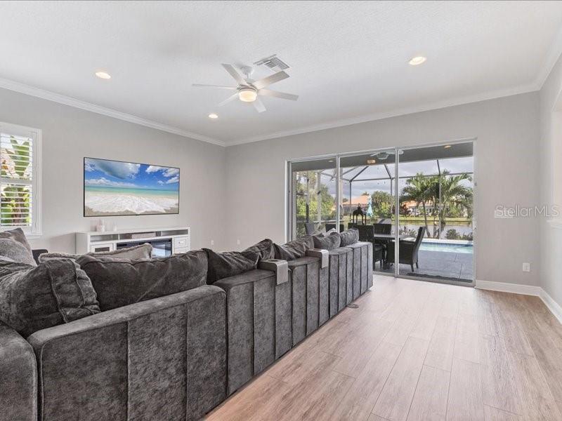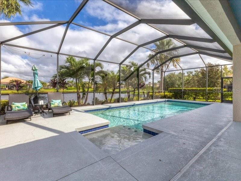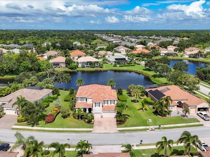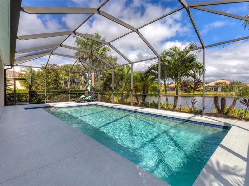 One or more photo(s) has been virtually staged. Exquisite 4,310 sq. ft. lakefront residence, built in 2014 and completely renovated in 2022, offering luxury and comfort within the gated community of Redhawk Reserve. Designed with five spacious bedrooms, four-and-a-half baths, a heated saltwater pool, three-car garage, and classic brick paver driveway. This home is positioned perfectly on a premium waterfront lot. Step inside to soaring 21-foot ceilings and an open, airy layout accented by neutral designer tones, crown molding, custom woodwork, and plantation shutters, blending timeless elegance with modern style. The first floor showcases a thoughtful layout with formal living and dining areas, a guest en-suite, powder bath, laundry room, and ample storage. The gourmet kitchen features Quartz countertops, stainless-steel appliances, a seven-foot island, induction cooktop, stainless-steel range hood, coffee/wine bar, and built-in banquette seating. Abundant cabinetry and workspace make this kitchen both stylish and functional. The family room flows seamlessly to a screened lanai with heated saltwater pool, lush tropical landscaping, and tranquil lake views. The covered outdoor area offers dual ceiling fans and generous space for dining, seating, and lounging. Upstairs, the primary suite serves as a private retreat with two custom walk-in closets and a spa-inspired bath featuring split vanities, a makeup area with marble countertops, freestanding soaking tub, and large walk-in shower. The loft area provides flexible space for a media or game room, while three additional bedrooms, including two en-suites with built-in closets, offer comfort and privacy. The extra-deep three-car garage includes epoxy flooring and overhead storage. A six-zone irrigation system, fed by recycled water, maintains the lush landscaping. Hurricane shutters, a reinforced front door, and a child-safe pool barrier add peace of mind. The home also includes a whole home Culligan water system with softener. Redhawk Reserve features a gated entrance, sidewalks, and scenic lakes. Award-winning Siesta Key Beach and UTC Town Center are only a short drive away. * Top rated school district* This home combines luxury and convenience in one of Sarasota's most desirable communities. Be sure to experience the 3D-Matterport virtual walkthrough. Don't miss this opportunity! Schedule your private showing today!