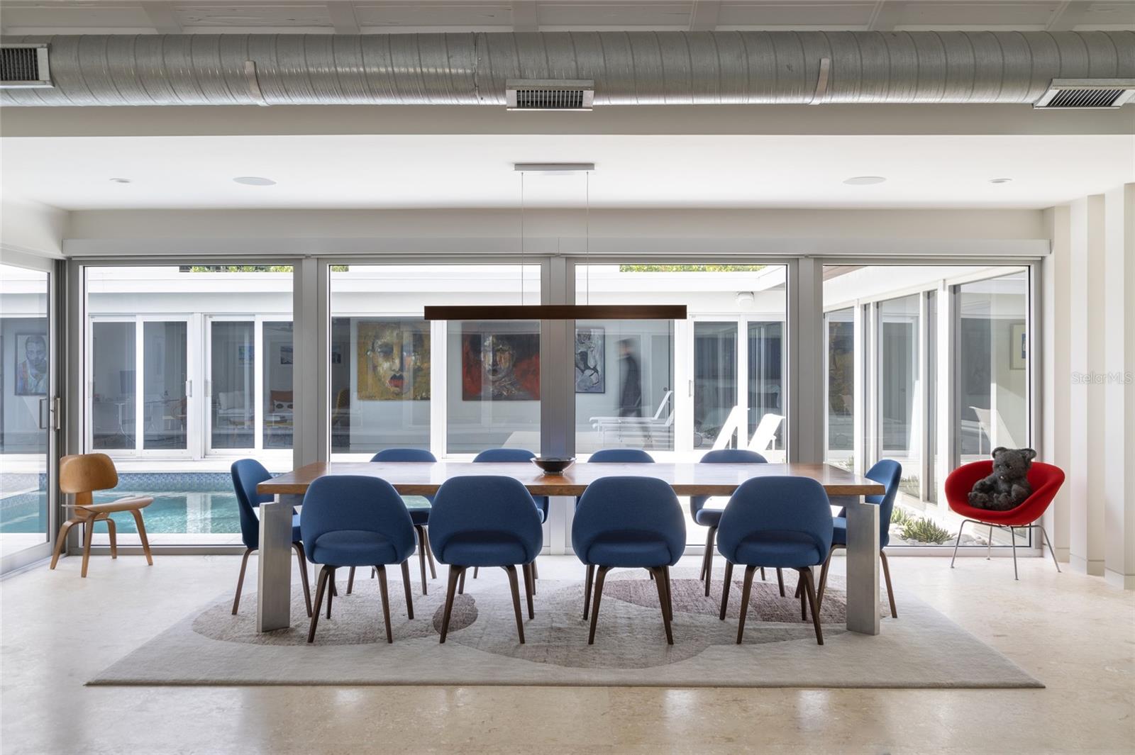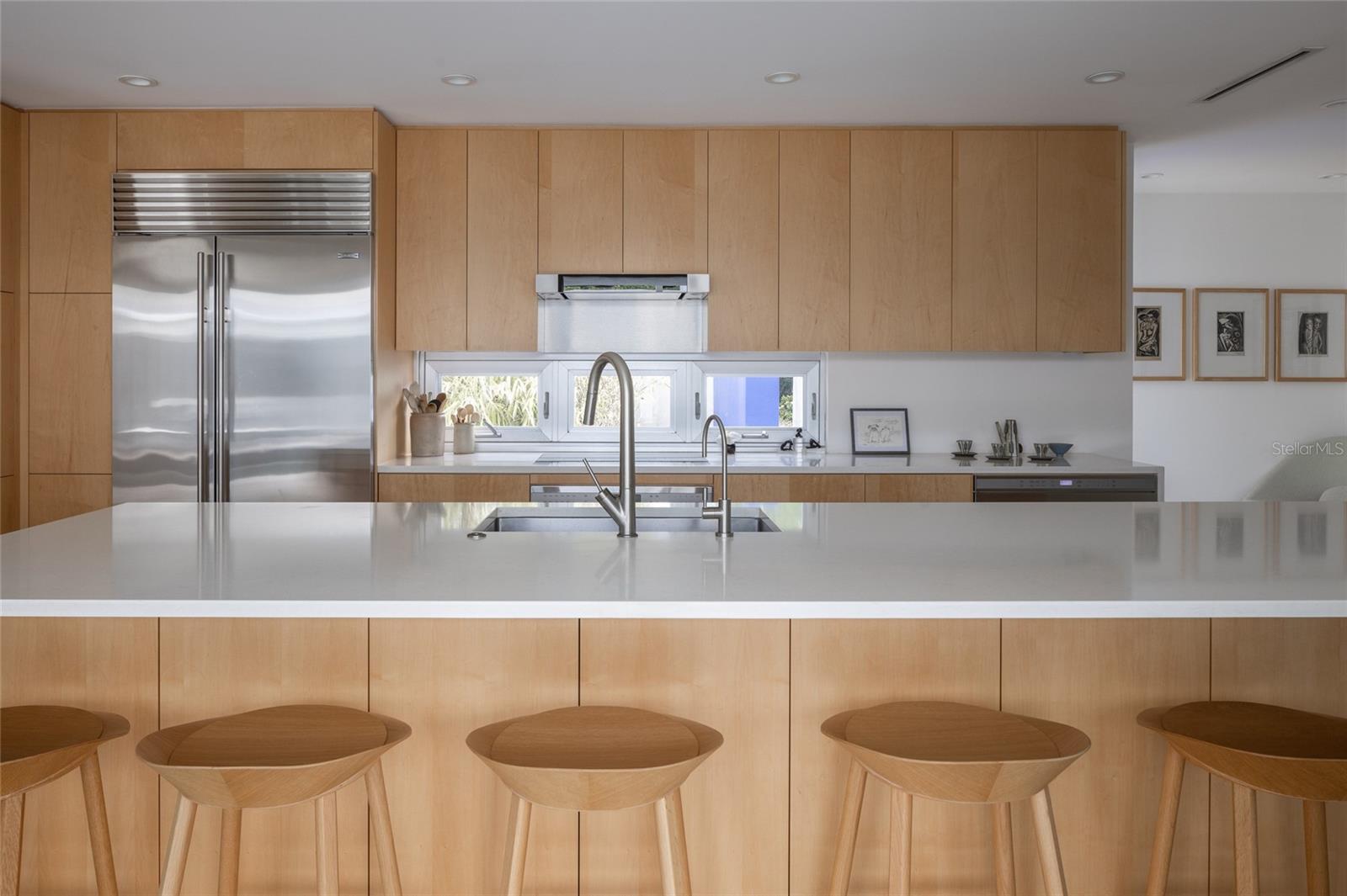 In the coveted enclave of Lido Shores, a community celebrated for its architectural innovation, this striking modern residence stands as a true work of art by renowned architect Guy Peterson. A symphony of clean lines, open volumes, and coastal serenity, the home captures the very essence of Sarasota's modernist heritage while embodying an effortless sense of luxury and calm. Walls of glass dissolve boundaries between interior and exterior, flooding every space with natural light and blurring the line between home and horizon. In 2022, a thoughtful transformation elevated both form and function, introducing a new dining area, a versatile family room that doubles as a library, enhanced storage, and a dedicated laundry space, all executed with Peterson's signature restraint and precision. Outdoors, the living experience unfolds across three distinct retreats, each its own expression of tranquility. A Japanese-inspired front courtyard with a water feature welcomes guests with meditative grace. At the center, a lap pool and heated spa anchor the heart of the home, surrounded by lush gardens, a Wolf outdoor grill, and generous lounge areas ideal for entertaining. A third, private garden extends from the primary suite, offering an intimate sanctuary designed for reflection and repose. Inside, refined simplicity defines every space. The open-concept plan seamlessly connects the main living area, dining room, and gourmet kitchen, outfitted with Wolf and Sub-Zero appliances, custom maple cabinetry, and white quartz surfaces that echo the home's modern aesthetic. The primary suite, with direct access to its secluded courtyard, features a bespoke closet system and serene ambiance that completes this private retreat. Set within a community offering exclusive access to a private Gulf-front beach, this residence transcends the notion of home. It is an architectural statement, an emblem of modern Sarasota design and a rare opportunity to own a piece of its enduring legacy.