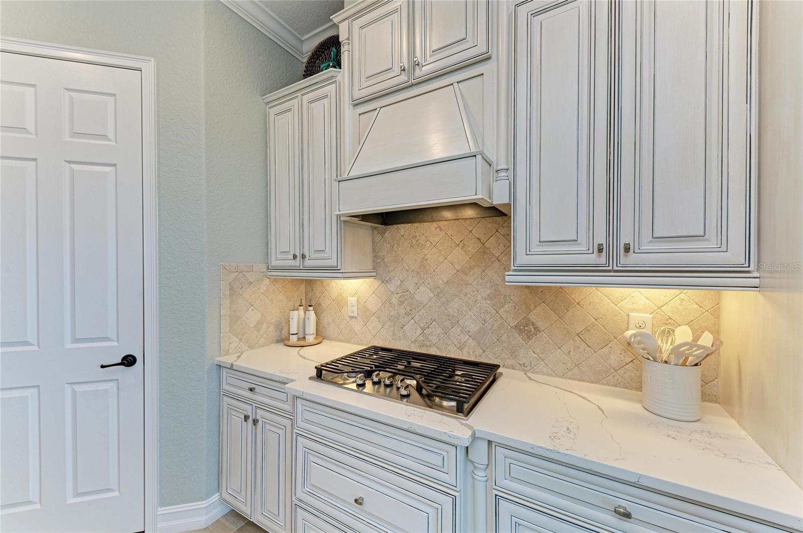 Exterior: Lighting, Outdoor Grill, Outdoor Kitchen, Rain Gutters, Sidewalk, Sliding Doors