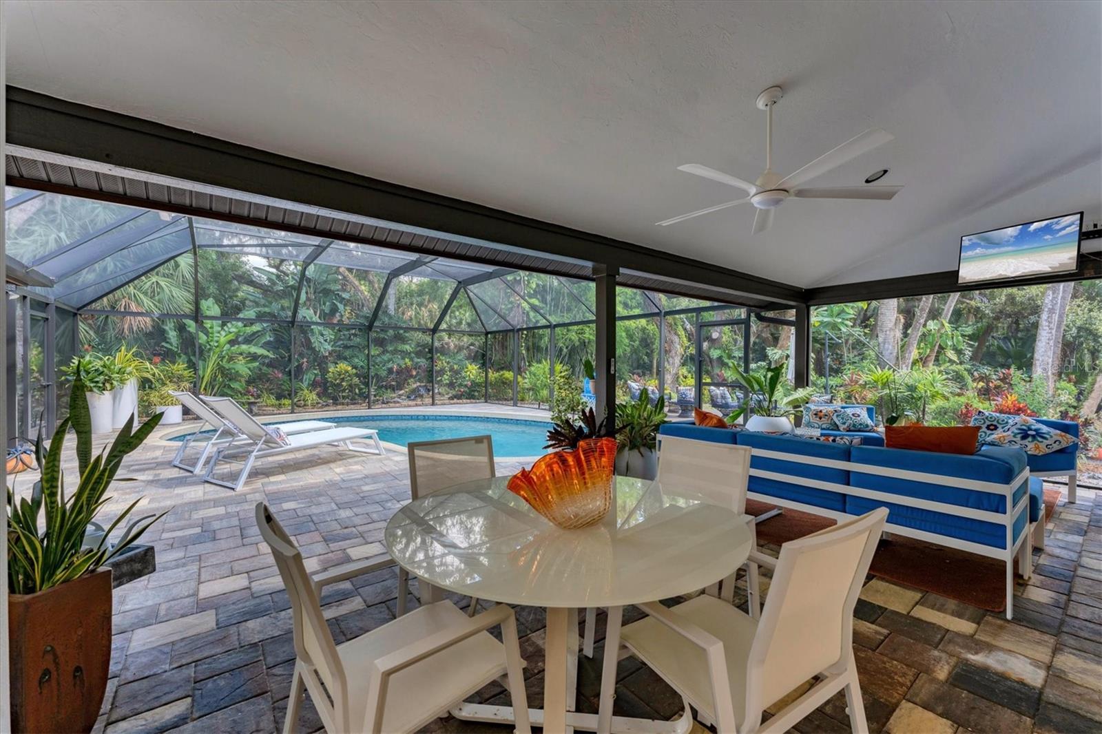 ENCHANTMENT IN MISTY CREEK - the opportunity for a "one in a million" property like this rarely comes on the market. Offering a lifestyle like that of a high-end resort and spa. Designed by a master gardener with ease of maintenance in mind, the backyard looks like something straight out of Selby Gardens. Nature lovers will enjoy seeing owls, deer, hawks, fish, and other wildlife daily. Orchids and a wide variety of flora, including some rare and collectible plants abound. The waterfall and pond can be observed and heard from vantage points throughout the home. Multiple "secret garden" spaces throughout the property give you the opportunity to reflect and simply enjoy nature. The outdoor lighting system is professionally designed to enhance the beauty of the property, especially the deck area in back that turns into your own private oasis. You're going to love the casual, contemporary design with mid-century elements. This 3-bedroom, 2-bath oversized 2-car garage pool home is nestled in The Preserve at Misty Creek. Set on .63 of an acre and tucked away within a CUL-DE-SAC at the coveted north end of Misty Creek, this home is, arguably, one of the best lots in all of Misty Creek and is in the X FLOOD ZONE, NO FLOOD INSURANCE REQUIRED. The main living areas and primary suite are light & bright. Pocket sliding glass doors open to the screened lanai & paver pool deck. There's a covered seating area on the lanai that essentially brings the outdoors in and extends your living space. Seller improvements include a NEW ROOF (2021), NEW POOL CAGE (2018), POOL RESURFACING (2018), POOL HEATER (2018), NEW A/C (2017), NEW KITCHEN REMODEL, NEW BATHROOMS REMODEL, NEW APPLIANCES, NEW FRONT DOOR (2023), NEW OUTDOOR LIGHTING, NEW SLIDING GLASS DOORS & 9 NEW WINDOWS slated for installation in November 2025. High ceilings, crown molding, ceramic tile throughout the main living areas, and a laundry room that doubles as a butler's pantry with additional cabinetry, sink, storage and countertop space all contribute to making this home not only beautiful, but functional. The Preserve at Misty Creek is a gated community of 302 single-family homes. It's an exciting time in Misty Creek as the Misty Creek Country Club is currently closed for renovations and the new improved club is expected to open in November 2025! Perks of Misty Creek - NO MANDATORY GOLF MEMBERSHIP, a well-run responsive HOA with LOW HOA FEES, "A" RATED SCHOOL DISTRICT with school bus stops within the community, a security gate, the feeling of being in the country with close proximity to everything you need, an established community with many longtime residents, the wildlife, nature & abundance of 100+ year old oak trees just to name a few. Misty Creek offers convenient access to shopping, beaches, parks, dining, I75, golfing, boating, fishing & more! Don't miss your opportunity to have your own personal sanctuary in this beautiful community!!! SCHEDULE A SHOWING TODAY!!!