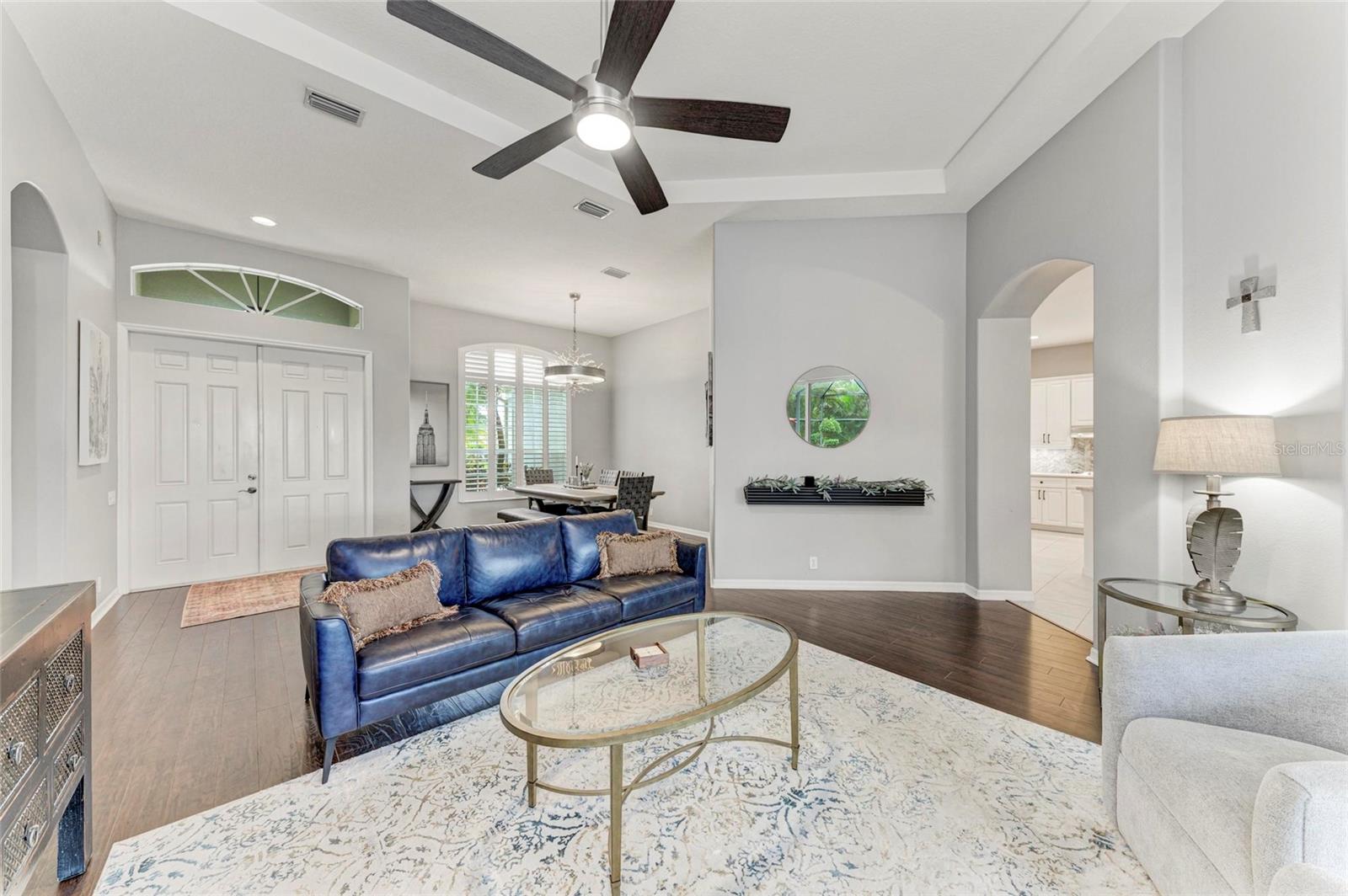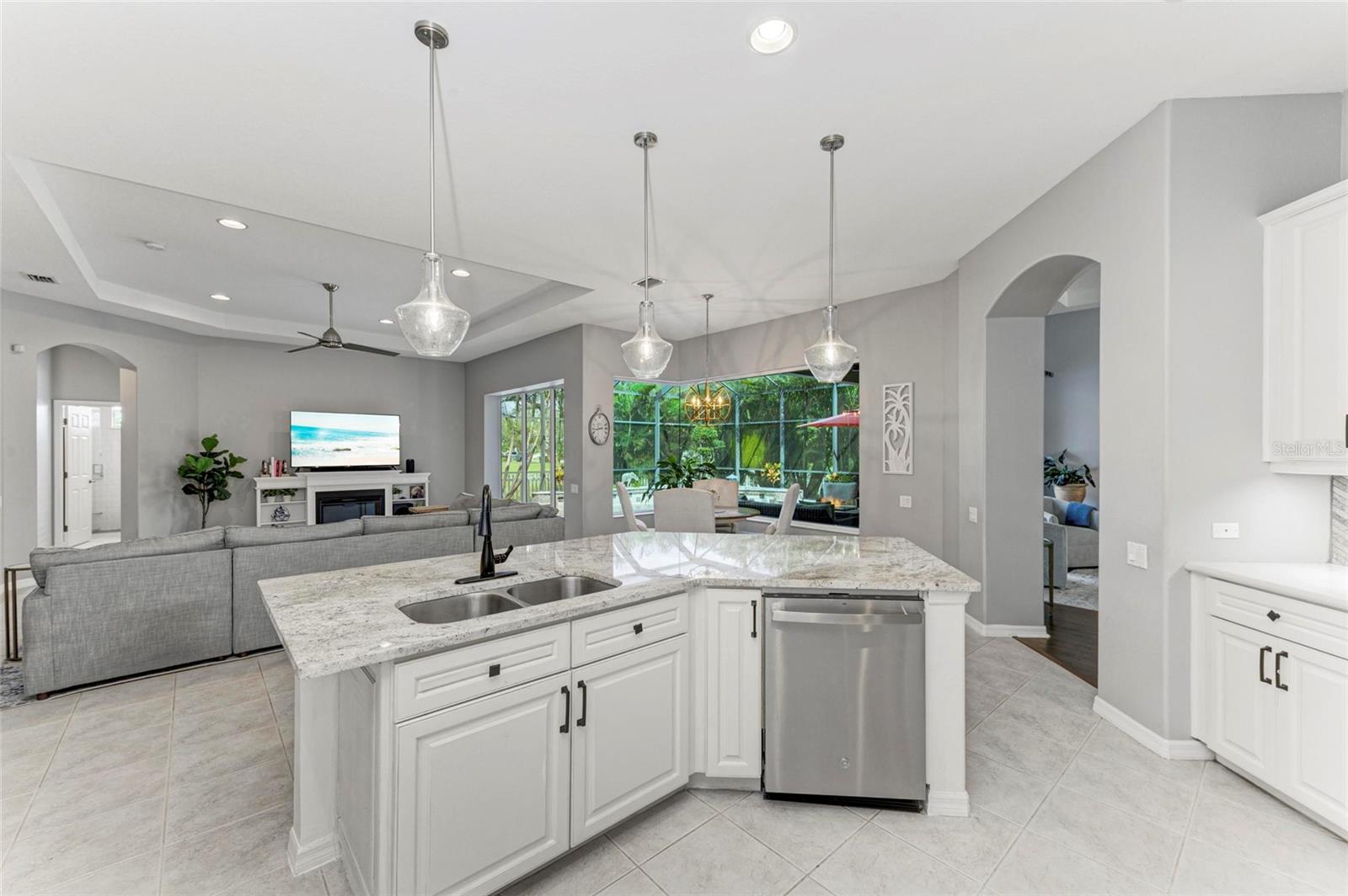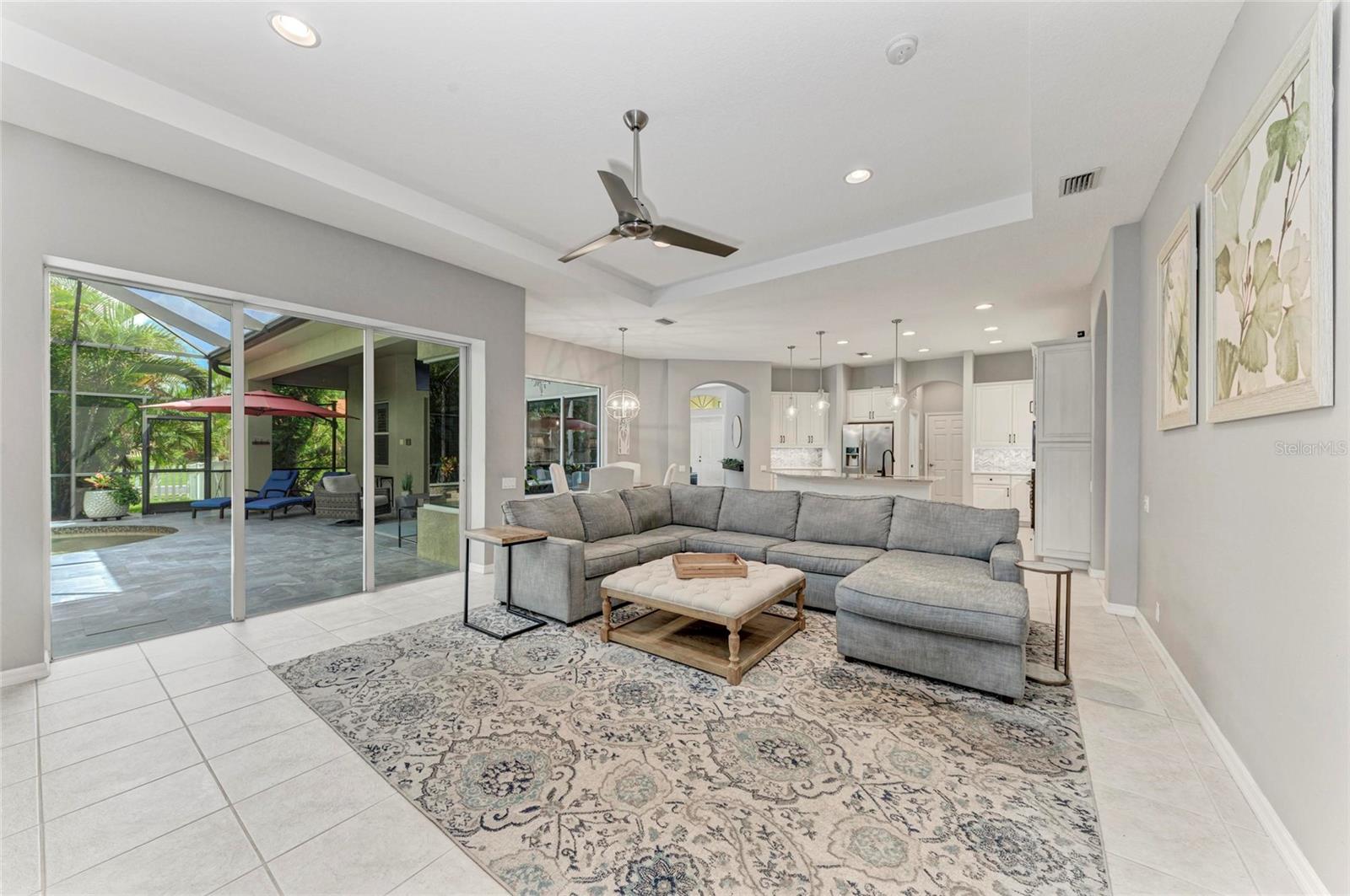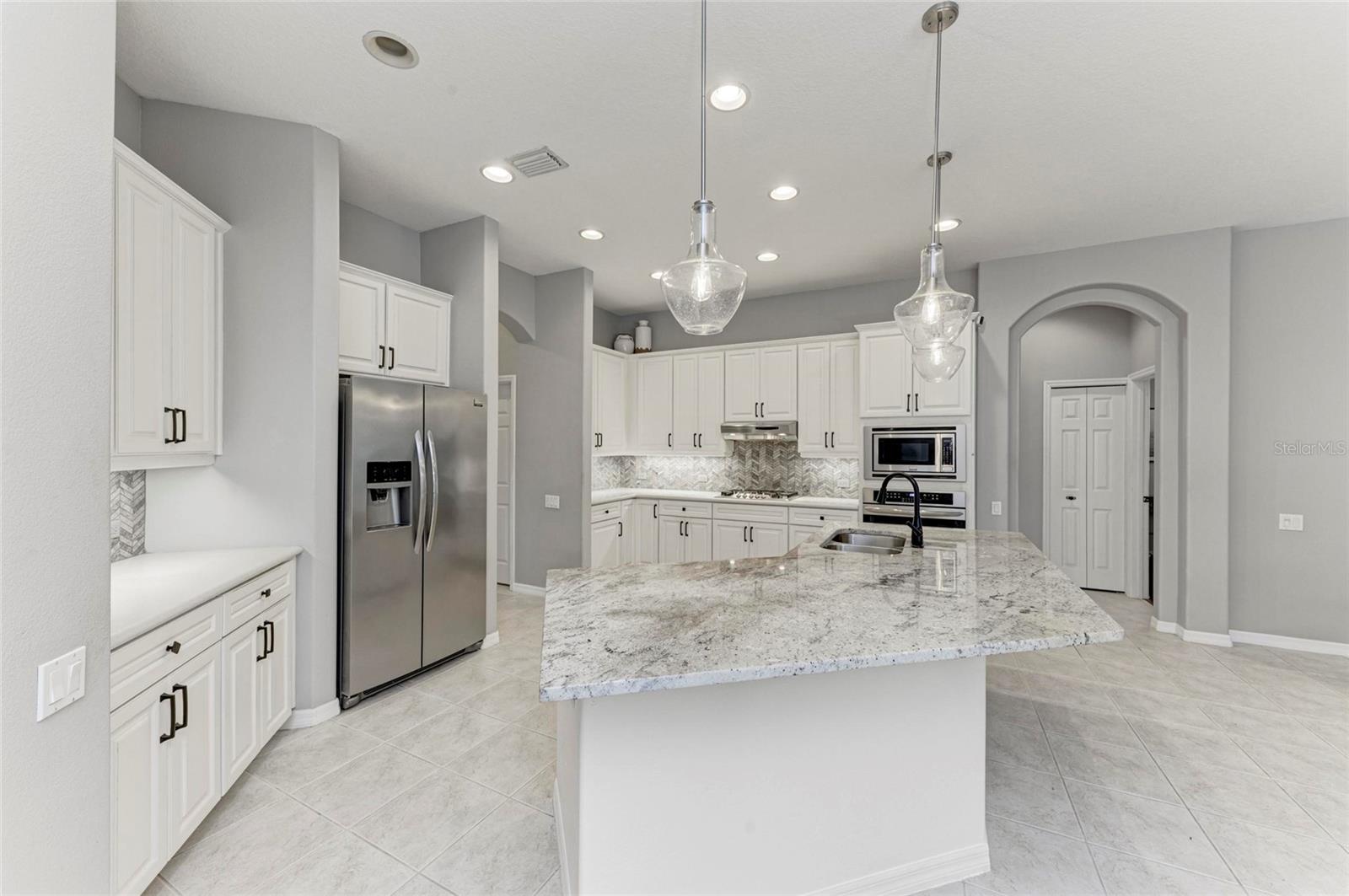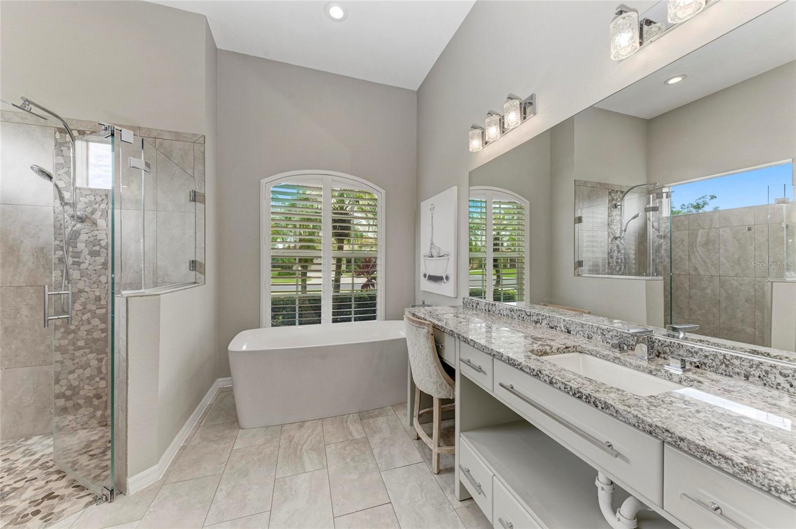This beautifully maintained property will capture your attention from the moment you open the front door as you take in all the fine craftsmanship the builder, Sam Rogers, put into it in 2006. However, it's the tasteful updates, made by the sellers over the years, that have created a true masterpiece that will surely check off at least a few of your must haves on your home shopping list! Expansive Primary Bedroom w/pool access, gorgeous Ensuite Bathroom featuring custom vanities, frameless shower enclosure w/ hand held & rain shower fixtures, travertine flooring, dual sinks w/granite counters & LED Lighting. The details perfectly curated in the thoughtful design of this open split plan featuring 3 other Spacious Bedrooms located on the opposite side of the home, each allowing relaxation and privacy for family or guests. Elevated Kitchen w/ Stainless Steel Appliances, Double Oven, Gas Range, Oversized Island w/ sink, prep area & Dishwasher tucked out of view. Adjacent to the kitchen is a walk-in pantry w/ wood shelving & a generous laundry room w/ custom cabinetry, including ironing station, granite countertop, deep laundry sink w/faucet & hardware a door knob turn away from a spotless 3 Car Garage w/ tankless water heater, 2 storage racks, Water Softener system & Generac generator! Step outside from a number of access points (Sliding Glass Doors from Family Room also feature privacy SunScreen to throw shade w/ a click of your remote) to enjoy the real heart of this home- the Private Pool & Outdoor Kitchen. The Lanai is completely screened in but with nothing blocking your beautiful views of the lake and sunsets right from your lounge chair, pool floaty, bar stool, or grassy, fenced area for furry friends. Outdoor Kitchen built w/steel frame, stacked stone bases, granite countertops, Bull Grill and Bull Outdoor Fridge, Stainless Steel Sink & Faucet. A True Gem in the highly sought after Greyhawk Landing neighborhood known for its serene lake views, nature trails, daily sightings of deer families, various birds & other wildlife and those JAW DROPPING SUNSETS!! This home is perfect for buyers seeking a peaceful retreat of their own with easy access to everything Lakewood Ranch has to offer without all the fees. LOW HOA is only $75.00 per YEAR and includes a 24 hour, manned Guard at the gate-No annoying call boxes! 2 Community Pools- Main Pool has newly renovated Splash Area with slide and water features and has motorized lift for residents and guests needing assistance to get in out of the pool safely, Tennis Courts, 2 Play Ground areas, Basketball Courts, Fitness Center, Baseball and Soccer Fields, several ponds and lakes for fishing or bird watching. Community Events are action packed and include Parades, Food Trucks, Annual Yard Sales and Several Holiday Celebrations. Private FB Group for Residents only and a Very Active Classified's Page. Come see why Greyhawk Residents love living here!
