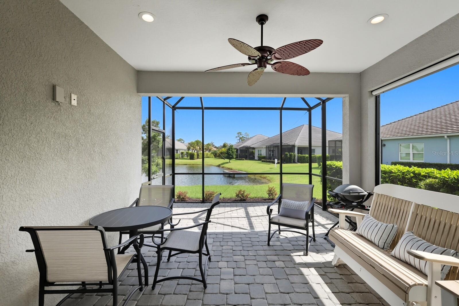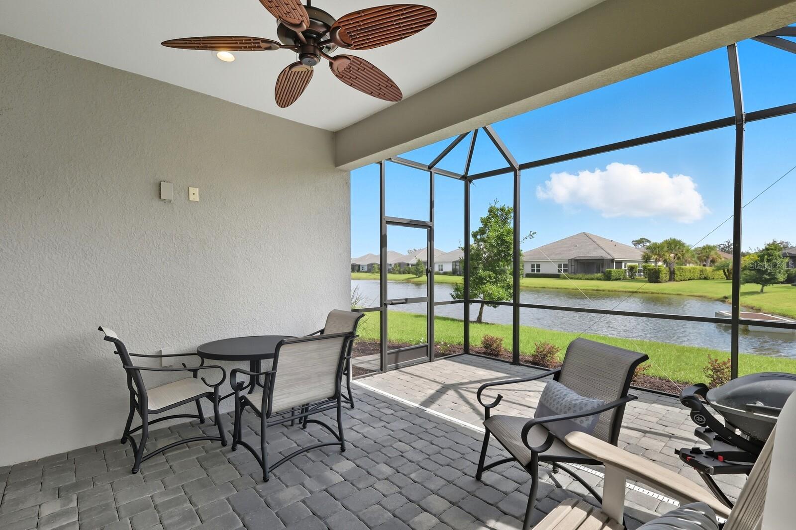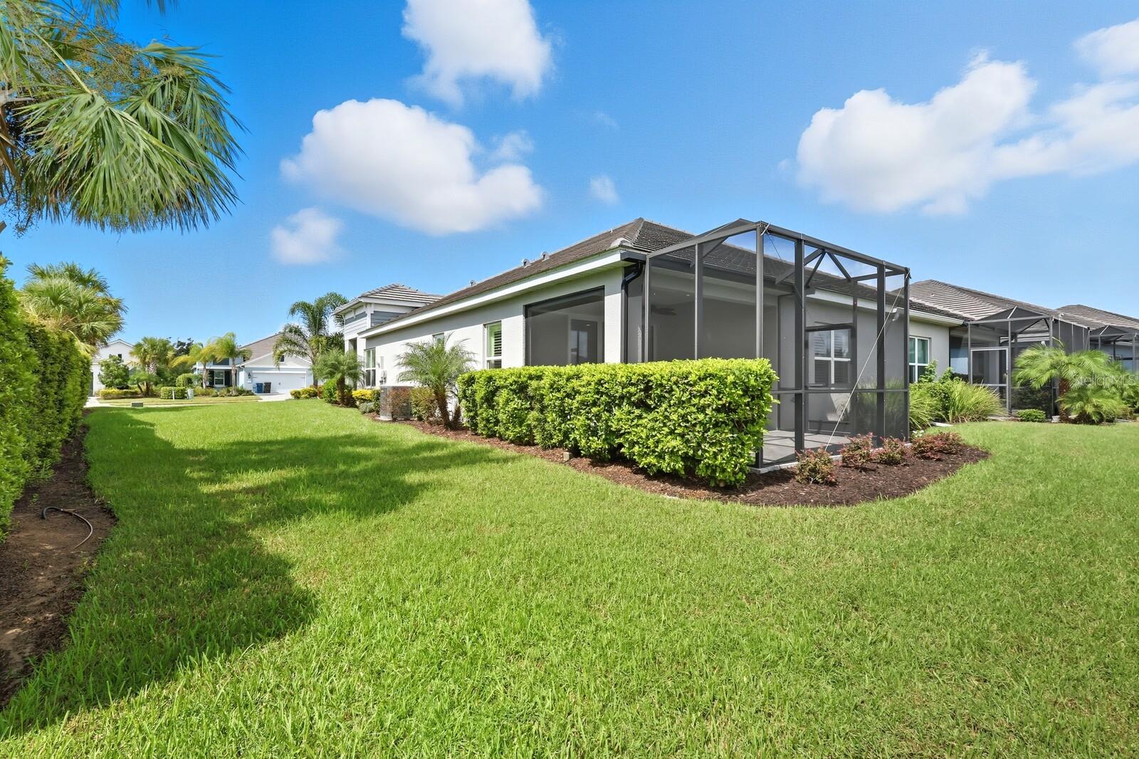 Welcome Home to this exceptional and highly upgraded Villa perfectly positioned with private and serene water views and a large back and private side yard in the Resort style Gated Community of Indigo located in the Heart of Lakewood Ranch. This Villa has a thoughtful, open floor plan that seamlessly connects to the expanded Lanai. It was built in 2021. Better than new! The high-end designer finishes create the perfect atmosphere for entertaining family, friends or daily living. The large Chef inspired Kitchen has custom white wood cabinetry with under cabinet lighting, a lovely Quartz island with sitting area, stainless appliances including gas stove plus a walk-in pantry with wooden shelving . The Dining area is conveniently positioned across from the kitchen and adjacent to the light and airy Great Room with high impact sliding glass doors for peace of mind leading to the expanded Lanai with lovely nature and water views. All main living areas have wood-look tile flooring. The Bedrooms and Den have Upgraded carpeting.Retreat to the Primary Suite with relaxing water views featuring a large Walkin Closet with custom built-ins and a 2nd oversized closet. The ensuite Bath has dual vanities with quartz counters , white cabnetry and a large walk-in shower. The split floor plans has the 2nd Bedroom nestled toward the front of the Villa with a stylish 2nd Bath featuring white cabinets, tub with shower and private water closet. Nearby is the well equipped Laundry room and storage closet. Opposite is an ample size Flex room perfect as a den, study or extra space for company offering privacy with double herringbone wood doors.Features include Custom window treastments, Plantation shutters, upgraded lites and fans, crown moldings, high impact windows and doors , large 2 car garage and paver drive & walkway. every detail reflexs quality design, care and comfort. Enjoy effortless maintenance free living!The Villa is walking distance to the Oasis Pool, Spa and Clubhouse which is private for the Villas. The Community Resort style amenities offers a Large Pool/Spa, 5 Cabannas, a Beautiful Clubhouse and Fitness Center, 2 Bocce , 4 Pickleball Courts, a playground and an onsite Activity Coordinator.Located close to top rated schools, the UTC Mall's shopping and dining, Waterside Place, Sarasota &Manatee cultural and fun events plus our world-renowned Beaches. Location is every thing. Indigo offers the perfect balance of serenity and convenience. Don't miss this opportunity. Schedule a tour today and make this home yours! You deserve it!