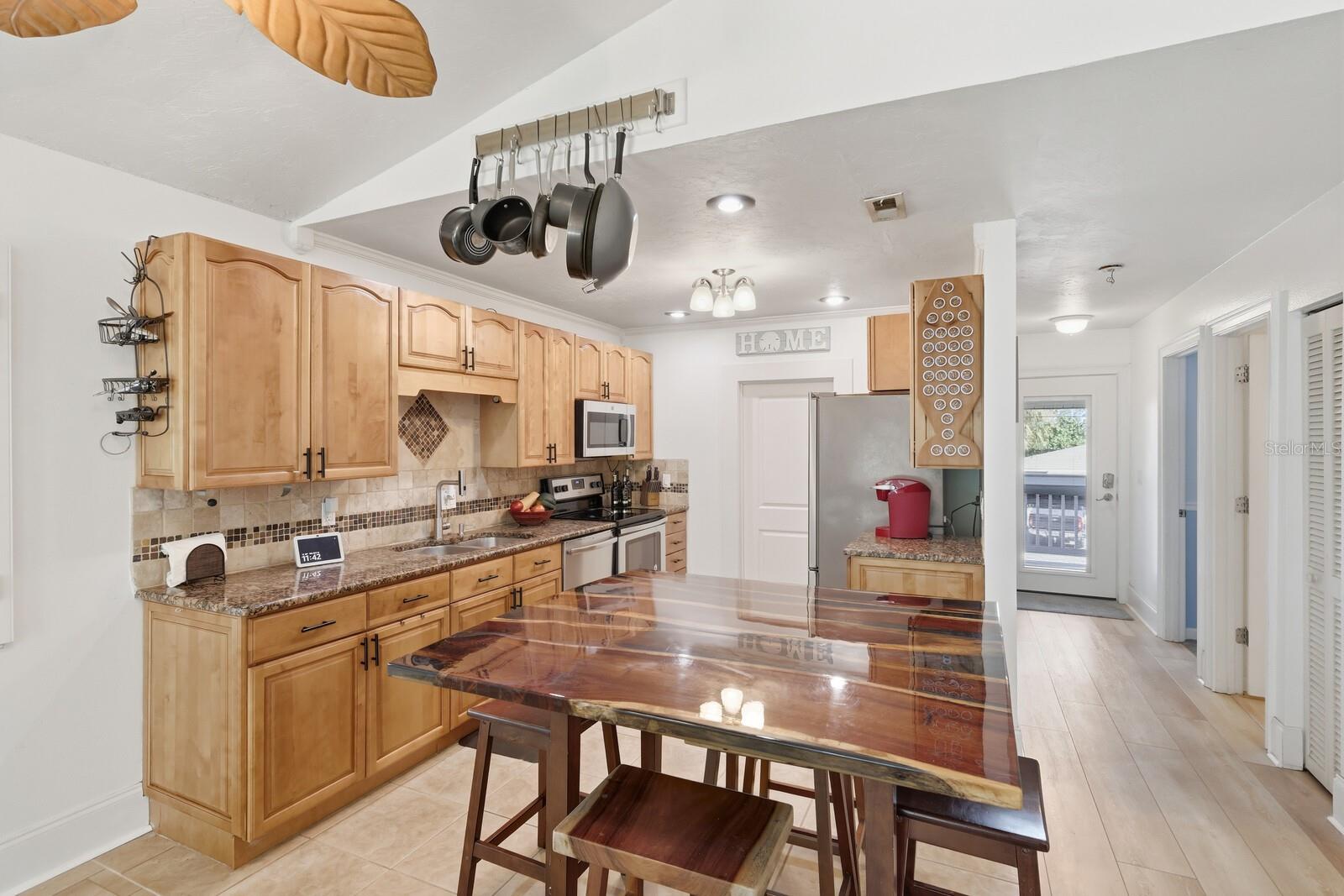 Experience the best of island living in this beautifully maintained Turnkey FULLY FURNISHED, Key West-style home just moments from Siesta Key Public Beach and the vibrant Siesta Village. Offering 3 bedrooms, 2 bathrooms, and a 2-car garage with brand-new doors, this residence has been thoughtfully updated over the years with major recent improvements including a 2023 metal roof and all-new impact glass windows and doors for peace of mind. Head upstairs to the main living level where an open-concept layout welcomes you with luxury vinyl plank flooring, vaulted ceilings, and plantation shutters that fill the space with natural light. The kitchen features stainless steel appliances only a few years old, granite countertops, and a convenient connection to the dining area--ideal for hosting friends and family. Each bedroom showcases plantation shutters and crown molding for added charm. The primary suite is a true retreat, complete with a walk-in closet with built-in organization, an ensuite bathroom with a glass-enclosed shower tucked behind a stylish barn door, and direct access to the backyard deck through sliding glass doors. The two guest bedrooms share a tastefully updated full bathroom. Step outside to the elevated deck overlooking the private backyard, where a cozy fire pit area awaits in the corner--perfect for evening conversations and coastal breezes. An outdoor shower is the perfect spot to rinse off after a long day at the beach. Whether you're seeking a full-time residence or the ideal vacation getaway, the flexibility of no HOA allows you to live as you please. Located just down the road from the powdery white sands of world-renowned Siesta Beach and only a half mile from the charming shops and restaurants of Siesta Village, this home delivers the quintessential Siesta Key lifestyle.