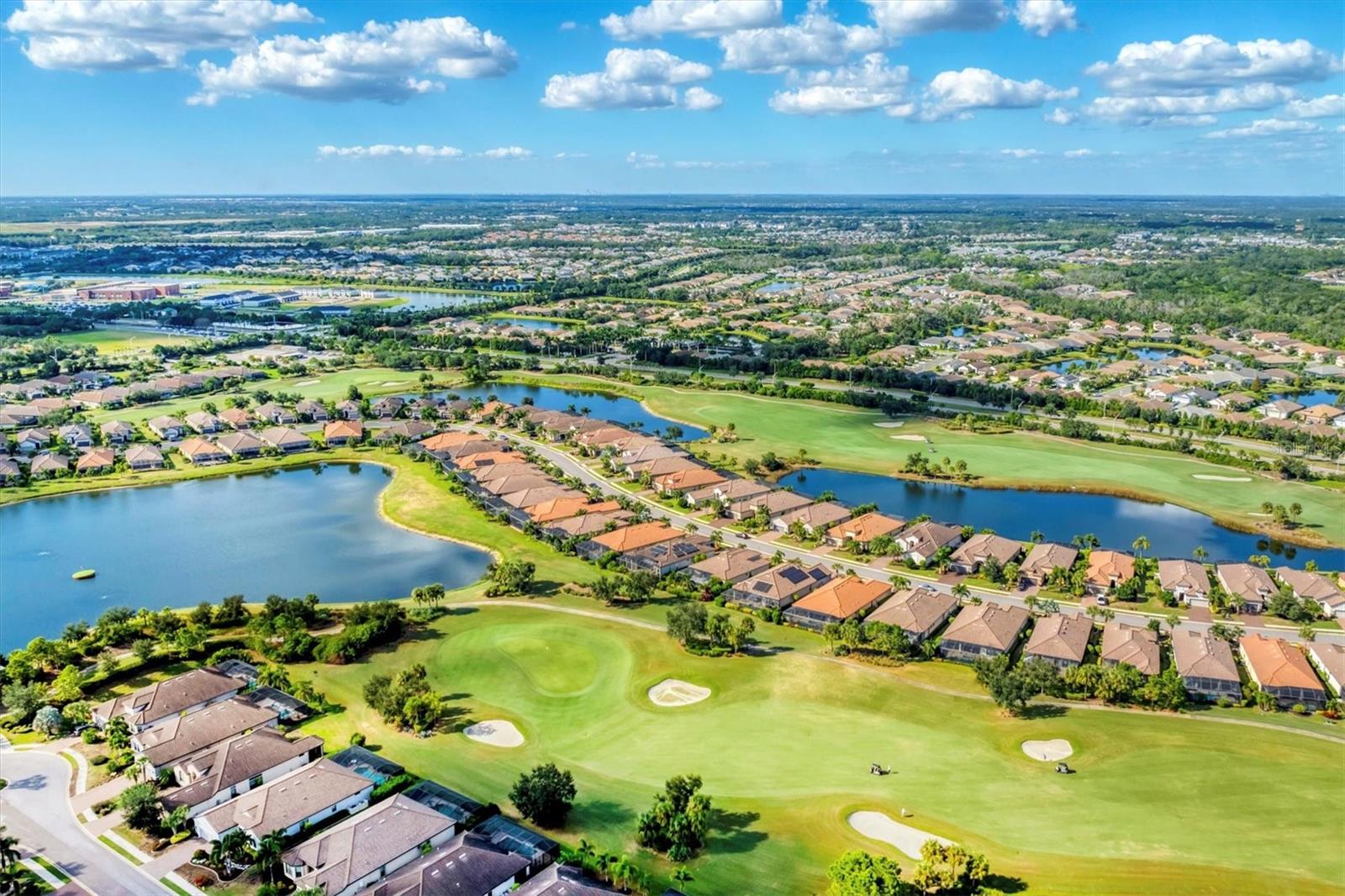 Experience the best of Florida living in this 3 bedroom, 2.5 bath home with 2 car garage that features an 8 ft extension, perfect for a Golf Cart or for extra storage. Located in the sought after Esplanade Golf and Country Club at Lakewood Ranch, this home includes a Full Golf Membership and access to world class amenities. Step through the inviting courtyard entry, an ideal spot to enjoy your morning coffee or unwind in the sunshine. Inside, the spacious Great Room flows seamlessly into a formal dining room and gourmet kitchen, which boasts Quartz countertops, stainless steel appliances, a breakfast bar, pantry, and cozy dinette. The Primary Suite features two walk in closets and a luxurious en-suite bathroom with dual vanities with Quartz tops, and a walk in shower. Enjoy Florida's year round outdoor living with your private pool and panoramic screen enclosure, offering serene golf course views framed by mature landscaping for privacy and beauty. Living in Esplanade means enjoying a true resort lifestyle! Amenities include an 18-hole championship golf course, two clubhouses each with resort style pools and hot tubs, fire pits, fitness centers, Pickleball, tennis, bocce ball, a driving range, putting green, playground, dog park, full service spa and salon, and a culinary center. Dine and relax at the Bahama Bar & Grill at poolside, or at The Barrel House Bistro, and take advantage of the community's vibrant social calendar organized by the on-site activities director. This maintenance free guard-gated community is ideally located near Lakewood Ranch Main Street, Waterside Place, UTC Mall, downtown Sarasota and Bradenton, St. Armand's Crcle, and the world famous beaches of Lido Key, Siesta Key, Longboat Key, and Anna Maria Island. Discover elegance, comfort, and community, your dream home awaits in Esplanade Golf & Country Club at Lakewood Ranch!