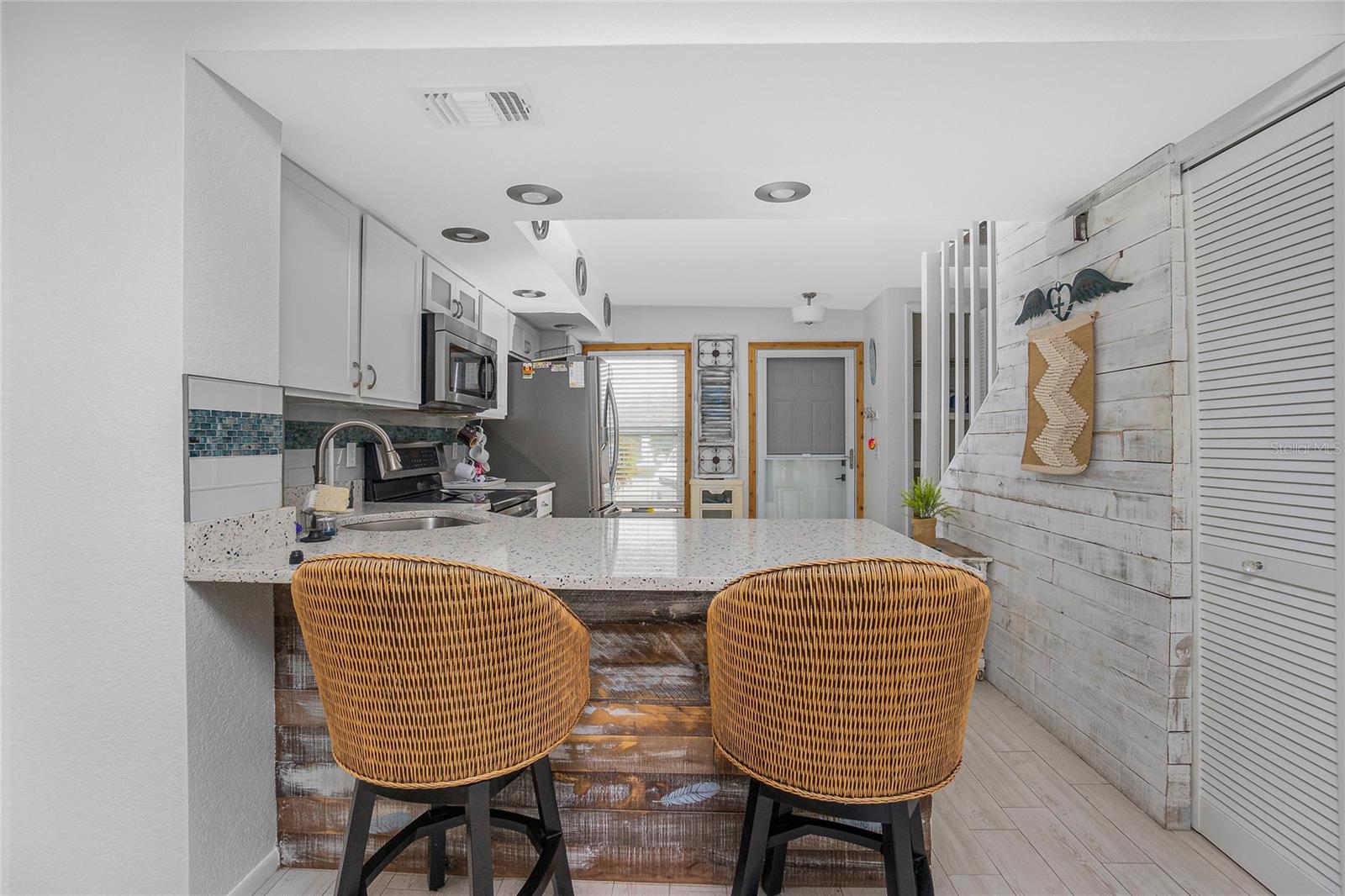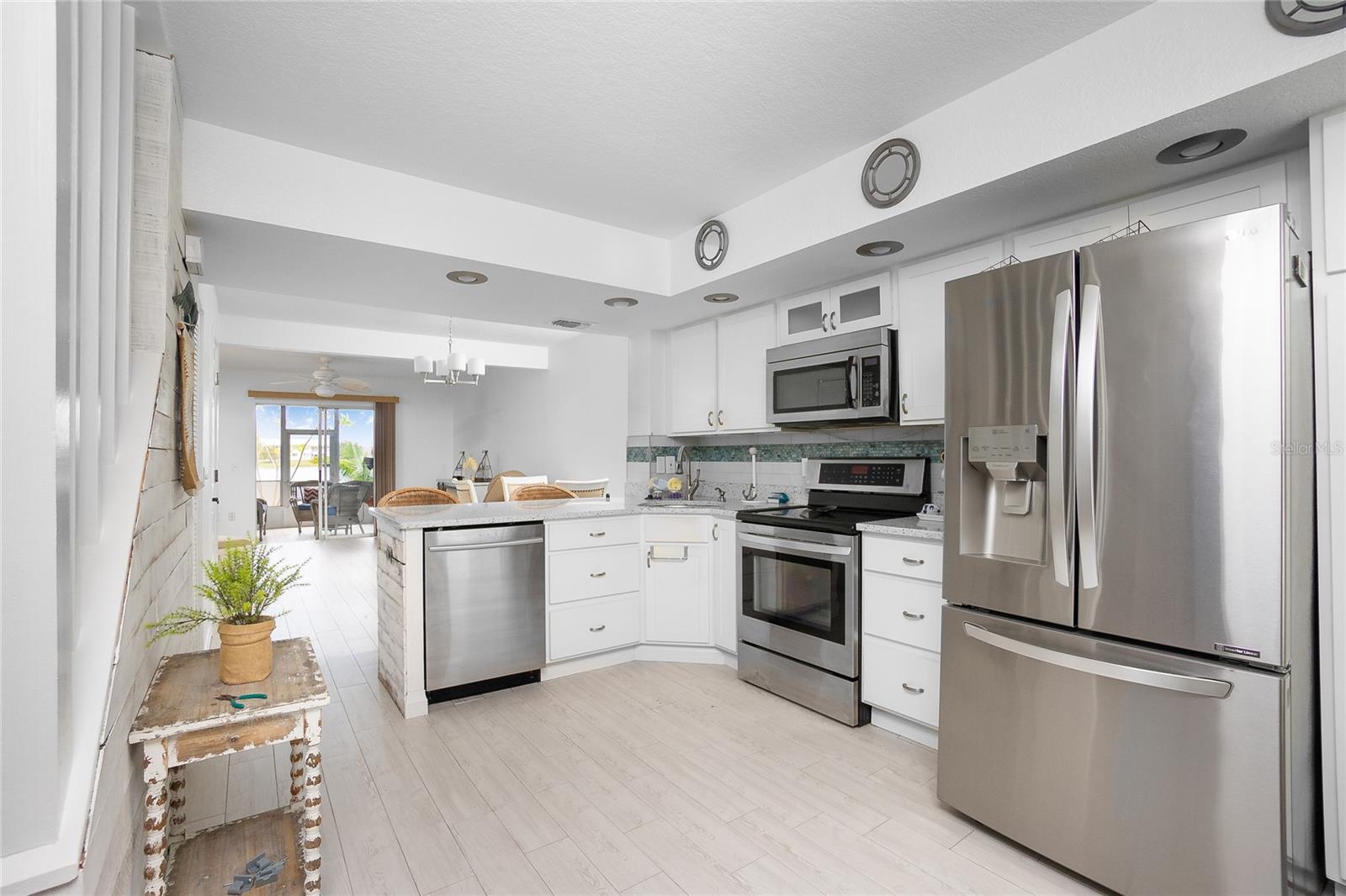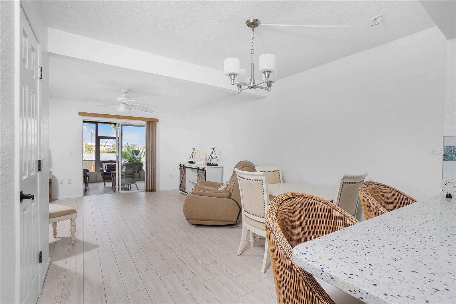 Convenient and Elegant. This fully remodeled, lakefront townhome is a true gem, offering luxury and comfort in every detail. The turnkey furnished home features a gourmet kitchen with high-end appliances, a spacious great room, and a finished lanai with luxury vinyl flooring--perfect for both relaxation and entertaining. The first floor includes a guest powder room and a convenient laundry closet. Upstairs, two ensuite bedrooms await, with one offering access to a private balcony lanai with stunning lake views. With modern upgrades and an unbeatable location, this home is ready for you to move in and enjoy lakeside living at its finest.