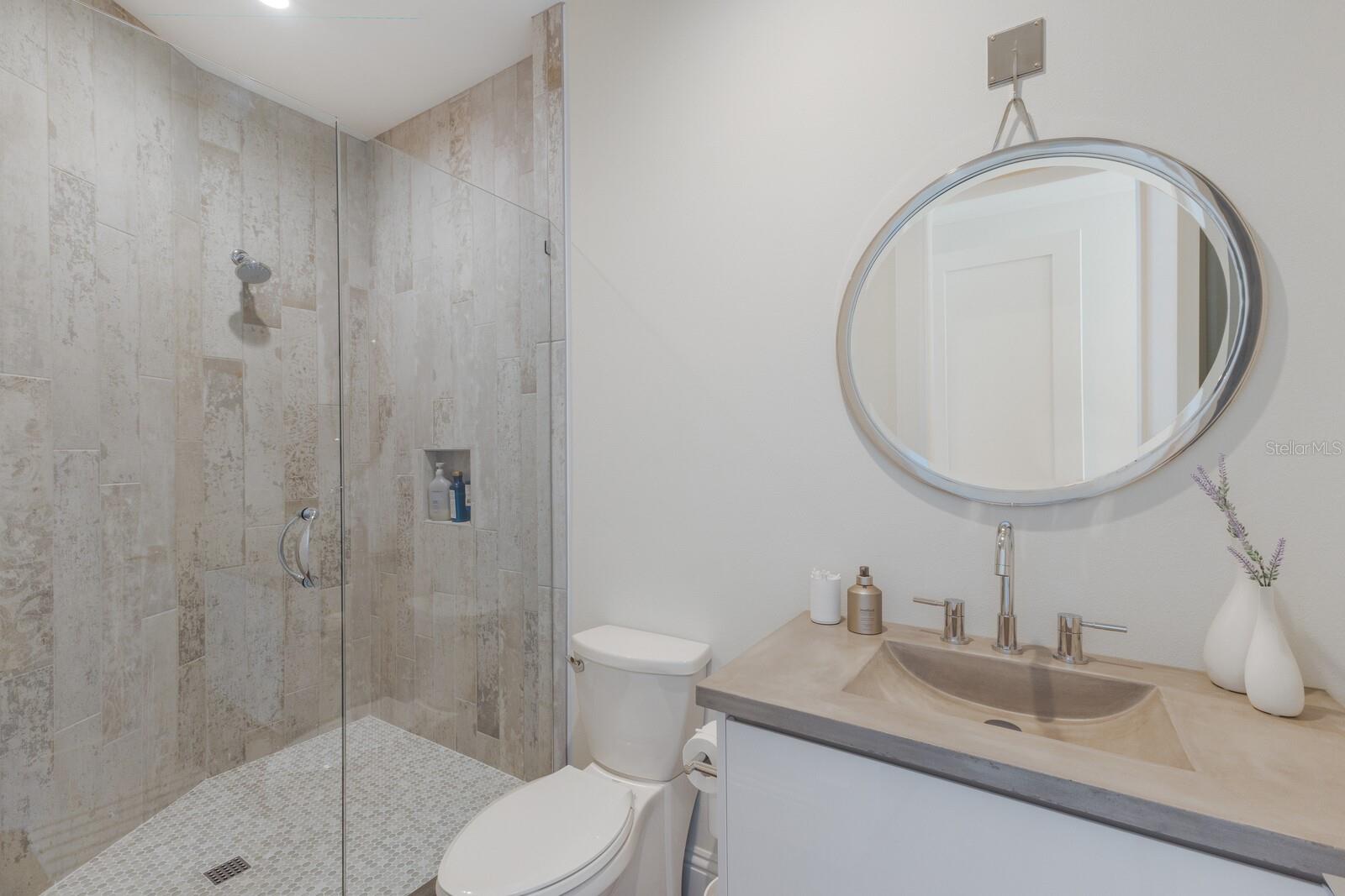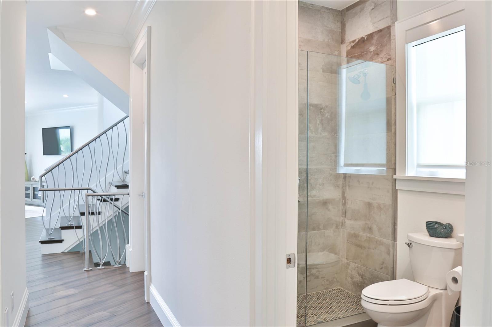 Exterior: Balcony, Lighting, Outdoor Shower, Private Mailbox, Rain Gutters, Sliding Doors