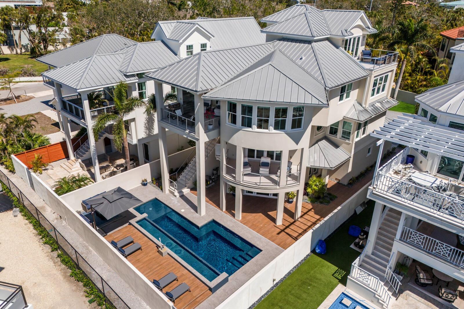 Motivated sellers! In fact, they are moving right next door! The sellers are nearing completion of their new home, which was deliberately designed and positioned to preserve the breathtaking Gulf views of this beachfront retreat. Feel the captivating energy of this home from the moment you enter the private gate to the meticulously landscaped grounds, including an award-winning heated saltwater pool with spa jets, a sun shelf, and custom-designed waterfall. Mornings begin with a soft breeze from the Gulf as you take in the magical sunrise from your 4th-floor deck. Retreat at the day's end to your 3rd-floor lanai to relieve all the day's stresses. You have a front row seat nightly for nature's most spectacular show. North Shell Road is the ultimate destination to witness Siesta Key's most enchanting sunsets, where the sky ignites in hues of gold and crimson over Lido Key. The Gulf's shimmering waters stretch endlessly before you, bathed in the warm glow of dusk, transforming your private retreat into a masterpiece of light and color. The panoramic views from this prestigious North Siesta Key home are simply magnificent. This home charms with its bold contemporary lines and warm, seamless connection to its pristine surroundings. The sophisticated design blends easily with the warmth and energy of the natural light that flows throughout. Quartz, concrete, soapstone, and live-edge designs blend with soft bamboo floors. This one-of-a-kind sanctuary boasts every upgrade you can imagine. 3916 North Shell Road is where ultimate luxury intersects with coastal splendor. ***Private showings for discerning buyers are available by appointment. Sellers respectfully request that potential buyers wear the shoe booties provided for showings.