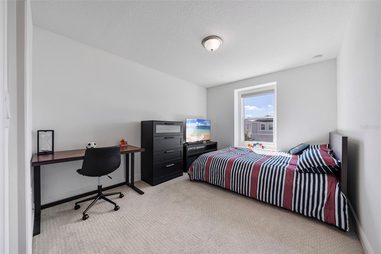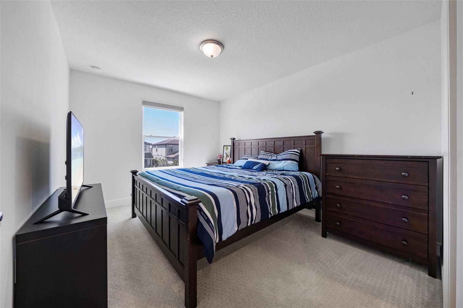 Step into modern comfort and style with this stunning two-story, 5-bedroom, 2.5-bathroom home offering over 2,500 sq. ft. of living space. Built in 2023, this home perfectly blends contemporary design with everyday functionality, all set in the sought-after North River Ranch community.From the moment you arrive, you'll be impressed by the home's beautiful curb appeal -- featuring a paved driveway, charming blue shutters, and lush landscaping accented by mature palm trees. Inside, the rich wood-like LVP flooring on the first level creates a warm and inviting atmosphere, while the second floor features plush carpeting for added comfort.The first floor boasts a large bedroom which can be used as a "flexible space" such as a home office, bedroom, home gym or playroom. This floor also includes an open living and dining area with direct access to the screened-in, paved patio -- perfect for relaxing or entertaining. The spacious kitchen is a chef's dream, featuring stone countertops, a modern backsplash, bar seating, and stainless steel appliances. You'll also find a convenient laundry room and two-car garage on this level.Upstairs, unwind in the large family room/loft, perfect for movie nights or a play area. The primary suite offers a walk-in closet and a luxurious en suite bathroom complete with dual sinks and a modern glass-enclosed shower. Three additional bedrooms, each with their own walk-in closet, and a full bathroom complete the upper floor.This community has everything you need! Enjoy resort-style living with low HOA fees and incredible community amenities, including 3 resort style pools, clubhouse, fitness center, dog park, walking trails, and playgrounds. With a vibrant social calendar and tons of community events you will experience community living at its best.Conveniently located just minutes from top-rated schools such as Barbara A. Harvey K-8, with their brand-new upper Campus right in the community and Parrish Community High School! Minutes from the recently opened HCA Florida North River Ranch Emergency and Market Walk with access to coffee shops, dining options, Publix Super Market, dentists and more! Easy access to I-75 and Highway 301. Only a short drive to the city of Tampa, St. Petersburg, Sarasota, and the beautiful Gulf Coast beaches.Welcome to your new home in North River Ranch!