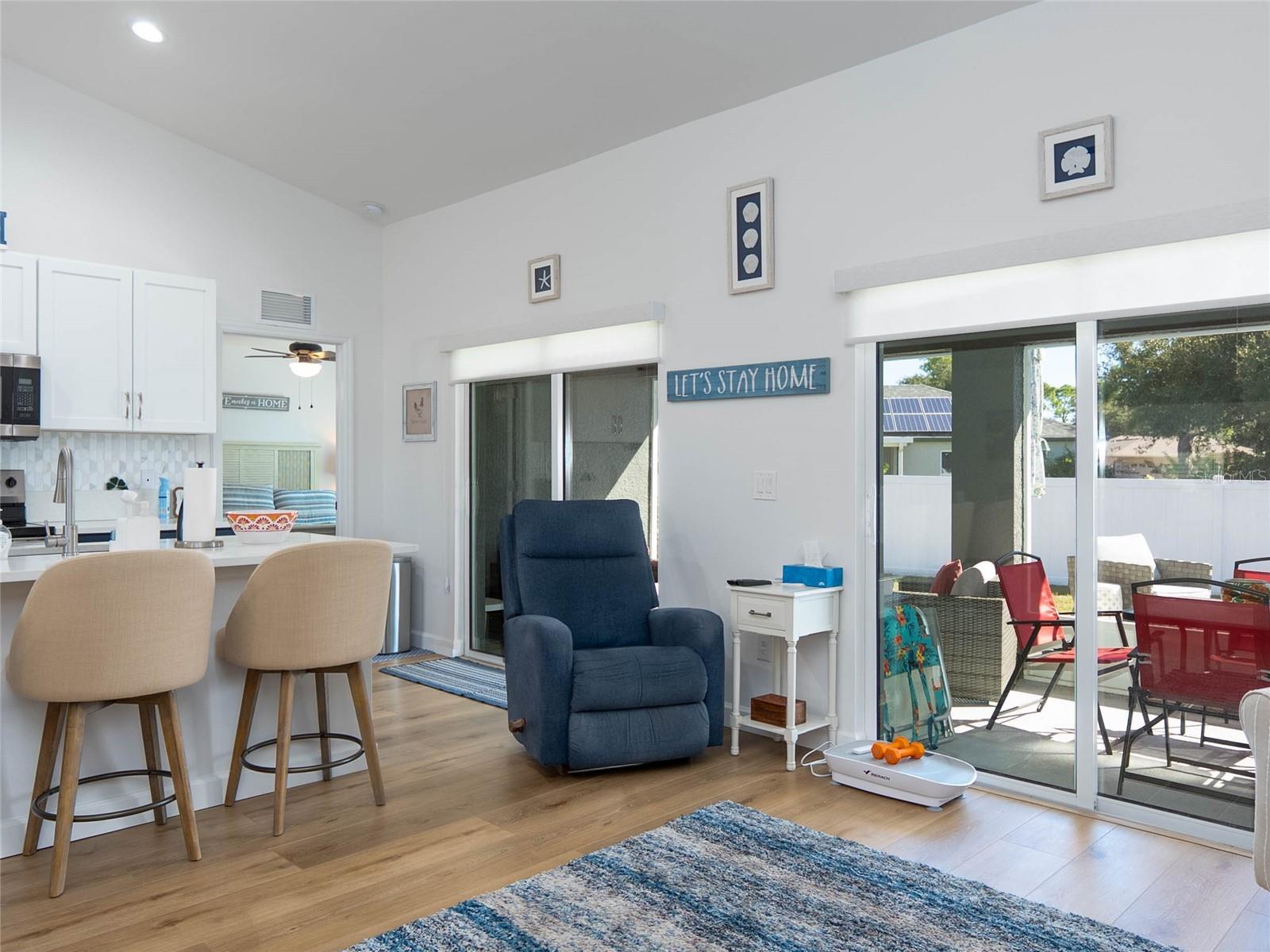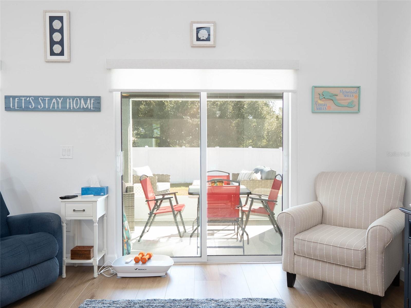Exterior: Lighting, Private Mailbox, Rain Gutters, Sliding Doors
