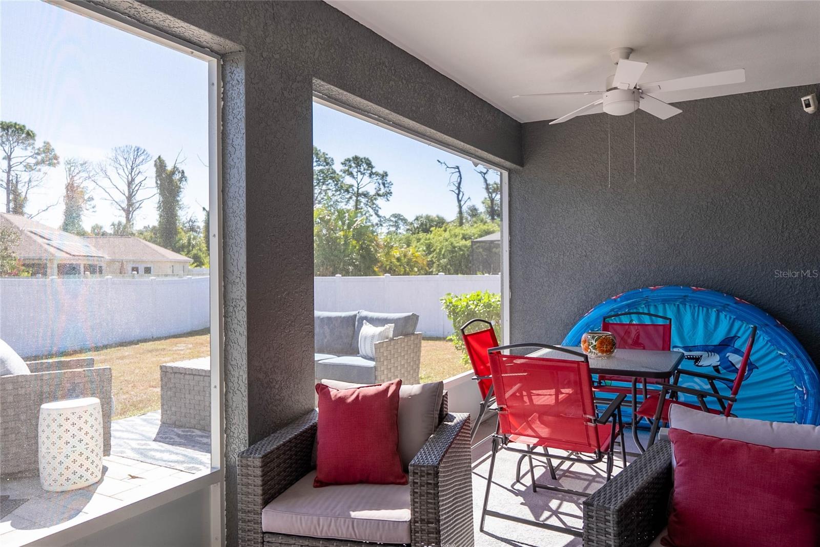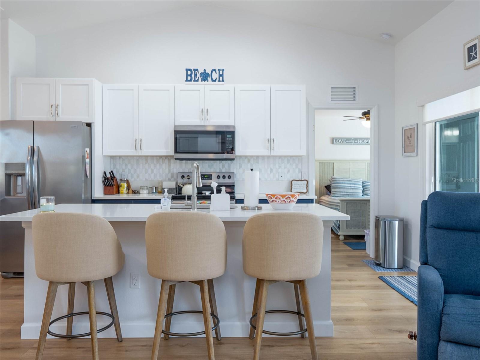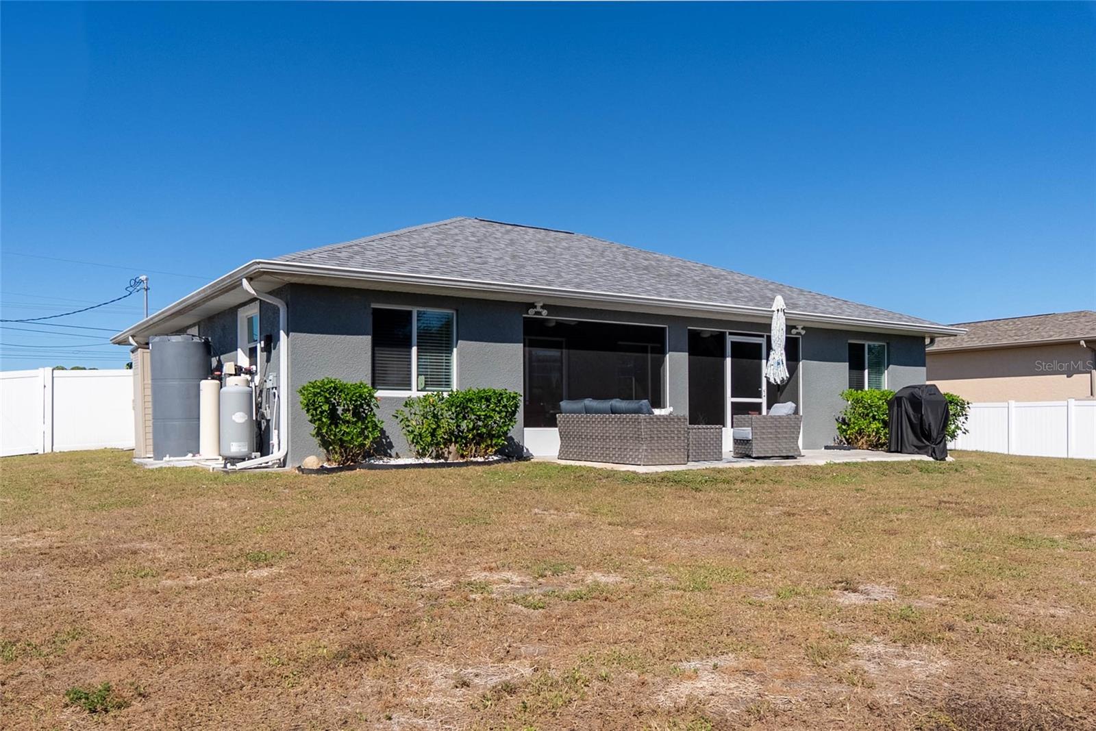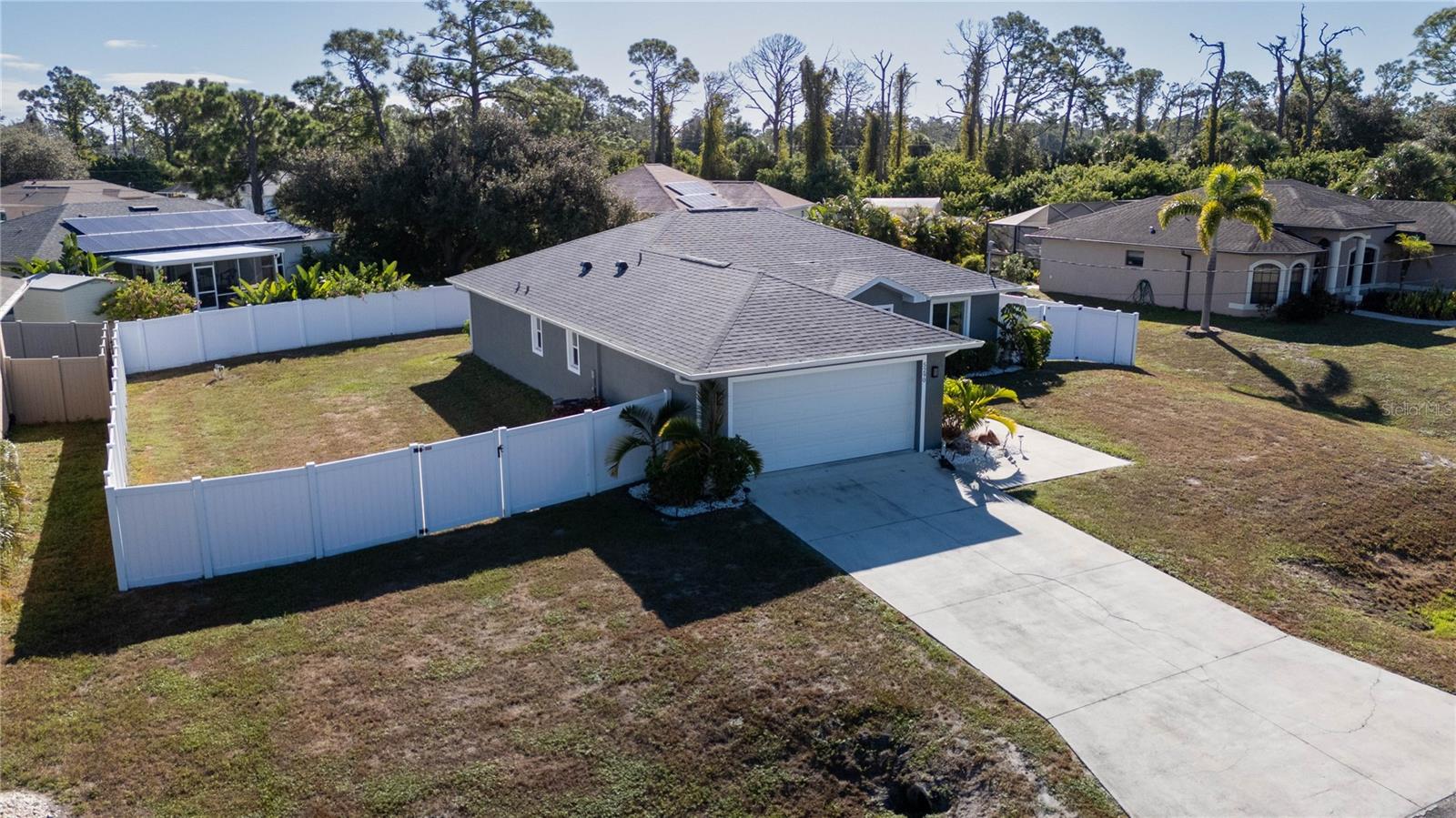 Welcome to this beautiful well-maintained 3-bedroom, 2-bath home located in a quiet neighborhood in growing North Port. This split-bedroom open floor plan offers vaulted ceilings, tile and laminate flooring, and a spacious living area perfect for entertaining. The kitchen features custom cabinetry, a breakfast bar, and views of the fenced in serene backyard. The primary suite includes a walk-in closet and en-suite bath. The home was updated in 2023 with a new roof, vinyl fence, paver patio, new flooring, whole house reverse osmosis water system, and many more updates. The home also has ring cameras at the front and rear of the home. Enjoy Florida living on a generous 0.23-acre lot with plenty of room for a pool or garden. No HOA or CDD. Conveniently located near I-75, shopping, dining, and Gulf Coast beaches. Move-in ready and full of potential--schedule your showing today!