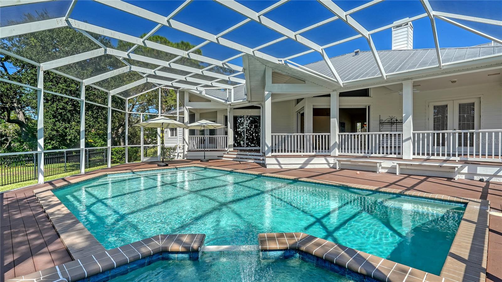 Coastal Elegance on Phillippi Creek!Custom-built by Coachman Homes, this exceptional waterfront residence blends timeless architecture, privacy, and an ideal Sarasota location. Set within an intimate gated enclave of just nine homes, the property spans nearly three-quarters of an acre and offers over 190 feet of private frontage on the scenic Phillippi Creek--an idyllic backdrop for daily living and entertaining. Notably, this house structure has had no history of water intrusion from any storm or hurricane.Inside, approximately 3,500 square feet of living space unfolds in an open, light-filled layout with four bedrooms, a family room, and a dedicated office. A columned front porch and double-door entry lead into a grand living room featuring vaulted ceilings, a cultured stone fireplace, and a wall of glass doors that open to the screened lanai and pool. The adjacent dining room creates an elegant setting for gatherings, while the open-concept kitchen connects seamlessly to the family and casual dining areas--each overlooking the outdoor living space.The chef's kitchen features custom cabinetry with under-cabinet lighting, granite countertops, tile backsplash, breakfast bar, and stainless-steel appliances. A split-bedroom plan ensures privacy. The primary suite is a serene retreat with French doors to the deck, a large walk-in closet, and a spa-style bathroom complete with dual vanities, walk-in shower, soaking tub, and private water closet. A flexible office adjoins the suite, ideal for working from home or quiet reading. On the opposite wing, three guest bedrooms share two full baths, offering comfort for family and visitors alike.Additional features include Lauzon hardwood floors throughout, recessed lighting, plantation blinds, hurricane shutters, two-zone A/C, re-screened pool cage (2024), a spacious laundry with newer washer and dryer, and a three-car garage with abundant storage.Outdoor living takes full advantage of Sarasota's year-round sunshine. A large, screened lanai with swimming pool, spa, and waterfall fountain invites relaxation, while the full-length covered deck--with outdoor kitchen--encourages al fresco dining. Lush tropical landscaping guarantees privacy, and the large fenced portion of the backyard offers space for pets and play. A brick walkway leads to the private dock, equipped with water and electric. With only two bridges to Roberts Bay, boaters enjoy quick access to the Intracoastal Waterway and Gulf of Mexico.This residence combines the serenity of a secluded estate with unmatched convenience--just minutes to Siesta Key Beach, Downtown Sarasota, and The Bay Park. Fine dining, boutique shopping, cultural venues, and waterfront recreation are all within easy reach. In this rare nine-home community, you'll experience the perfect balance of coastal tranquility and city sophistication--a true Sarasota lifestyle.