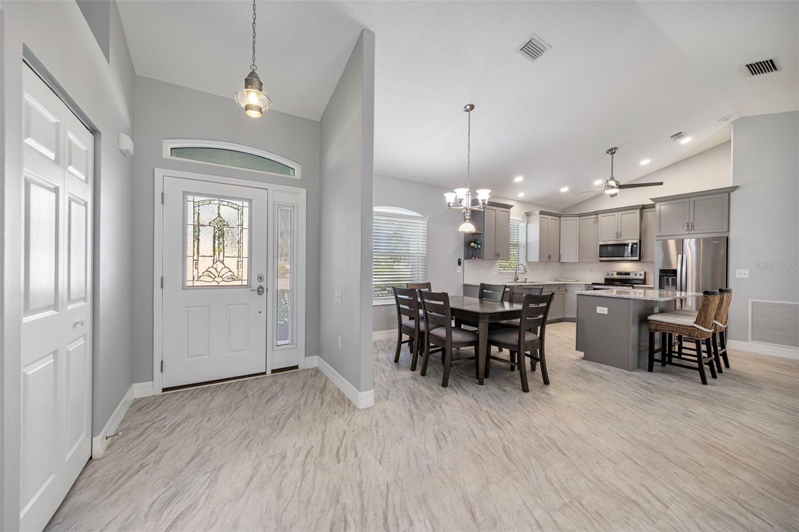Immaculate Coastal Retreat in Whitfield Gardens - Sarasota/Manatee CountyWelcome to this stunning 3-bedroom, 2-bathroom pool home located in the highly desirable and charming neighborhood of Whitfield Gardens, nestled between Sarasota and Manatee County. Just minutes from the Sarasota-Bradenton International Airport and the world-renowned beaches of Siesta Key, Lido Key, Longboat Key, and Anna Maria Island, this home offers the perfect blend of vacation-style living and everyday comfort. Meticulously maintained and fully renovated from top to bottom, this residence truly shows like a model home. Step inside to discover a bright and airy open-concept layout with soaring cathedral ceilings and luxury waterproof vinyl flooring throughout. The brand-new chef's kitchen is a showstopper, featuring custom light gray soft-close cabinetry with pull-out shelving, gleaming quartz countertops, and a huge center island perfect for meal prep and entertaining. All-new stainless steel appliances complete the space. Both bathrooms have been professionally remodeled, featuring custom tile showers that seamlessly reflect the home's overall design aesthetic. Thoughtfully selected materials and finishes create a cohesive, modern look, while the high-quality craftsmanship ensures lasting beauty and functionality. Enjoy peace of mind with all new hurricane-impact windows and doors, a new roof, and fresh interior and exterior paint. The thoughtfully designed floor plan opens seamlessly to the backyard oasis, where a newer self-cleaning pool with a screened enclosure awaits. The covered lanai offers ample room for BBQs and gatherings, making this home an entertainer's dream. The fenced yard (PVC and new wood fencing) includes a dedicated dog run and large gated access, ideal for pets and privacy. The picturesque pond in the front adds a tranquil backdrop and even supplies irrigation for the beautifully manicured landscape. Whether you're looking for a permanent residence, vacation home, or investment opportunity, this home is move-in ready and fits any lifestyle.