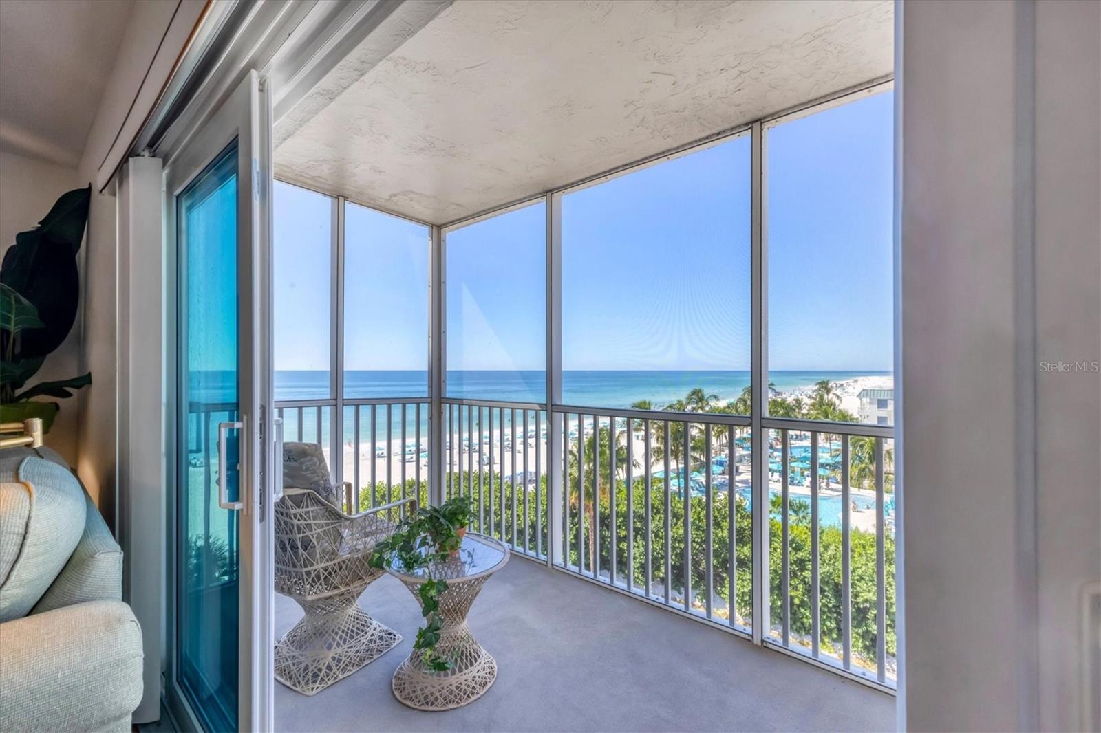 Experience the best of beachfront living at Lido Ambassador with this rarely available 6th-floor residence, lovingly maintained by long-time owners and offering captivating Gulf views, impact-rated windows and sliders, and endless potential to personalize. Perfectly situated on the sandy shores of Lido Beach and just moments from world-famous St. Armands Circle, this condo offers the ideal balance of coastal tranquility and vibrant Sarasota living. This two-bedroom, two-bath unit features a desirable split floor plan, open living/dining area, and a private balcony where you can soak in breathtaking sunset views, sea breezes, and the ever-changing colors of the coastline. Meticulously cared for over the years, this home is move-in ready or the perfect canvas to update to your personal style. The spacious primary suite offers ample closet space and an en-suite bath, while the guest bedroom and bath provide a private retreat for visitors. Natural light, a thoughtful layout, and the overall condition reflect the pride of ownership throughout. Lido Ambassador is a well-managed community of just 74 residences, known for its pristine grounds and attentive upkeep. The Gulf-front heated pool and sun deck are currently undergoing a full renovation, soon to reopen better than ever, with a refreshed, resort-style atmosphere for residents to enjoy. Additional amenities include a fitness center, catering kitchen, private storage, and assigned covered parking. Steps from the Lido Beach Resort Tiki Bar and short distance of St. Armands Circle, Longboat Key, and the arts and culture of downtown Sarasota, this location is unmatched. Whether you're seeking a coastal getaway, investment opportunity, or full-time residence, this 6th-floor unit delivers exceptional location, views, and value. Discover why Lido Ambassador is one of the most coveted addresses on Lido Key.