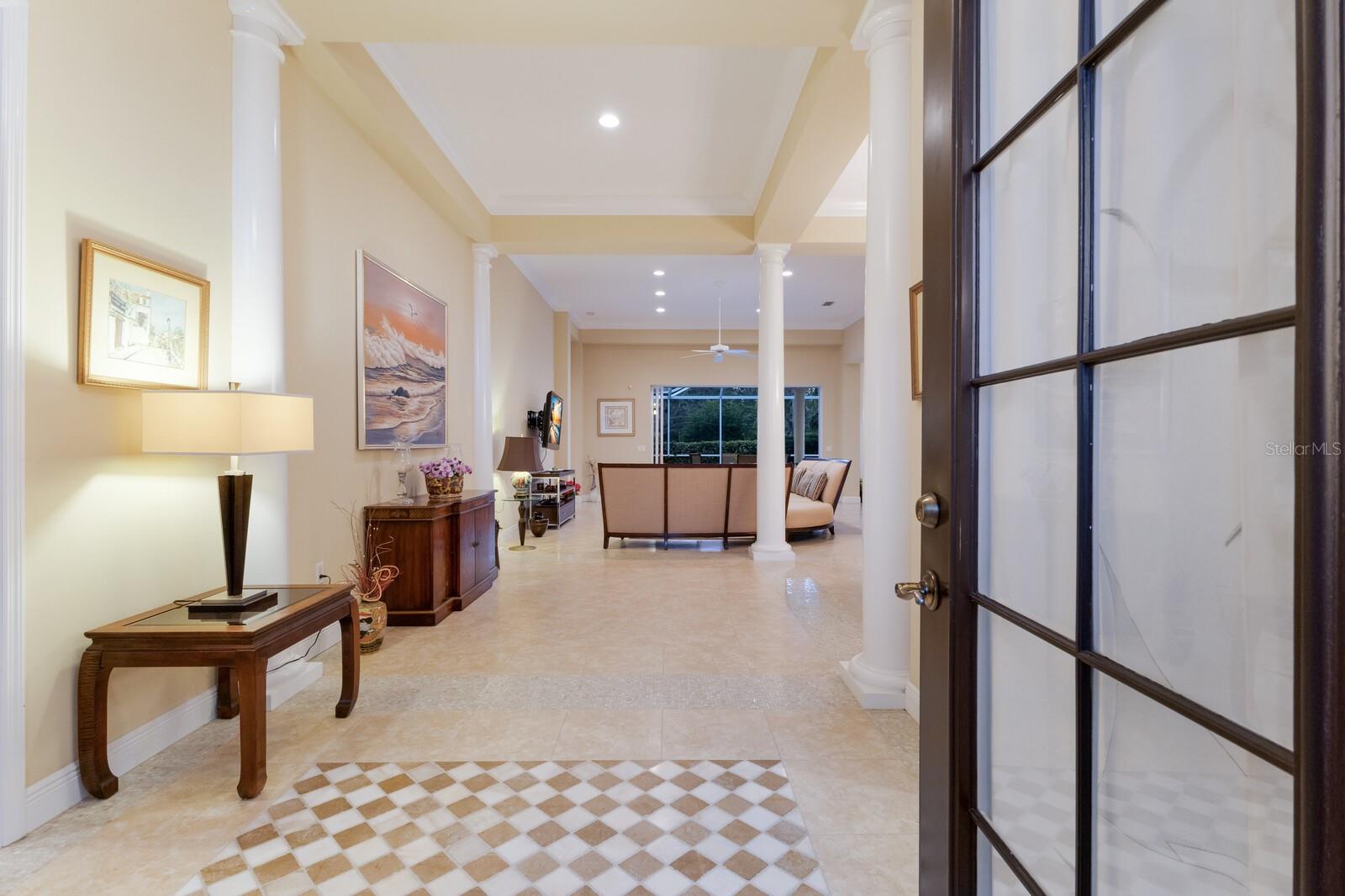 Welcome to this beautifully appointed former model home featuring Neal Communities' most popular and sought-after floor plan, the Chesapeake. Located in the highly desirable Wisteria Park community, this home showcases extensive upgrades and exceptional architectural detail throughout. Offering three bedrooms plus a dedicated office and an extended two-and-a-half car garage, this residence combines elegant design with everyday comfort. Upon entering, you are welcomed by soaring 12-foot ceilings, 7 1/4 inch crown molding, larger baseboards, and refined tile inlay work that elevate the style of every room. The formal dining area is enhanced with upgraded wall-to-wall mirrors and decorative trim, creating a dramatic and sophisticated entertaining space. Plantation shutters add both charm and functionality throughout the home. The kitchen is truly a showpiece, featuring premium Cambria countertops, top-of-the-line solid maple cabinetry, stainless steel appliances, a convenient breakfast bar, and an inviting eat-in area overlooking the pool and lanai. A beautifully designed butler's pantry with a wine cooler provides additional storage and serving space, ideal for entertaining. The primary suite is spacious and serene, offering privacy from the guest wing, while the dedicated office provides flexibility for remote work or creative use.Step outside to your private screened lanai with a sparkling saltwater heated pool, perfect for year-round relaxation. The thoughtfully placed half bath located just off the lanai makes outdoor entertaining effortless and serves as the ideal pool bath. The tile roof adds lasting durability and enhances the property's curb appeal.Wisteria Park is known for its peaceful atmosphere and an unbeatable west Bradenton location just moments from the natural beauty of Robinson Preserve, the serene waters of Palma Sola Bay, and the sugar-sand beaches of Anna Maria Island. Enjoy living close to nature trails, kayaking launches, and stunning Gulf of Mexico sunsets while still being just a short drive from shopping, dining, and cultural amenities.This former model home represents a rare opportunity to own a highly upgraded Chesapeake floor plan in one of Northwest Bradenton's most sought-after communities, offering the ultimate blend of comfort, craftsmanship, and coastal living.