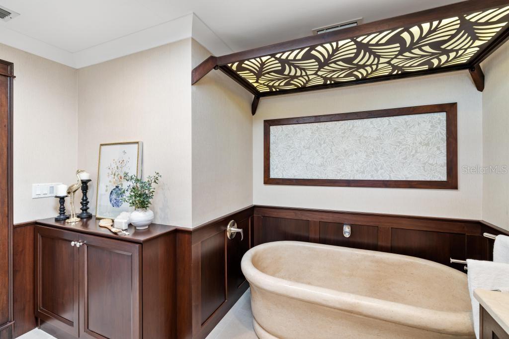 This special, one of a kind home has quick access to Dona Bay and then the beautiful ocean waters of the Gulf. This home is exceptionally elevated at more than 11 feet, keeping it high and dry and solid through storm season with zero flooding over the years. The inviting layout features 3 bedrooms, 3 bathrooms and a heated saltwater pool on a spacious, nearly half-acre lot shaded by stunning mature oaks and fruit trees. Interior highlights include fresh, light and bright paint, rich wood-look plank floors, vaulted ceilings, and a cozy woodburning indoor fireplace. The fully remodeled gourmet kitchen includes gorgeous Quartzite countertops, stainless appliances, solid-wood cabinets, built-in espresso maker, and a charming custom wine room for the wine connoisseur. Views of the relaxing pool deck with an outdoor kitchen from nearly every angle.The primary suite features pool access, custom walk-in closets, and a spa-like ensuite bath with a beautiful Spanish marble soaker tub, dual sinks and tiled shower. The split bedroom floorplan affords privacy and convenience for the second and third bedrooms, and the third bedroom features a private ensuite bathroom and pool access. The full guest bathroom also features pool access.The outdoor oasis includes a caged lanai with a saltwater, heated pool, outdoor kitchen, and a unique custom-built fire pit area. Follow the path to the dock and seawall, and imagine your own boat waiting to take you out for a fun day on the Gulf. Oversized 2-car garage has epoxy floors and upgraded modern storage cabinets with a tool bench. Truly a unique and charming waterfront escape located conveniently near historic downtown Venice, Venice Beach, Nokomis Beach, and Casey Key. Travel a short distance north for all of the amenities of Sarasota, including an exciting downtown district, Siesta Key Beach, performing arts venues, and luxury dining and shopping.