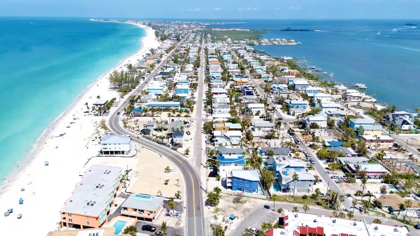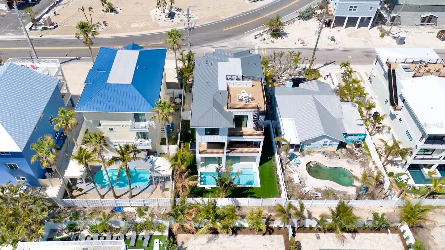 Breathtaking Gulf panoramas and turquoise horizons, this residence rises above the shoreline with postcard-perfect views from every level. Experience coastal luxury living just steps from the sand in this brand-new 7 bedroom, 6.5 bath Gulf-view retreat located in the heart of Bradenton Beach. Thoughtfully designed with vacation living in mind, this home offers resort-style amenities, high-end finishes, and exceptional rental potential -- making it ideal as both a personal getaway and a proven income-producing investment.From the moment you arrive, the clean architectural lines, palm-framed entry, and three-car garage set the tone for the sophistication inside. The open-concept main living level features soaring wood-beam ceilings, custom millwork, designer lighting, and an abundance of natural light flowing through oversized sliders that open to multiple balconies with sweeping Gulf views.The chef's kitchen is beautifully appointed with quartz countertops, premium appliances, an oversized island with bar seating, and open shelving for a truly coastal-luxe look. The spacious dining and living areas transition seamlessly for entertaining large groups or extended family.Each bedroom has been designed for privacy and comfort, many with ensuite baths and private balconies. A separate upper-level lounge and game room with Gulf views provides even more gathering space.Step outside and enjoy your own tropical oasis with a private heated pool and spa, shaded lounge seating, grilling area, and fully fenced yard surrounded by lush landscaping -- perfect for enjoying the island lifestyle day and night.The rooftop-level balcony offers some of the best vantage points on the island for sunsets over the Gulf, the ideal backdrop for evening cocktails or quiet relaxation.Located just steps from public beach access, restaurants, shopping, and the charming Bradenton Beach lifestyle, this home provides both unmatched convenience and strong rental income year-round.